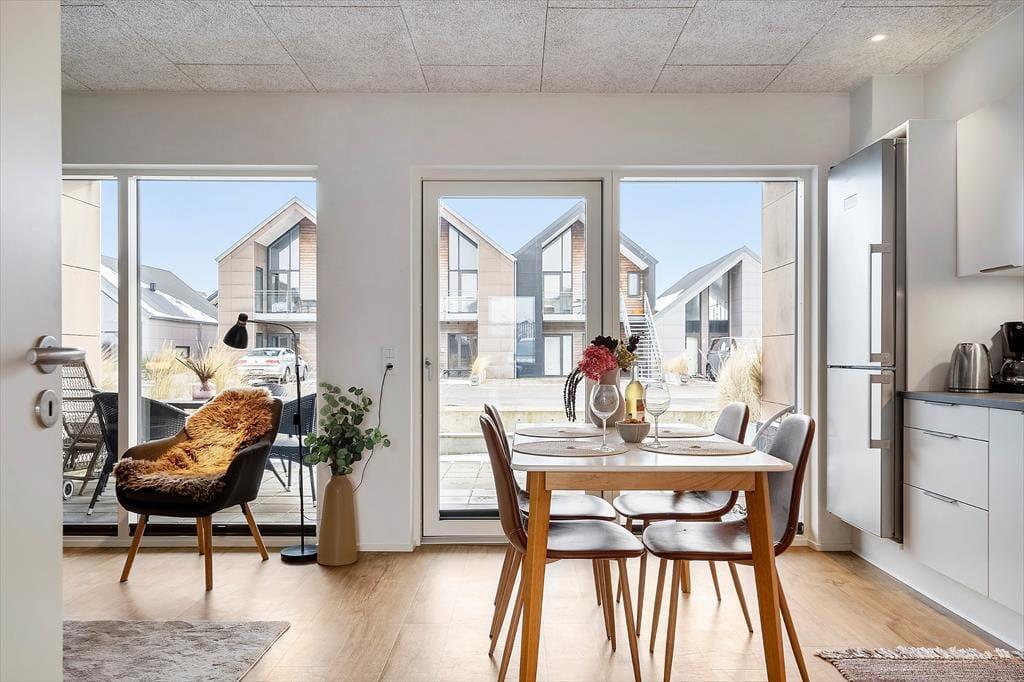 Skøn ferielejlighed velegnet til to voksne og 2 børn, der gerne vil være tæt på Hvide Sandes restauranter, butikker og hyggelige byliv – og samtidig bo i fredelige omgivelser og have nærhed til vandet
