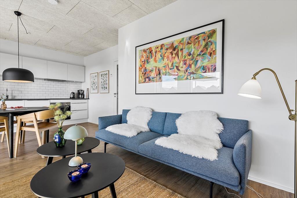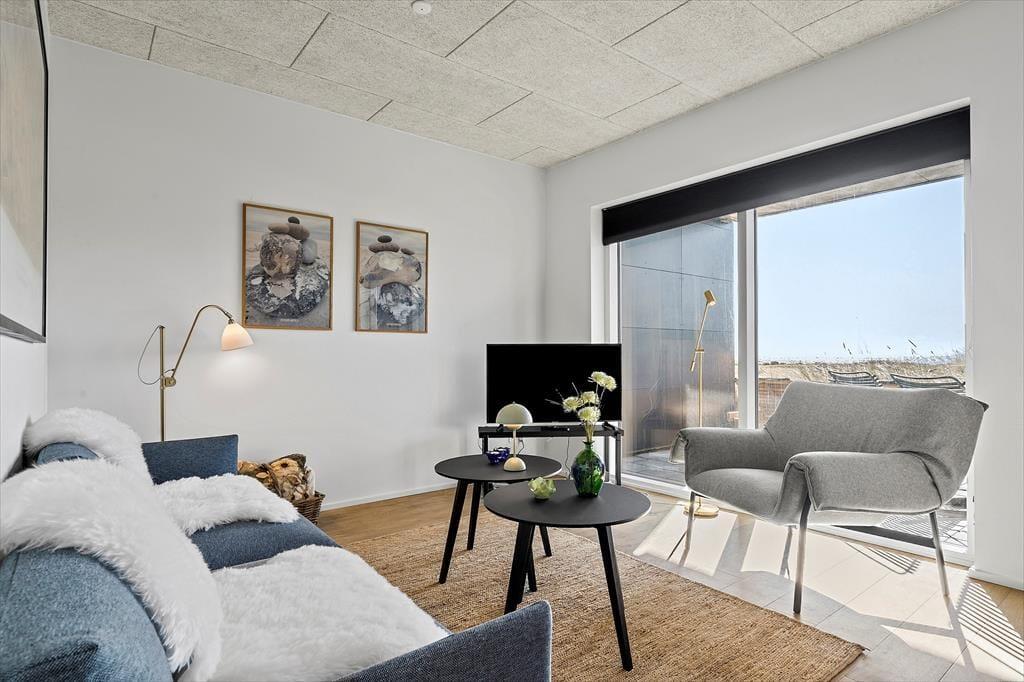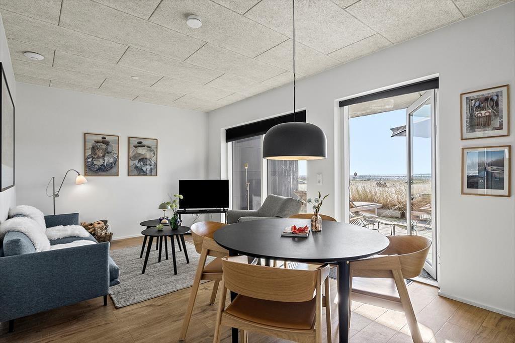 Du får en fantastisk ramme om ferielivet i denne lækre kvalitetslejlighed, der ligger som del af nybyggeriet Langsand Langs Vand. Indretningen er lys og moderne, og fra både stuen og terrassen kan du se lige ud på Ringkøbing Fjord, mens Hvide Sandes bymidte og Tyskerhavnen venter lige i nærheden.