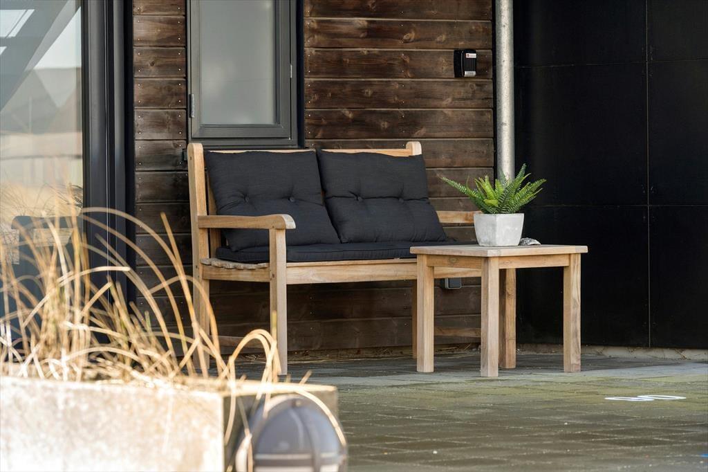Fra stuen skal du blot åbne glasdøren op for at træde lige ud på den sydvendte og delvist overdækkede terrasse. Kigger solen frem på himlen, lige når kaffen er færdigbrygget, kan du med andre ord nemt tage en kop med ud i det fri – og så er det egentlig fristende at blive hængende herude en stor del af dagen. En lille trappe fører fra terrassen og ned mod kanalen, så hvis du foretrækker at ankomme til terrassen fra vandvejen, har du sågar mulighed for at lægge til i kajak eller på et SUP-board.