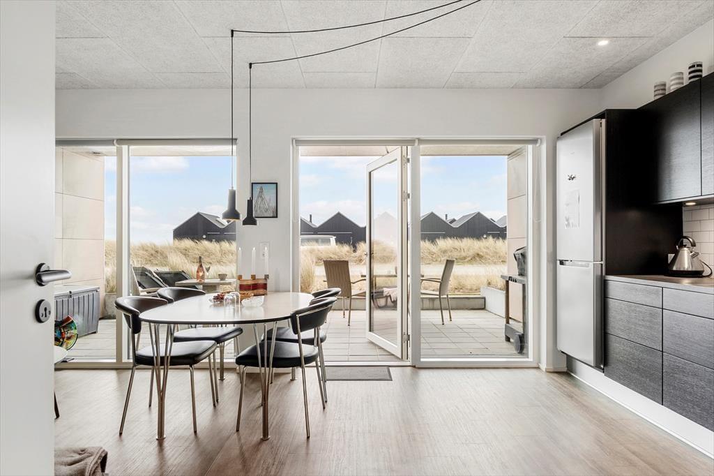 Fra Langsand 86 tager det kun et øjeblik at gå hen til vandkanten, når du vil helt tæt på Ringkøbing Fjord. Du har også meget kort afstand til Tyskerhavnen, som er et af Hvide Sandes mest stemningsfulde fiskermiljøer, og hvis du selv vil ud med snøre, kan du pakke dit fiskergrej og prøve lykken henne ved byens store sluse. Vesterhavet og kystens smukke strande kan også nås til fods, hvis ikke du i stedet gør holdt på et af spisestederne i den hyggelige bymidte. Får du lyst til at se mere af Holmsland Klit, kan du tage vandreskoene på, hoppe op på cyklen eller finde bilnøglerne frem, inden du begiver du ud i det spektakulære, lyngklædte landskab.