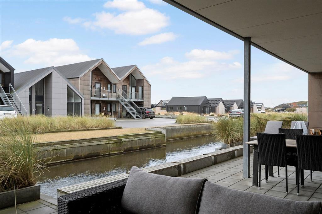 En af lejlighedens største fordele er den direkte adgang til kanalerne udenfor fra den 32 m2 store sydvendte terrasse. Her kan man padle eller ro i kajak/kano direkte om i lystbådehavnen og ud i Ringkøbing Fjord. Du kan også starte morgenen med en rolig gåtur langs vandet, nyde en kop kaffe på terrassen. Om sommeren kan du tage plads udendørs i det dejlige loungesæt og lade solen varme dig, mens du planlægger dagens eventyr. Lejligheden ligger også tæt på byens centrum, hvor du finder caféer, restauranter og lokale butikker – alt sammen inden for kort gåafstand. Og hvis du er til friluftsliv, har du perfekte muligheder for at fiske, cykle eller tage på vandreture langs de naturskønne stier i området.