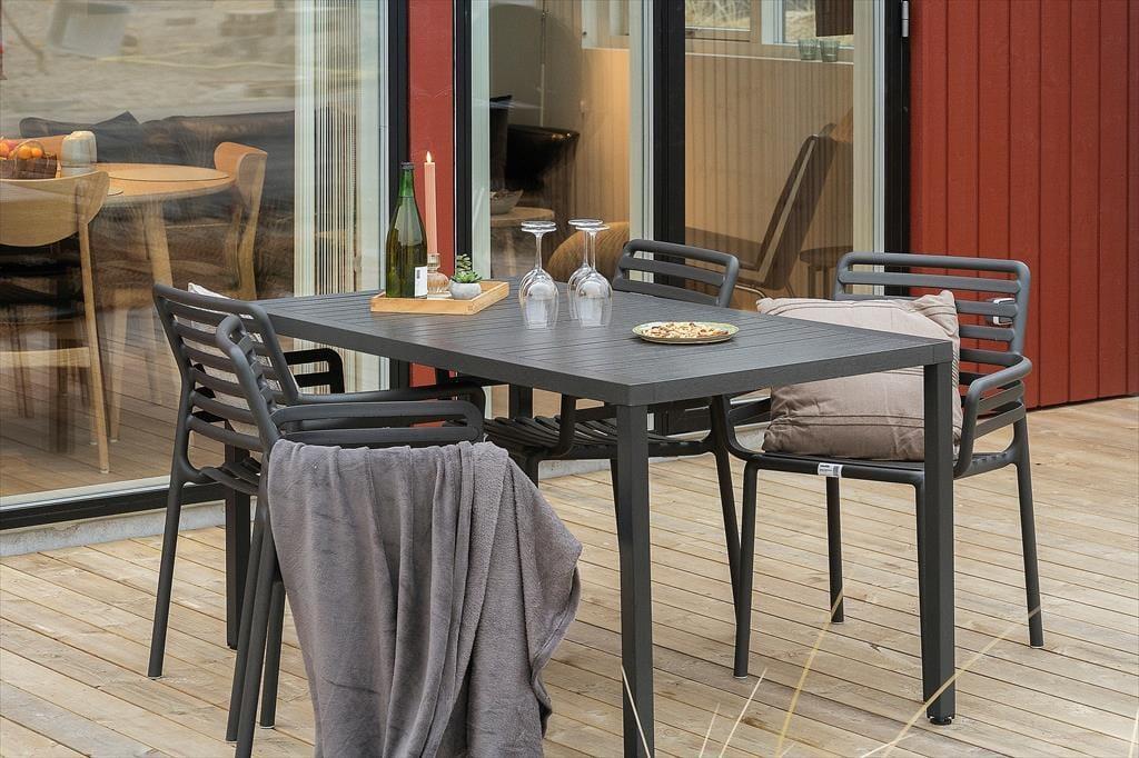 Udendørs er der masser af plads til at nyde de lange sommerdage. Fra stuen har du direkte adgang til en dejlig, solrig terrasse, hvor du kan slå dig ned med et koldt glas vin ved havebordet, mens der gøres klar til en velsmagende middag. På terrassen kan du mærke den friske luft fra fjorden og fornemme, hvordan feriestemningen stille sænker sig over området. Huset har desuden en praktisk parkeringsplads, og med den centrale beliggenhed er det muligt at lade bilen stå under store dele af opholdet.