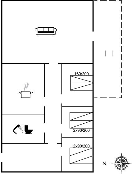Der er i alt 3 soveværelser. Sovepladserne fordeler sig på: 2 sovepladser i dobbeltseng. 4 sovepladser i enkeltsenge.