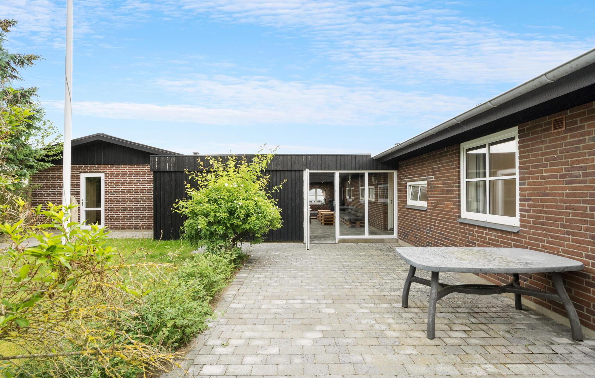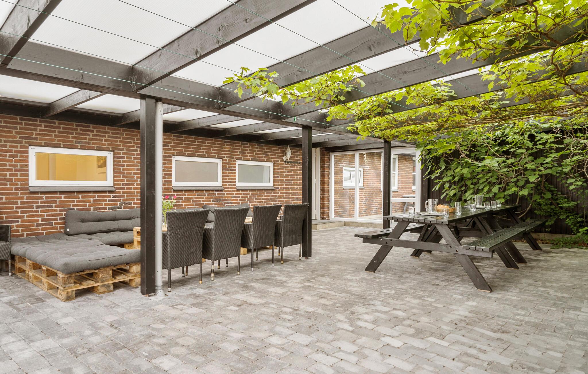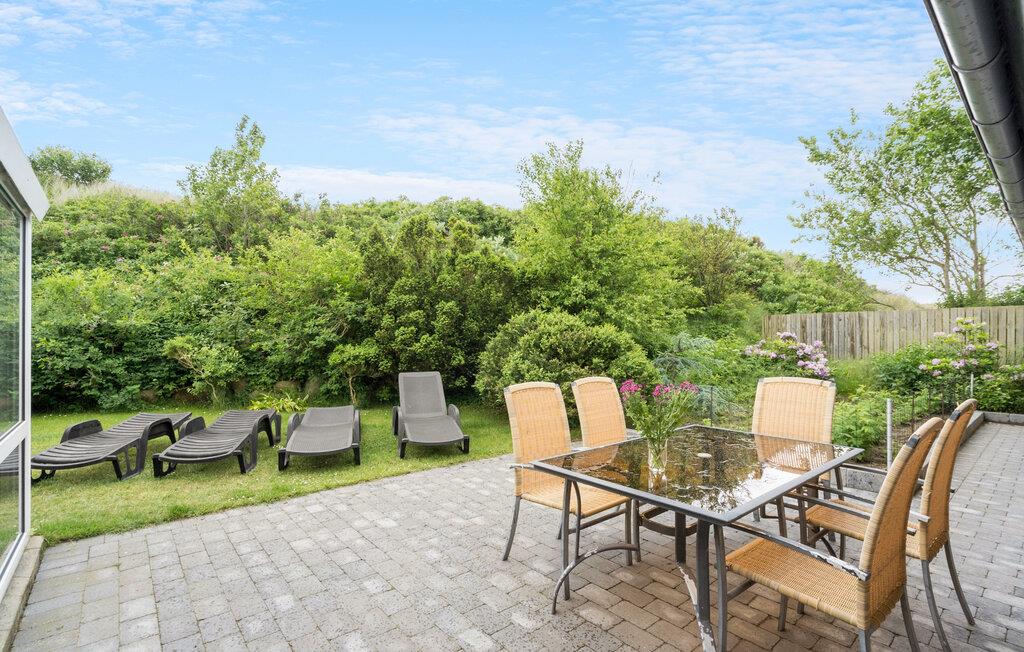 Flot og rummeligt feriehus i Hvide Sande med overdækket terrasse og indhegnet have, perfekt til store familier.