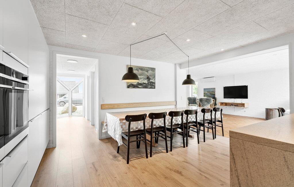 Tag den udvidede familie under armen og rejs til Hvide Sande, hvor I centralt i byen finder dette vidunderlige hus til årets store familiesammenkomst. Her får I, ude som inde, masser af plads at boltre jer på og gode faciliteter, der gør jeres ophold helt og aldeles ubekymret fra det øjeblik, I stiller kufferterne. Indretningen prydes af åbne planløsninger, materialer af høj kvalitet og et stort og fuldt udstyret køkken, hvor familiens kokke kan tage sig god tid og kræse om livretterne. Dæk op ved spisebordet med plads til alle eller træk ud på den hyggelige, overdækkede terrasse, hvor I kan sidde ude næsten hele året til langt ud på aftenen.