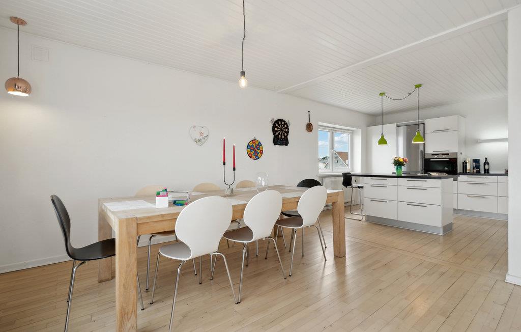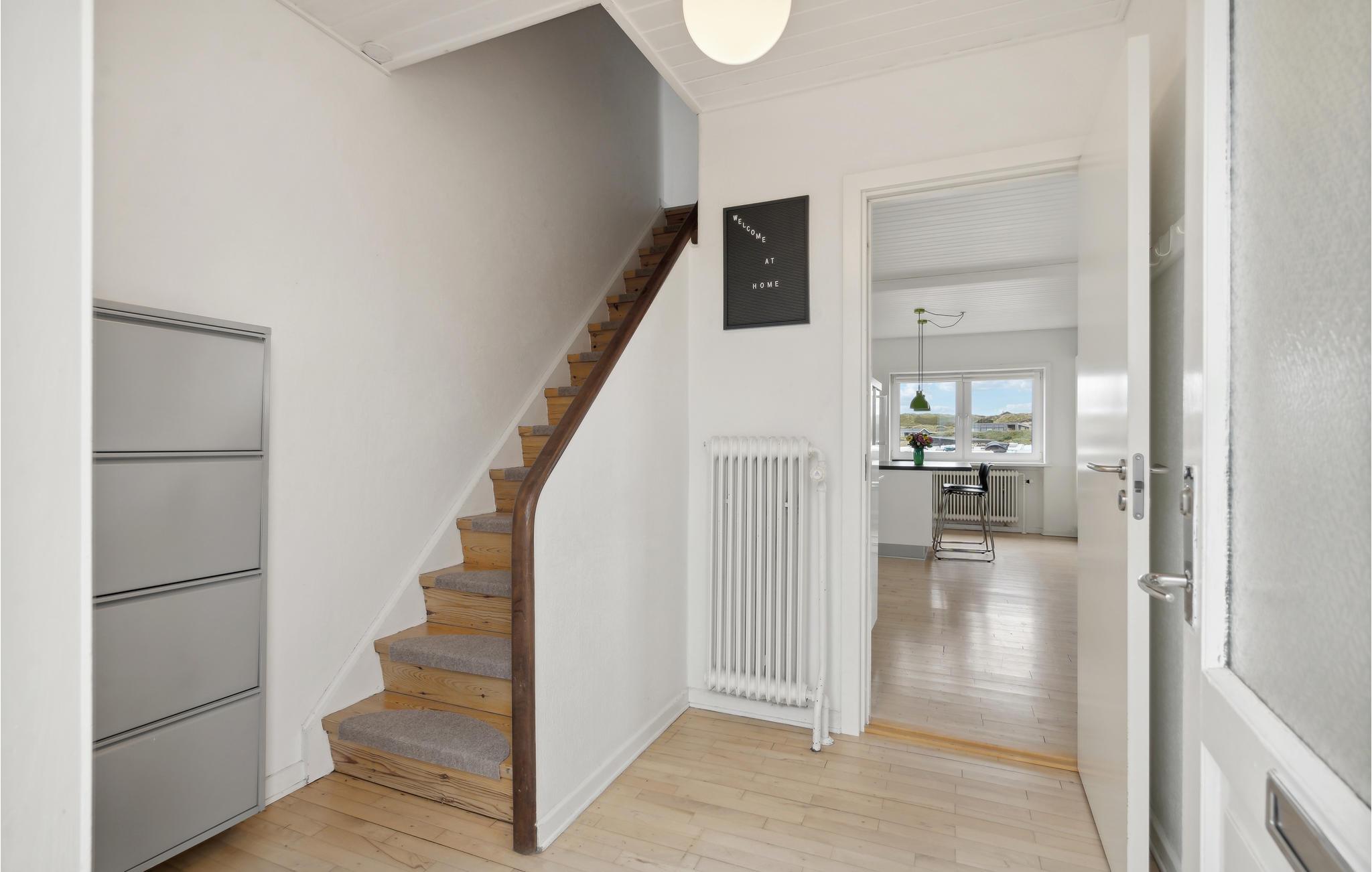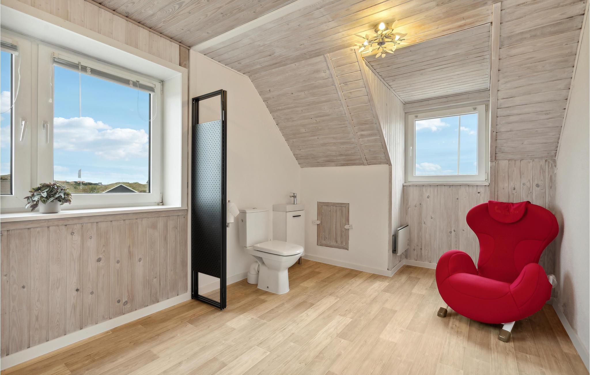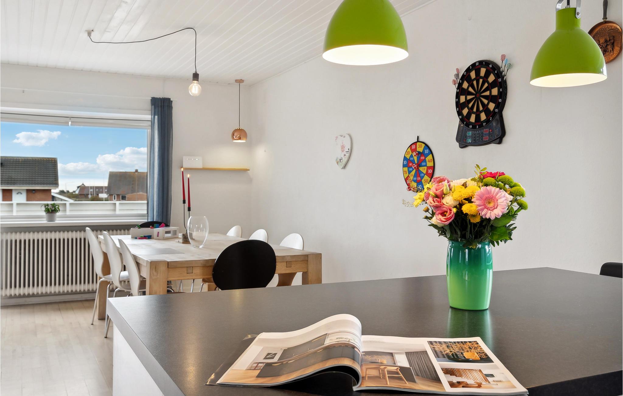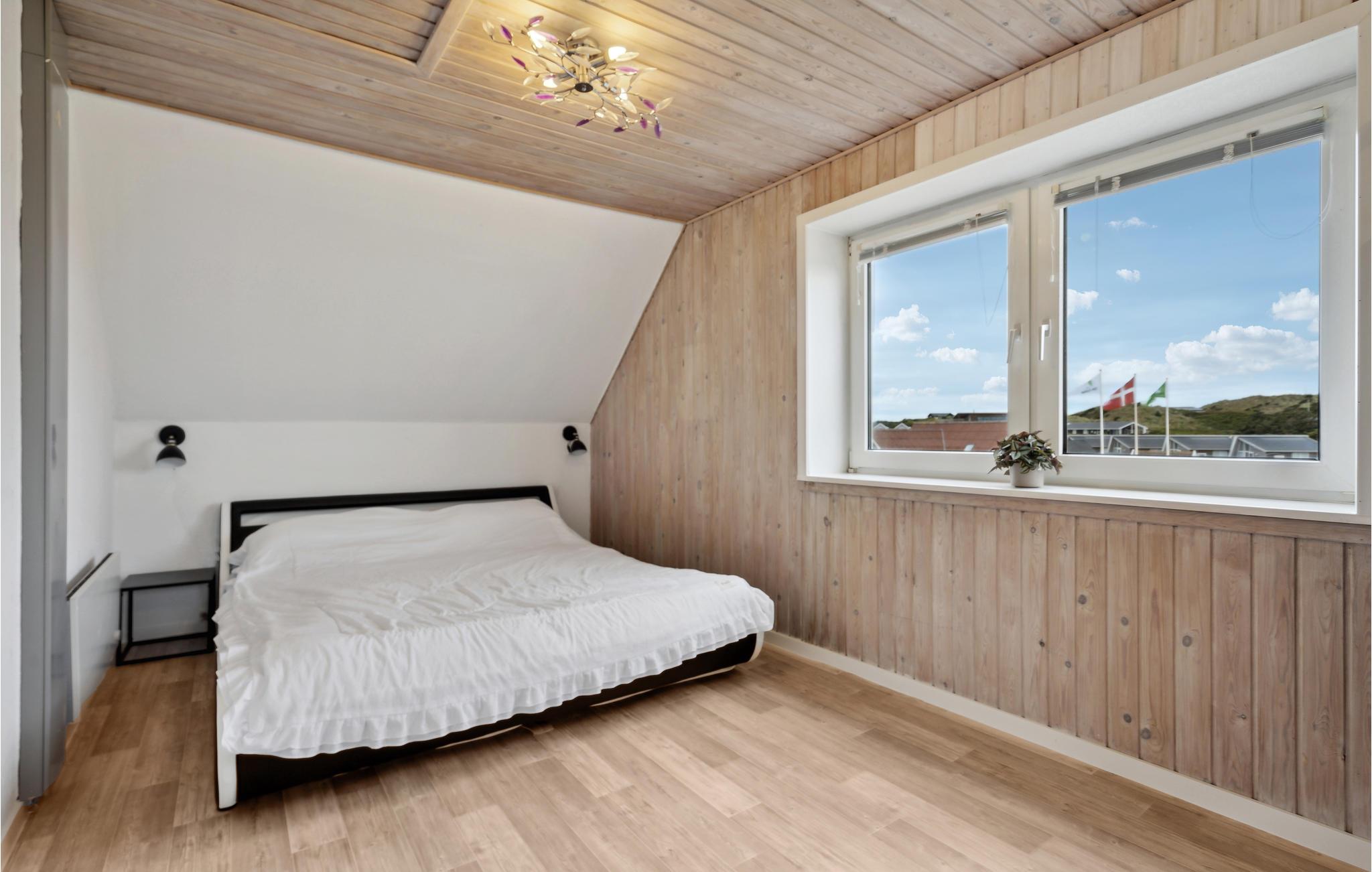 Nyd en aktiv familieferie i dette hus lige ud til fjorden, ikke langt fra Hvide Sande centrum og Vesterhavet med de høje klitter, de friske bølger og den brede hvide sandstrand. Indenfor afspejler det åbne, indbydende opholdsrum feriens formål: Nærvær og samvær. Det dejlige lysindfald skaber en beroligende atmosfære, og her vil hele familien føle sig godt tilpas. Efter en aktiv dag kan I tilbringe en hyggelig aften med spil, gæt og grimasser eller måske noget helt tredje. Slap af i sofaerne og lad jer fortrylle af den flotte udsigt over fjorden eller sæt jer på terrassen med en kop kaffe og en god bog. Lige ved huset finder I en legeplads, hvor de mindste familiemedlemmer kan boltre sig.