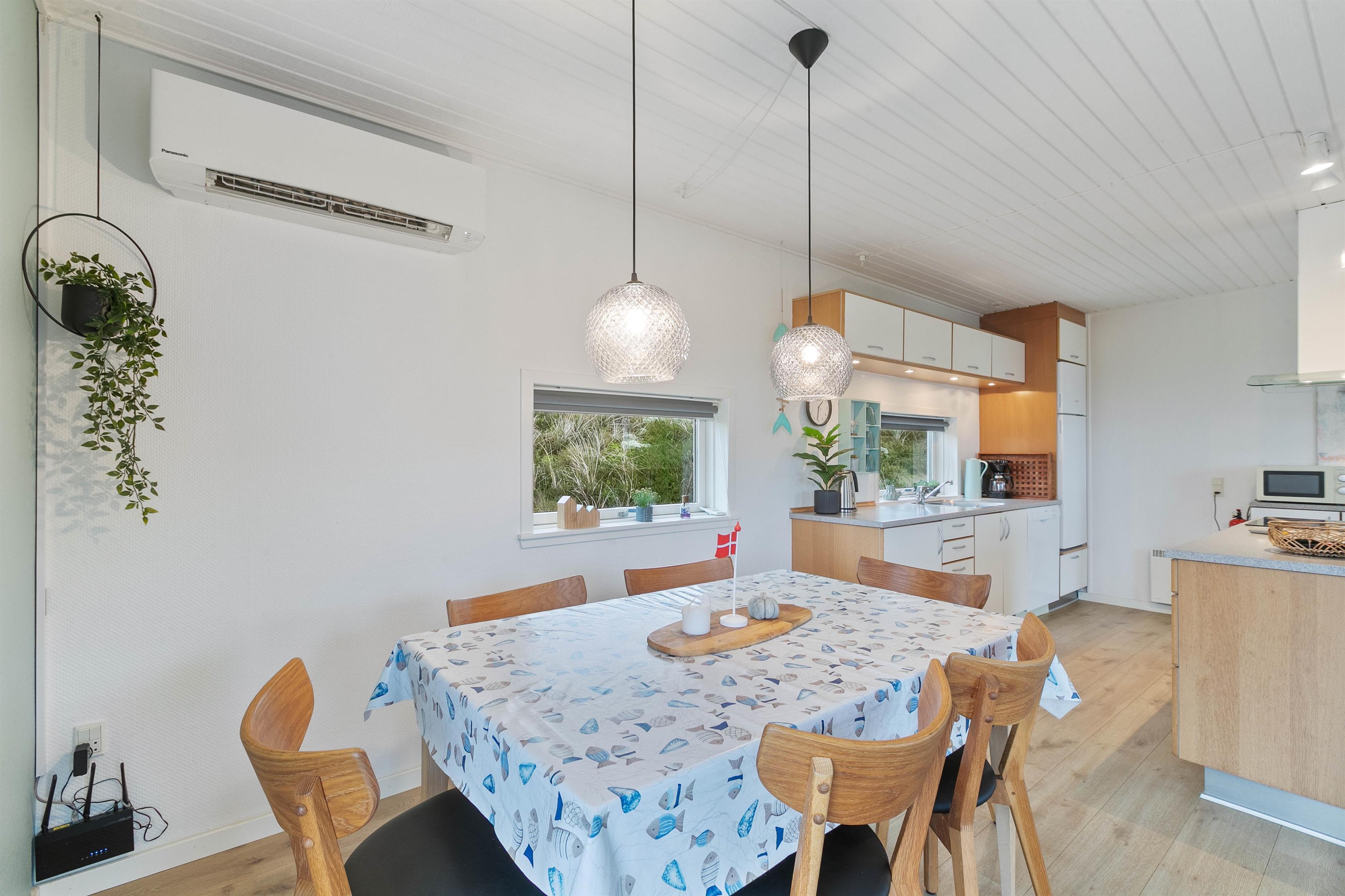 Den knitrende brændeovn sørger for dejlig varme og hyggelig feriestemning hele året rundt, og der er opvaskemaskine i køkkenet, så I kan smide benene opad efter maden i stedet for at bruge tid på opvasken.