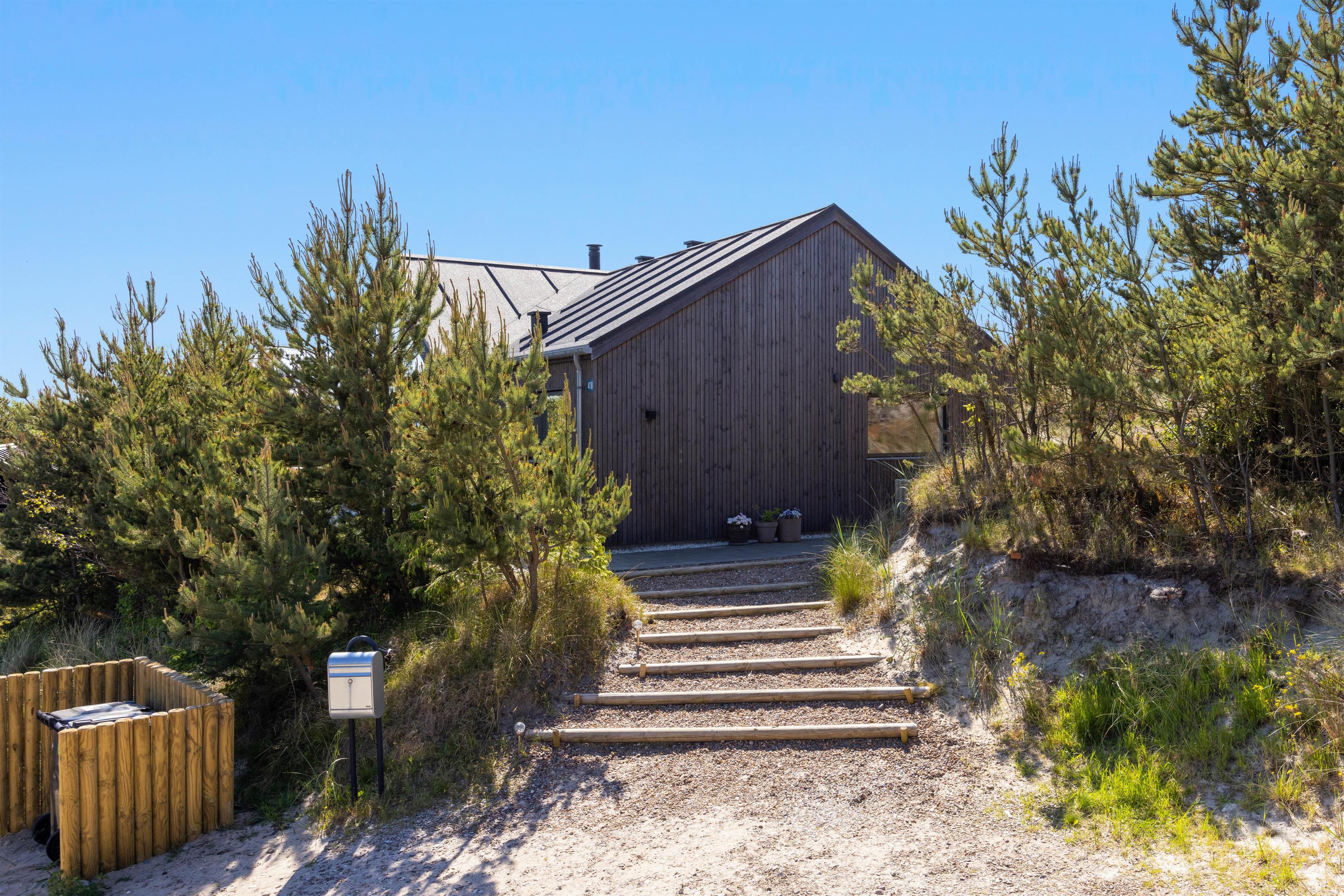 Familiens firbenede venner er hjertelig velkommen i feriehuset, og mon ikke de vil nyde en lang gåtur i klitterne, som I har adgang til direkte fra sommerhuset?