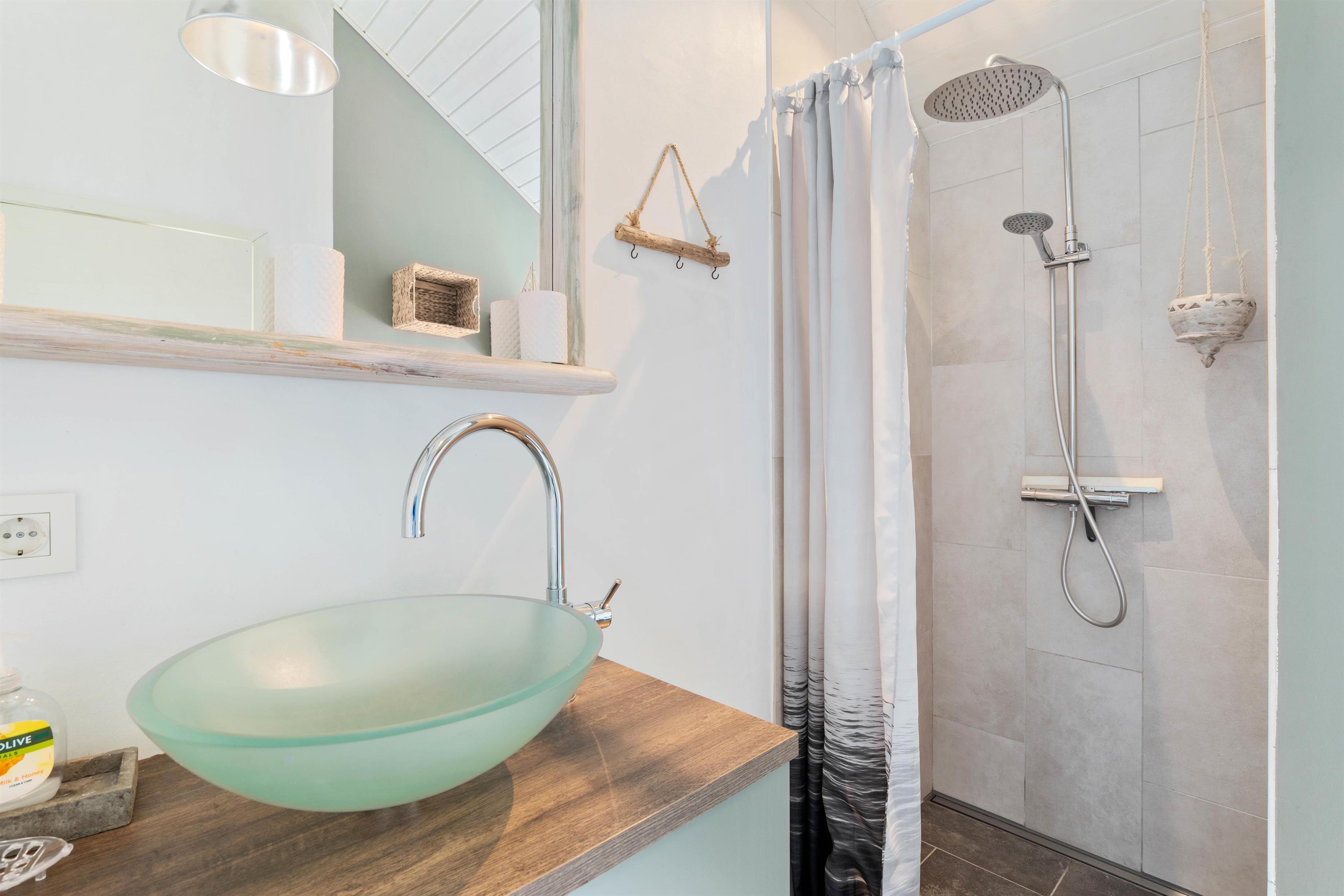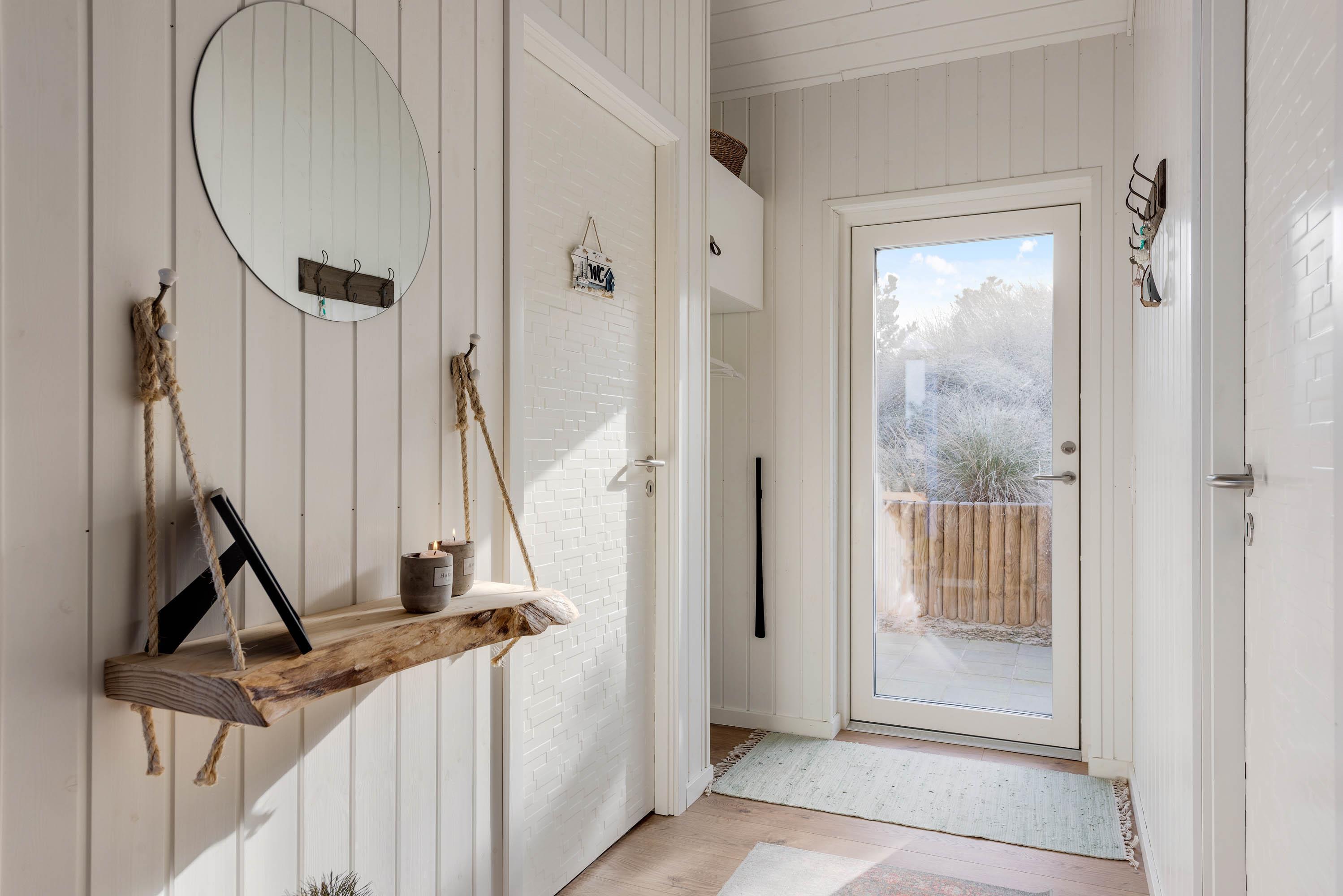 Feriens 6 gæster kan fordele sig på sommerhusets 3 soveværelser - 2 med dobbeltsenge og 1 med en dobbelt sovesofa. Desuden er der en enkelt soveplads under loftet i form af en køjeseng - og under køjesengen er der en gynge, som er et sikkert hit hos børnene. Alle værelser er smagfuldt indrettet, og den smarte stil er også holdt her. I alle værelser er der gulvvarme, og det samme er der på det dejlige badeværelse.