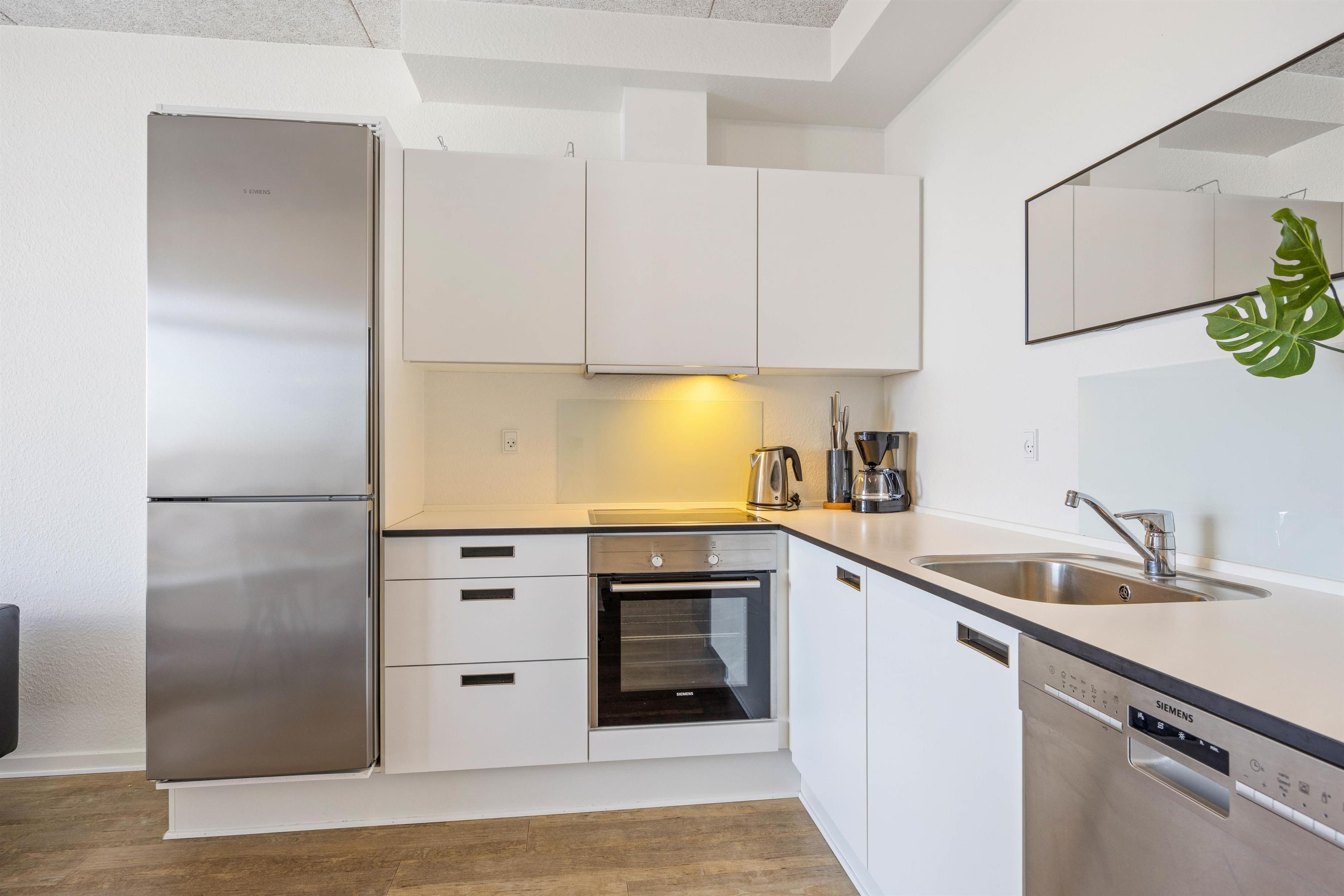 Den moderne indretning byder på plads til 4 personer og 1 hund, og de 67 kvadratmeter fordeler sig på to gode soveværelser, et badeværelse med gulvvarme og et køkkenalrum. Indretningen råder over alle praktiske nødvendigheder i form af opvaskemaskine, vaskemaskine, tørretumbler samt en hurtig og stabil internetforbindelse.
