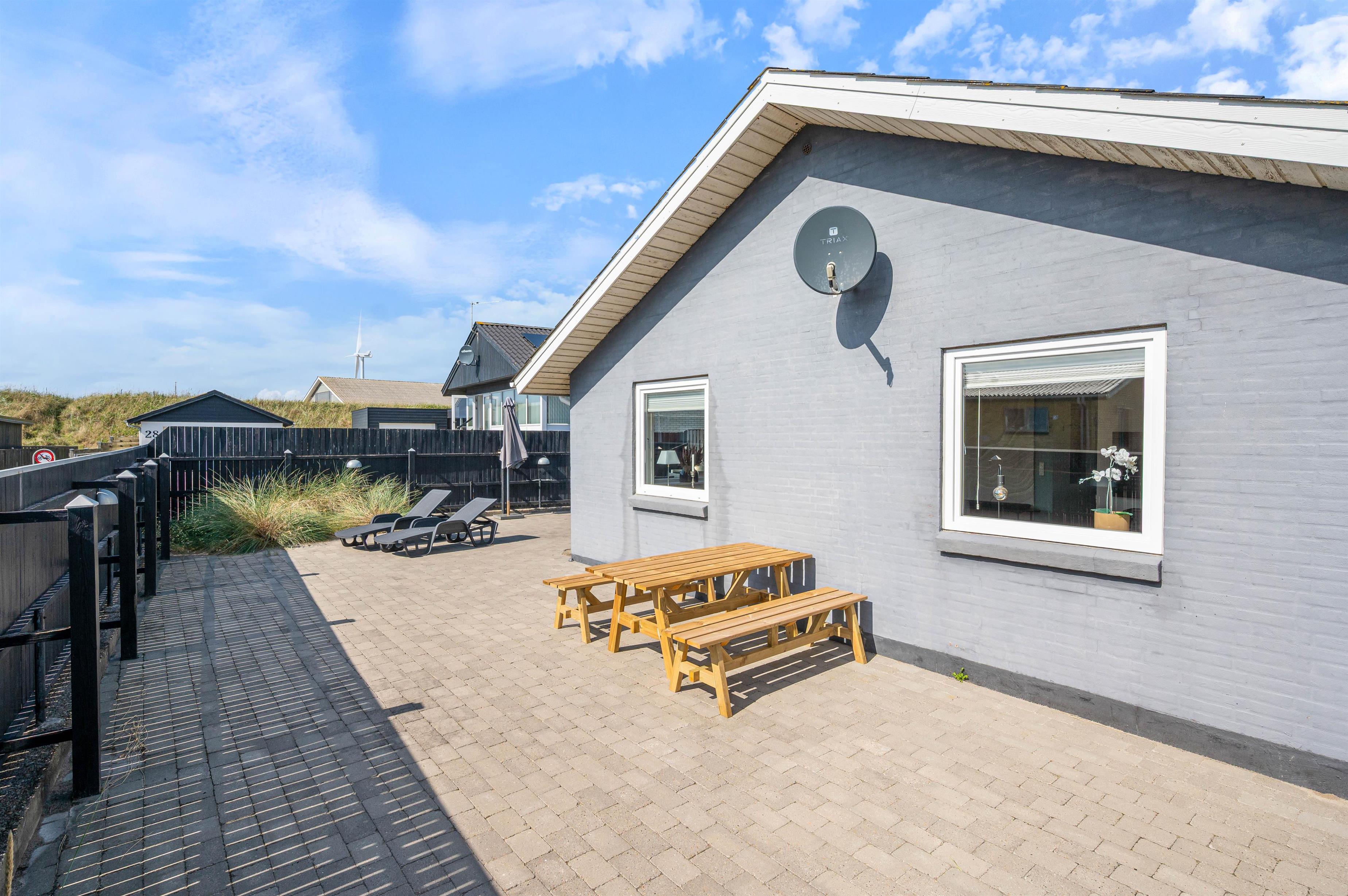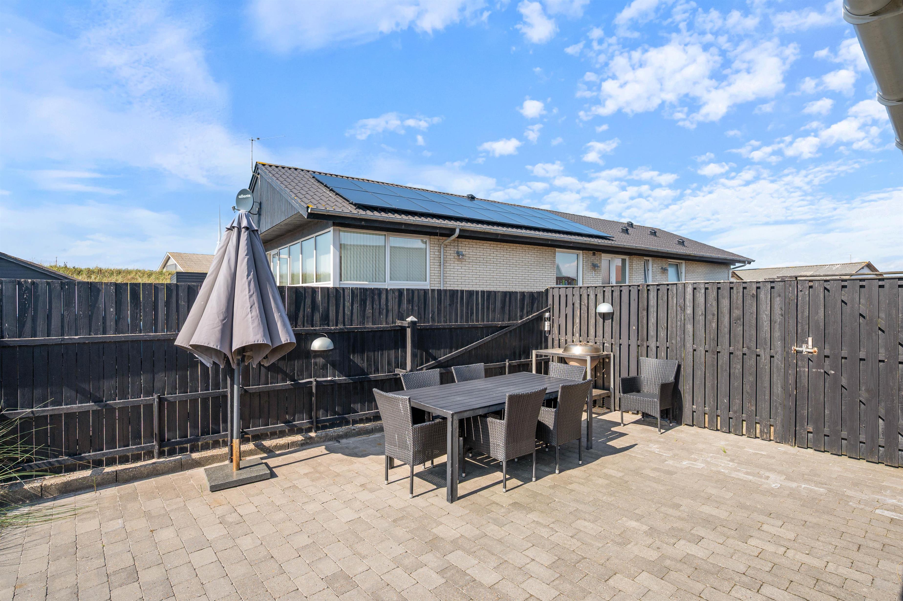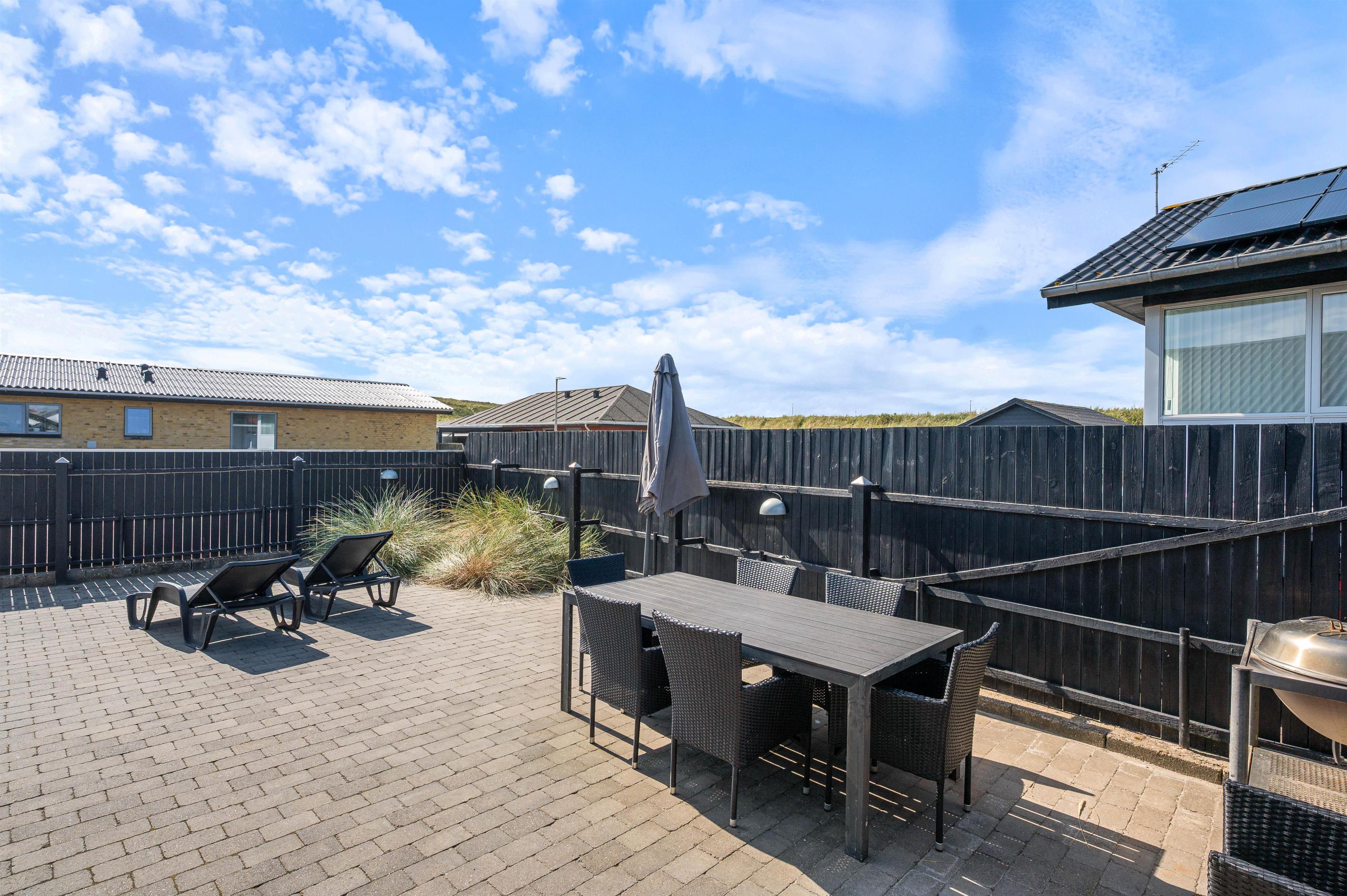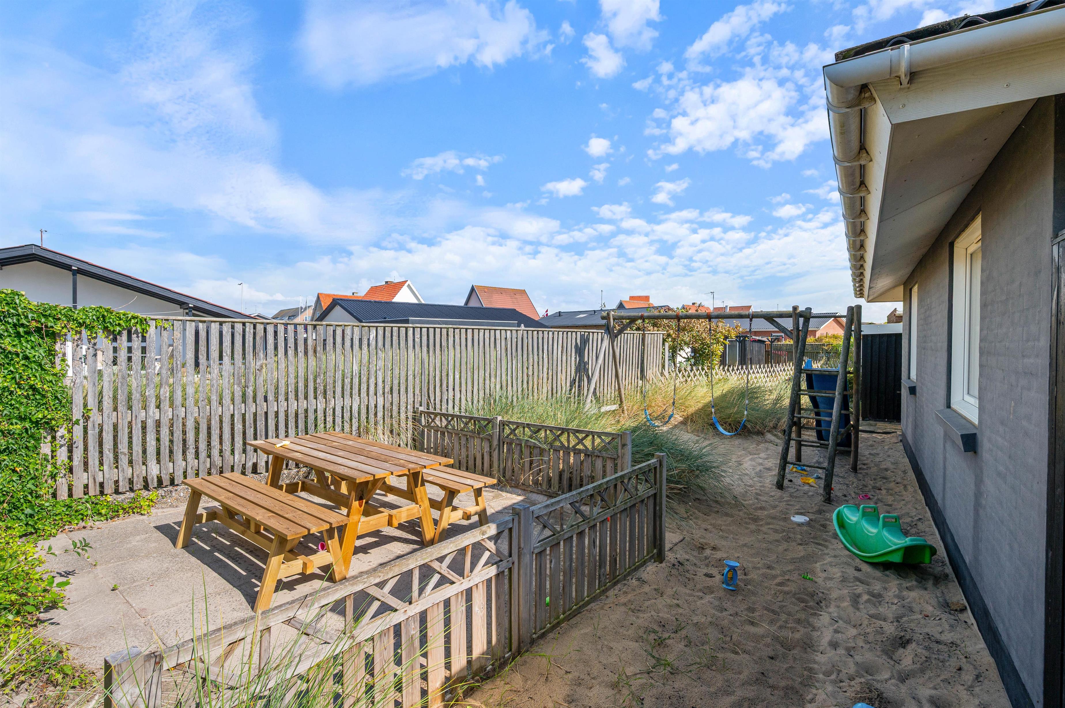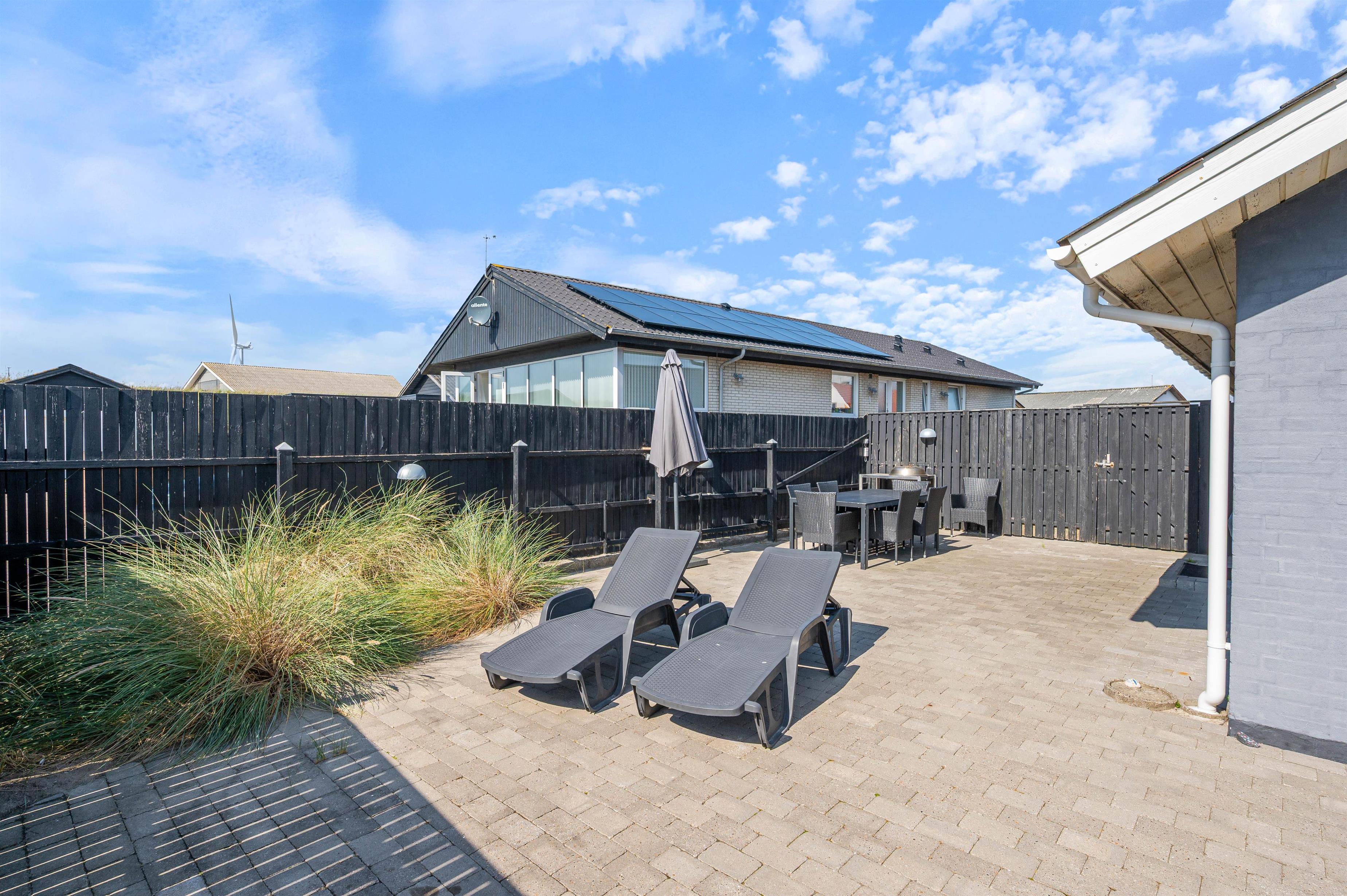 Huset her ligger på en dejlig, helt lukket grund. Her kan man roligt lade børnene og familiens firbenede venner lege frit, alt imens man nyder solens stråler, havets salte duft og konstante brusen i baggrunden.