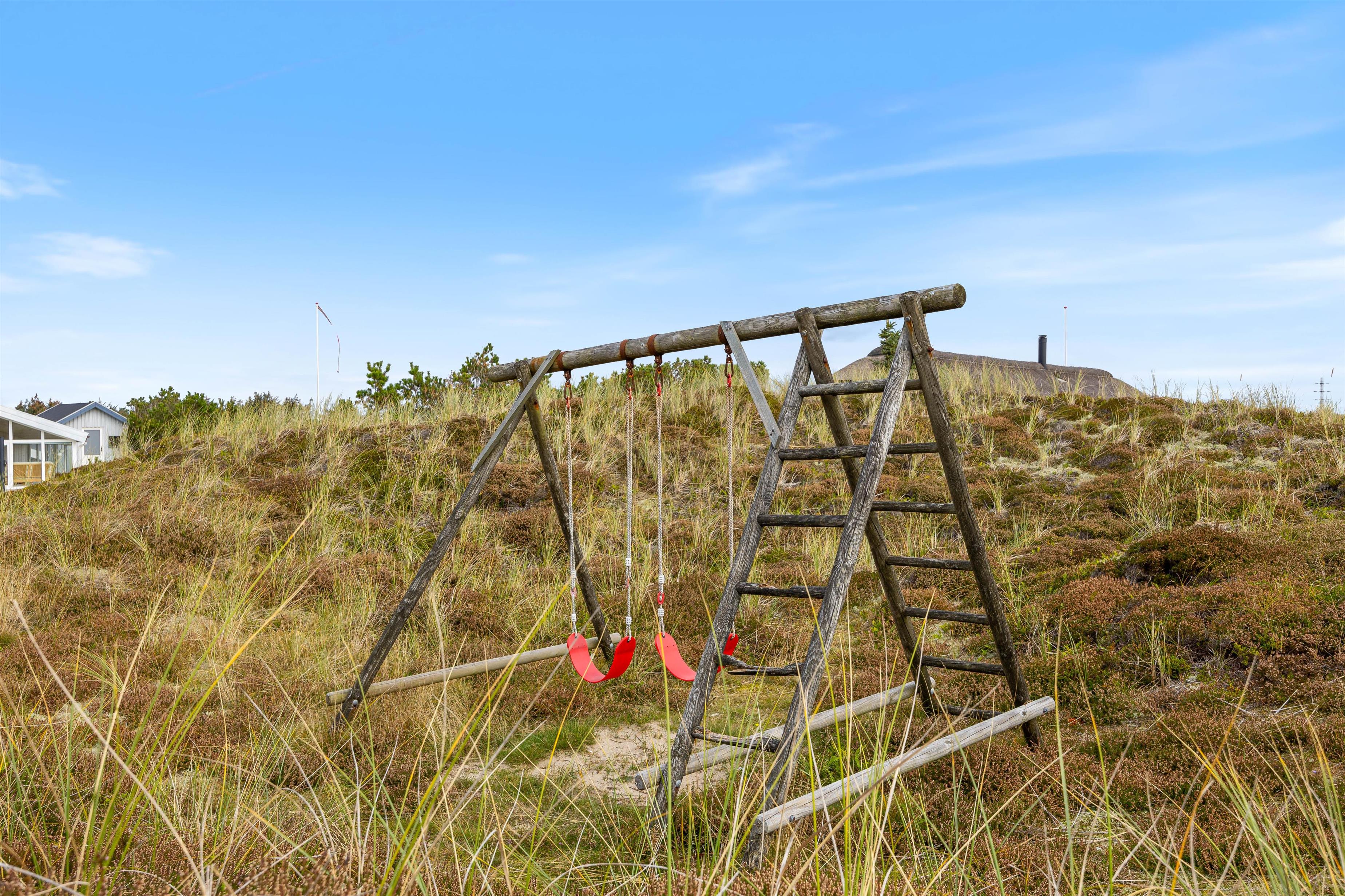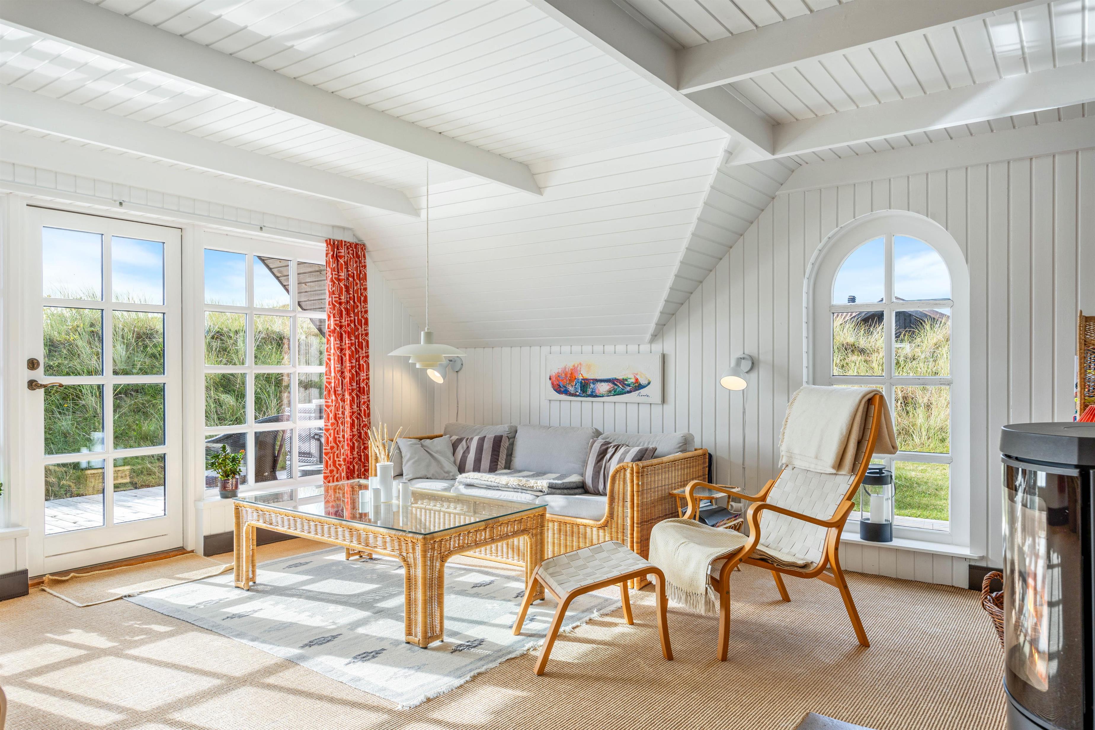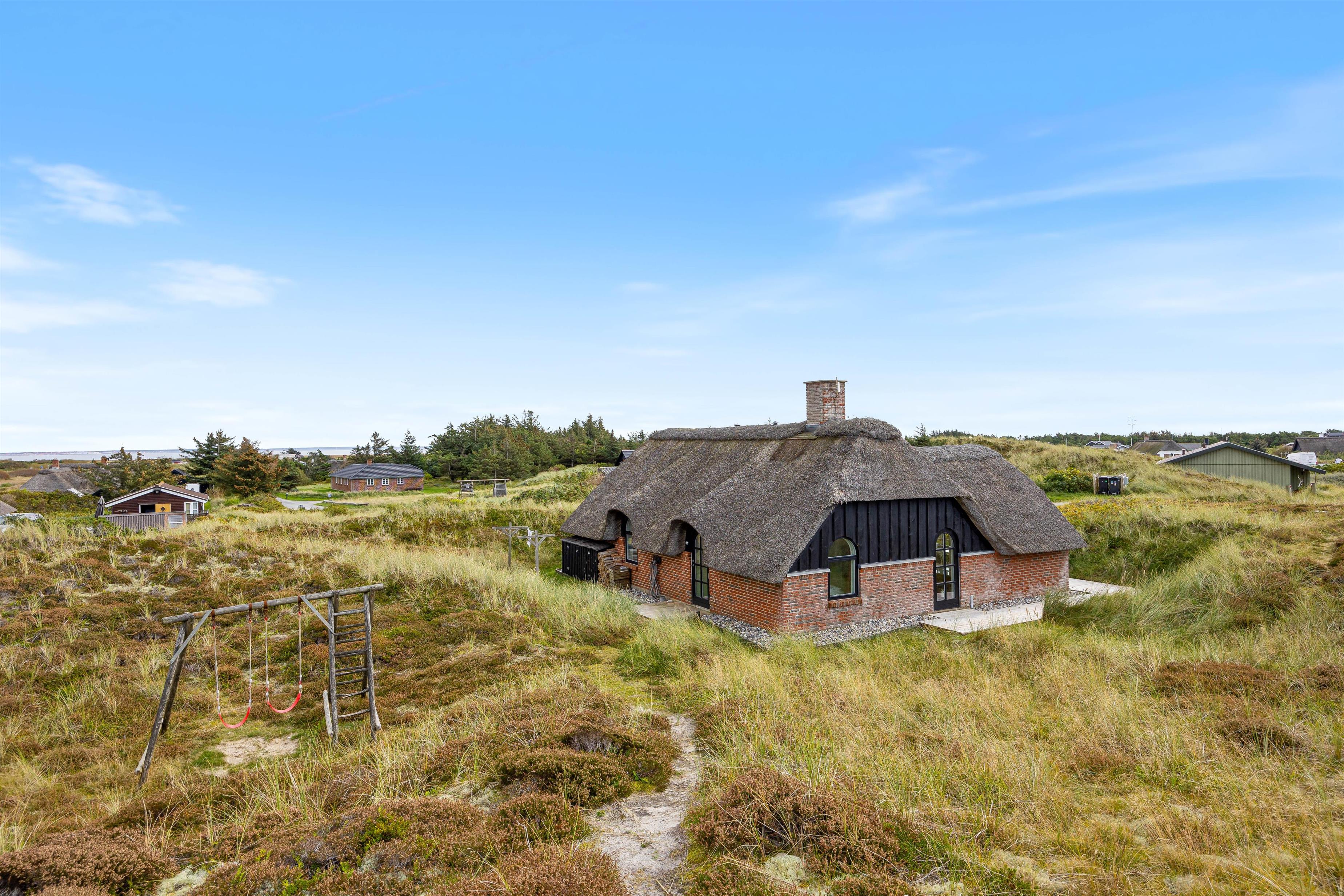 Dette sommerhus er beliggende på en dejlig klitgrund. På terrassen kan I nyde jeres måltider, som I kan tilberede på feriehusets tilh'rende grill, eller slappe af i liggestolene med en god bog.