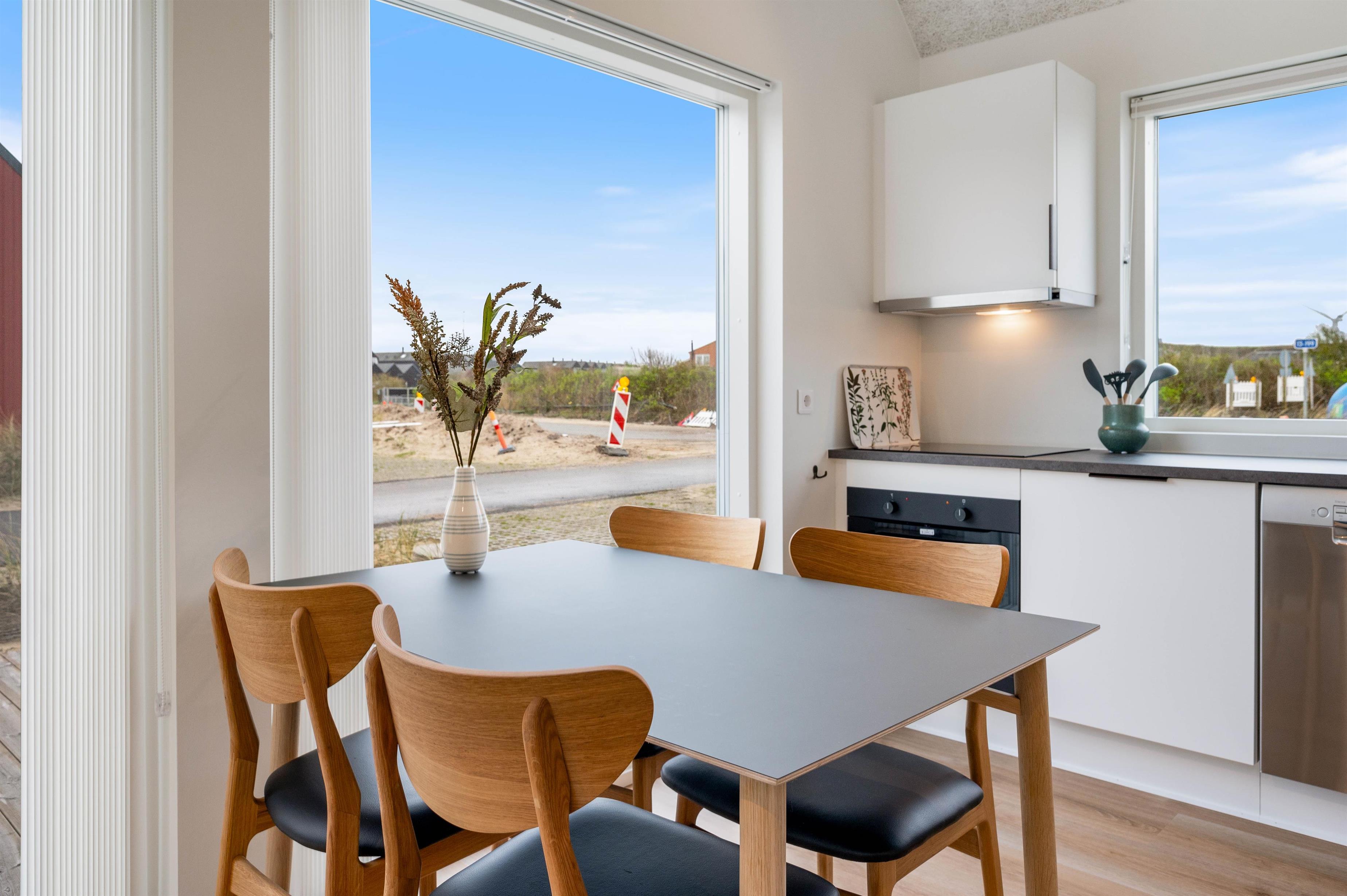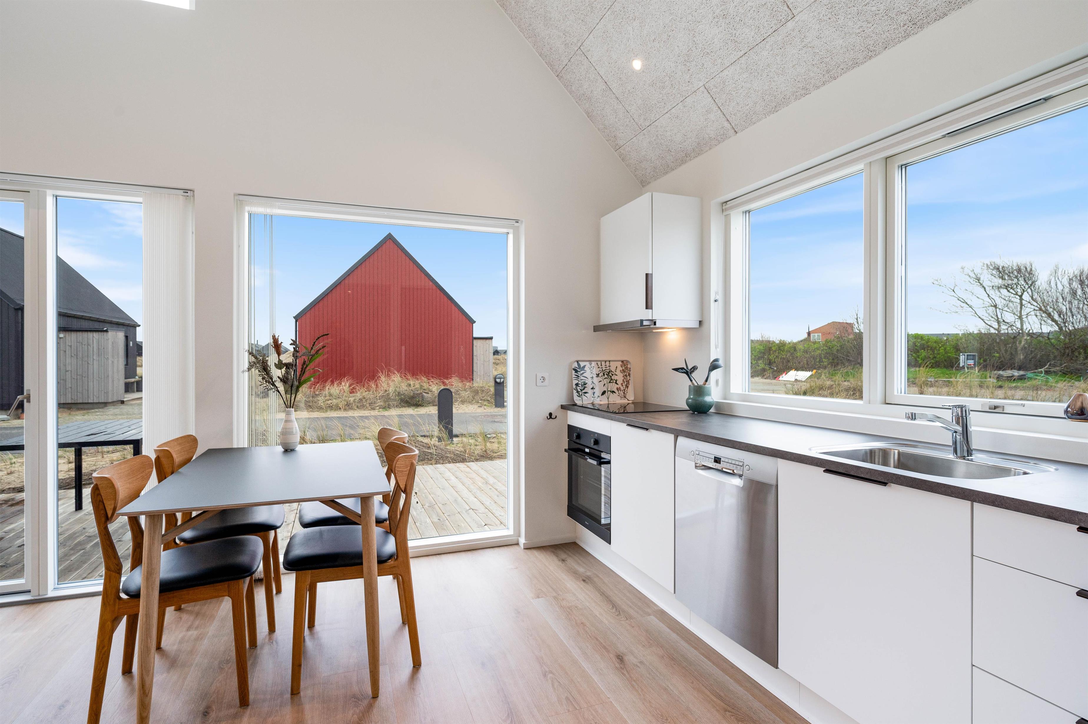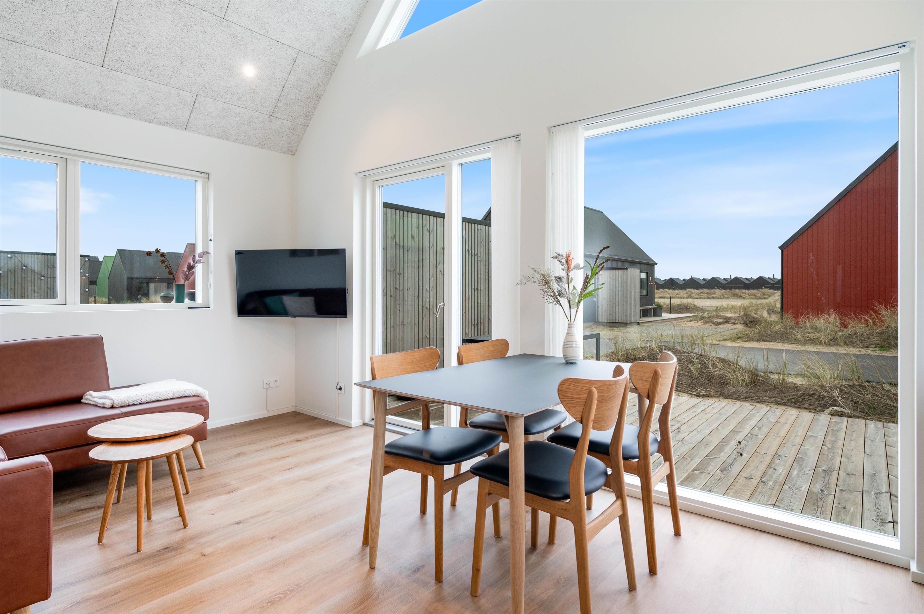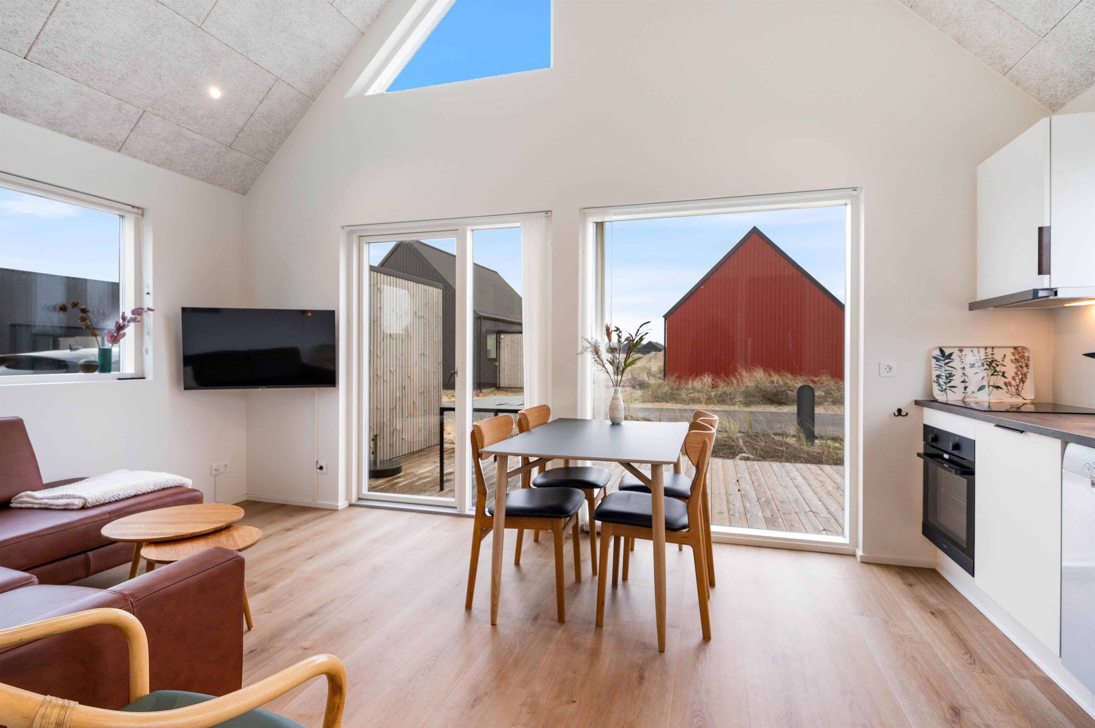 Det moderne sommerhus fra 2023 er indrettet lyst, imødekommende og enkelt. Her er der en komfortabel atmosfære, hvor I alle 4 kan nyde nogle afslappende dage. Sommerhusets stue ligger i åben forbindelse med både spiseområdet og det funktionelle køkken. I køkkenet kan I både finde en opvaskemaskine og en 80 liter fryser. I stueområdet kan I nyde en dag på sofaen med en god film.
