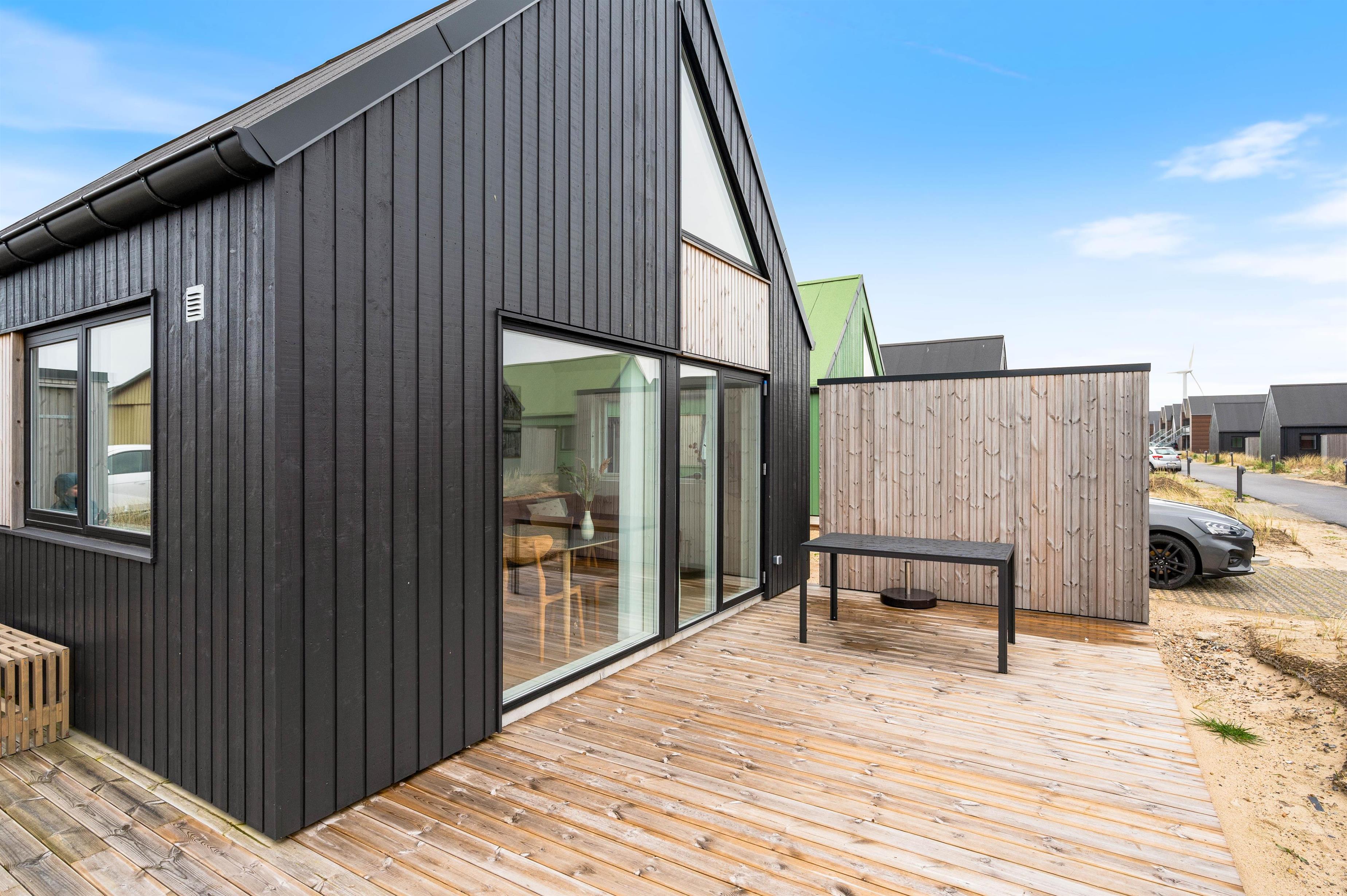 Sommerhuset har en skøn åben terrasse, hvor I kan følge med i livet på Tyskerhavnen. Her kan I nyde et lækkert grillmåltid efterfulgt af en hyggelig gåtur ned langs Ringkøbing Fjord. Her kan I også se kabelparken, hvor folk står på wakeboard og vandski.