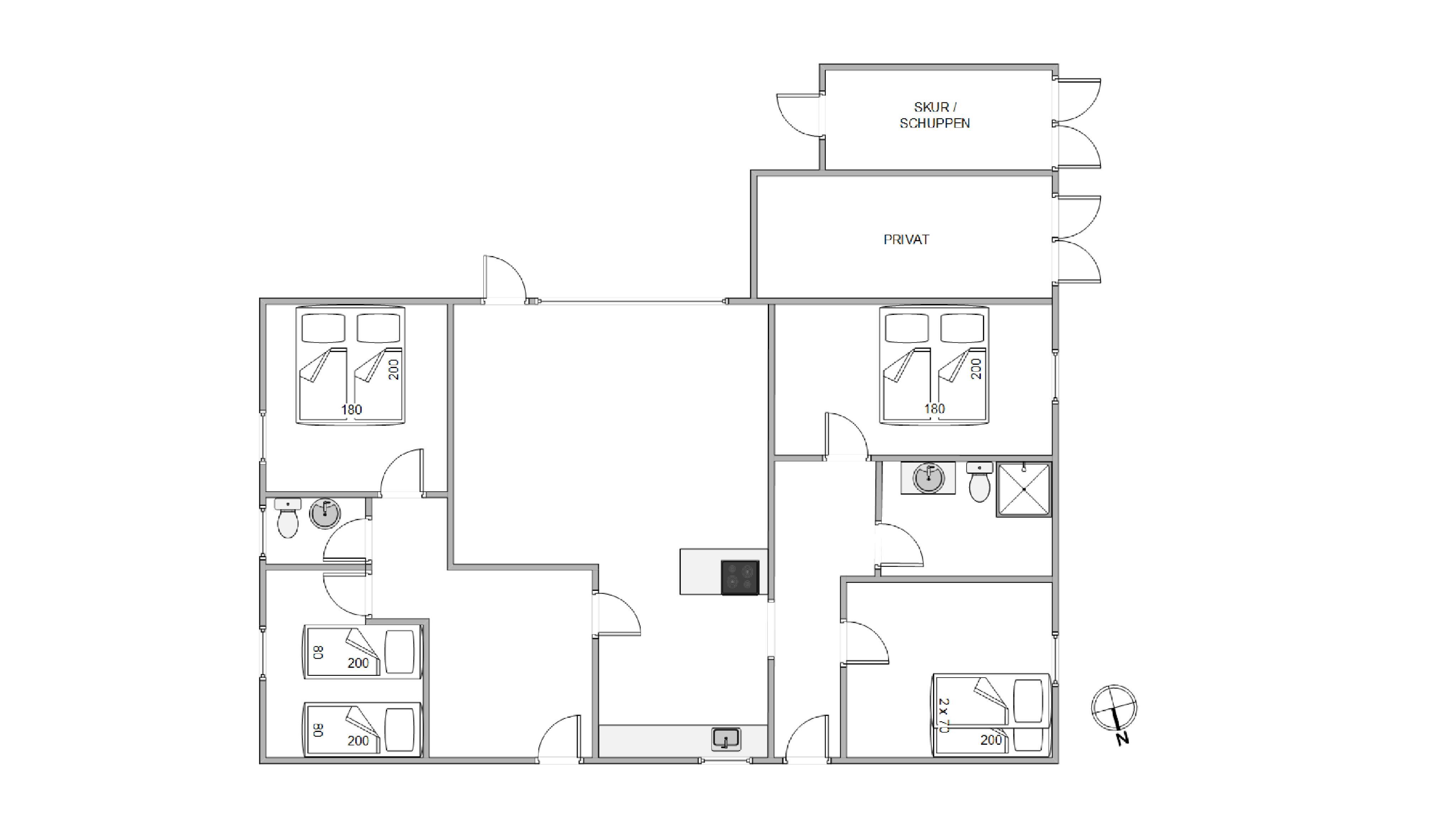 Feriehuset er renoveret i 2010 og er ideelt til den store familie eller 2 familier. Der kan være 8 feriegæster i sommerhuset, og sovepladserne fordeler sig på 4 gode soveværelser. Der er 2 dobbeltsenge, 2 enkeltsenge og på det sidste værelse er der en køjeseng; perfekt til børnene.