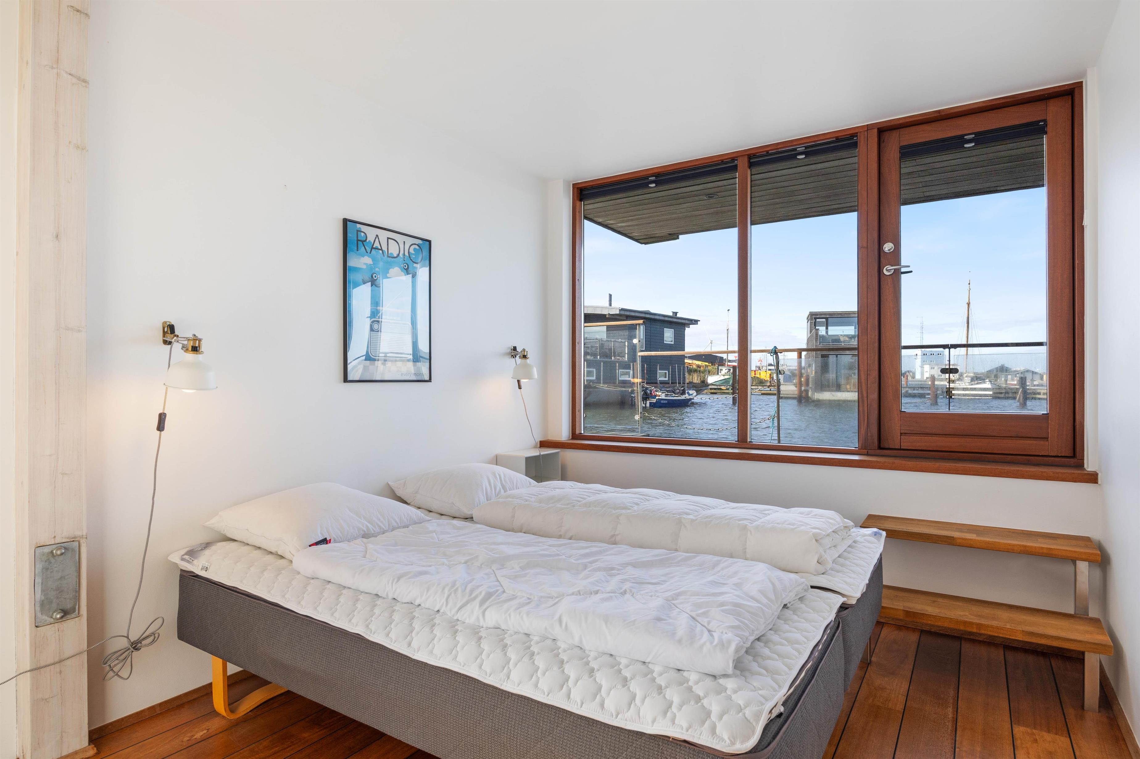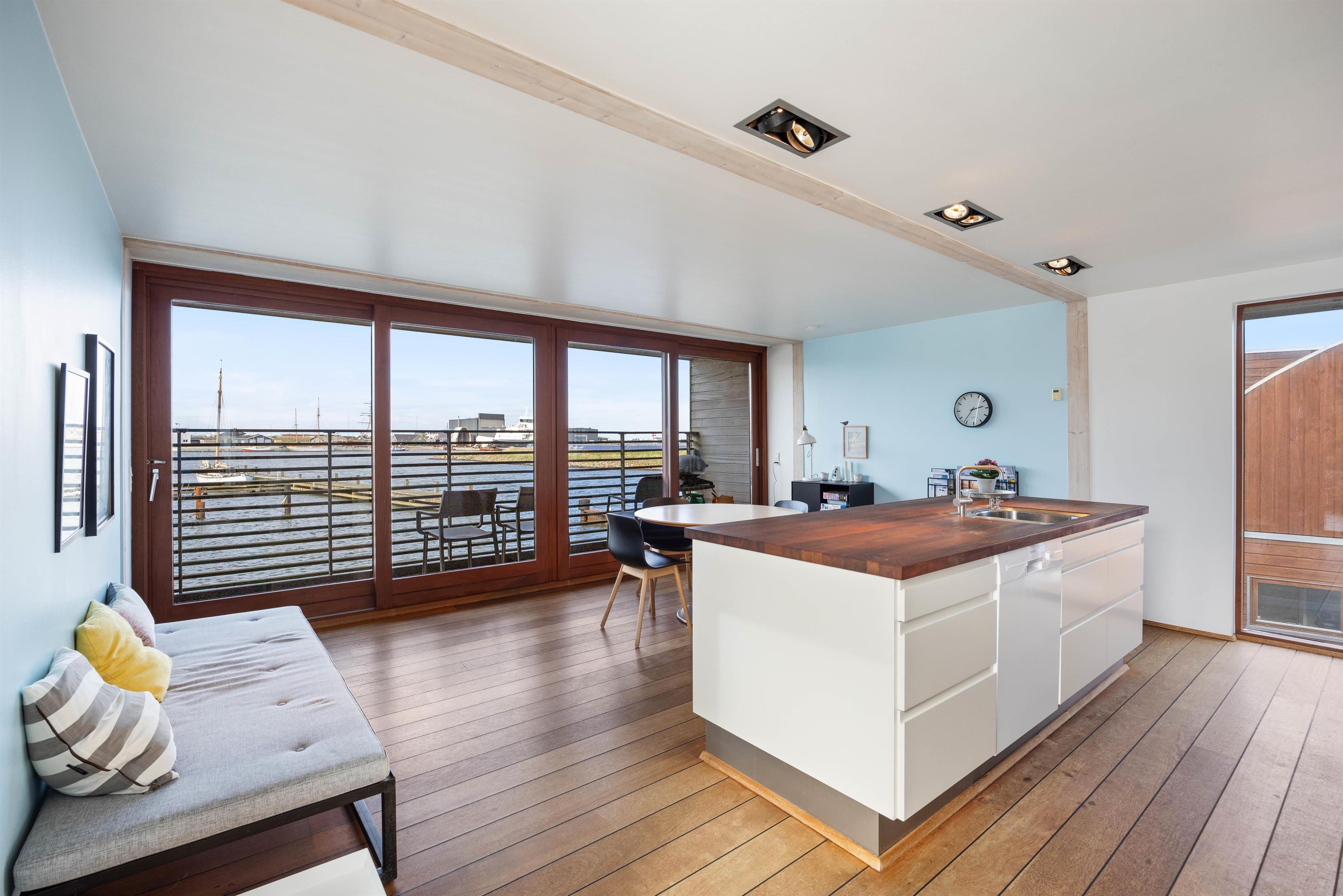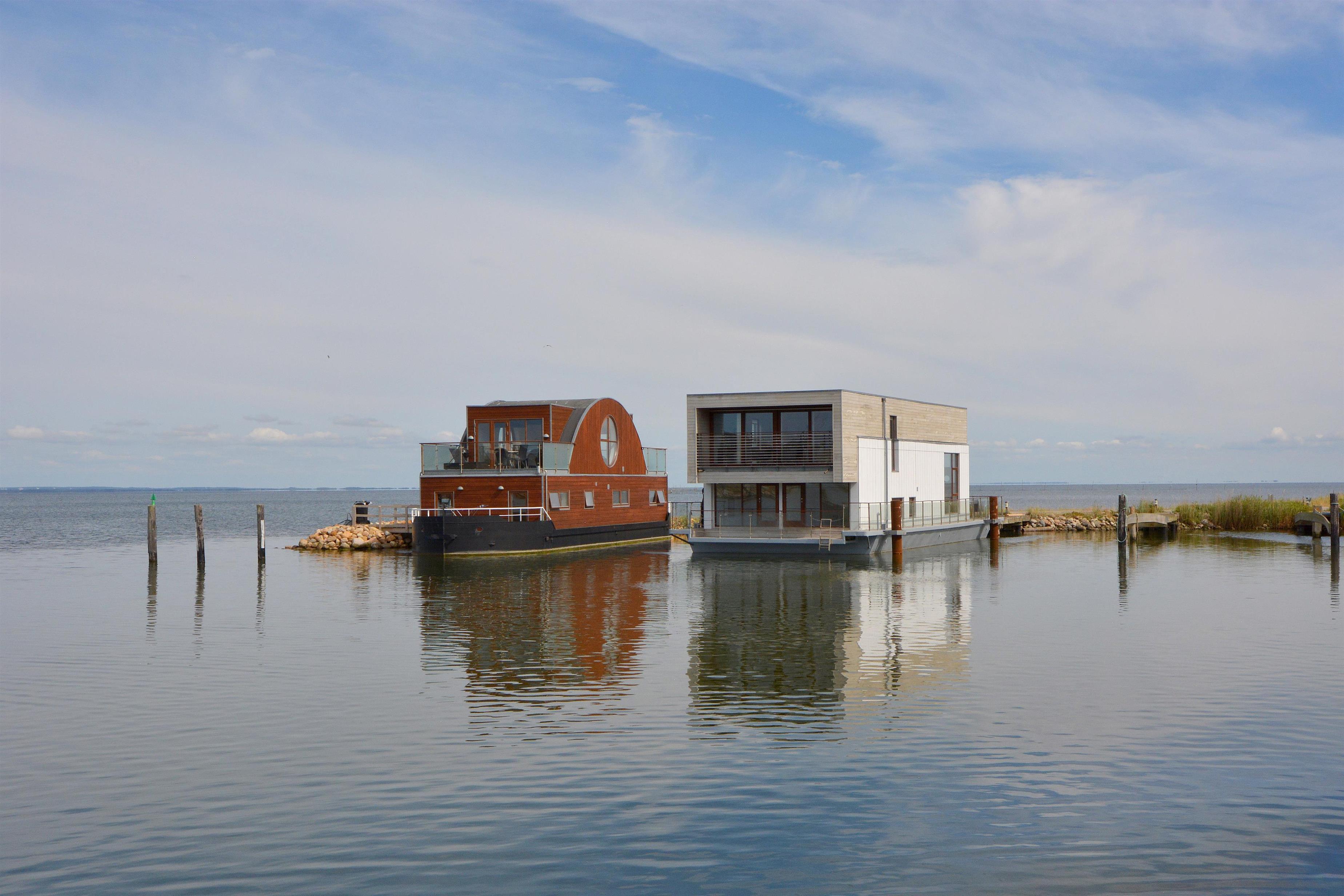 Arkitekturen er flot, enkel og maritim, møbleringen er flot og stilren, og ingen steder er der gået på kompromis med kvaliteten. Husbådens 140 m2 er fordelt på to plan, og praktisk indrettet med et badeværelse på hver etage.