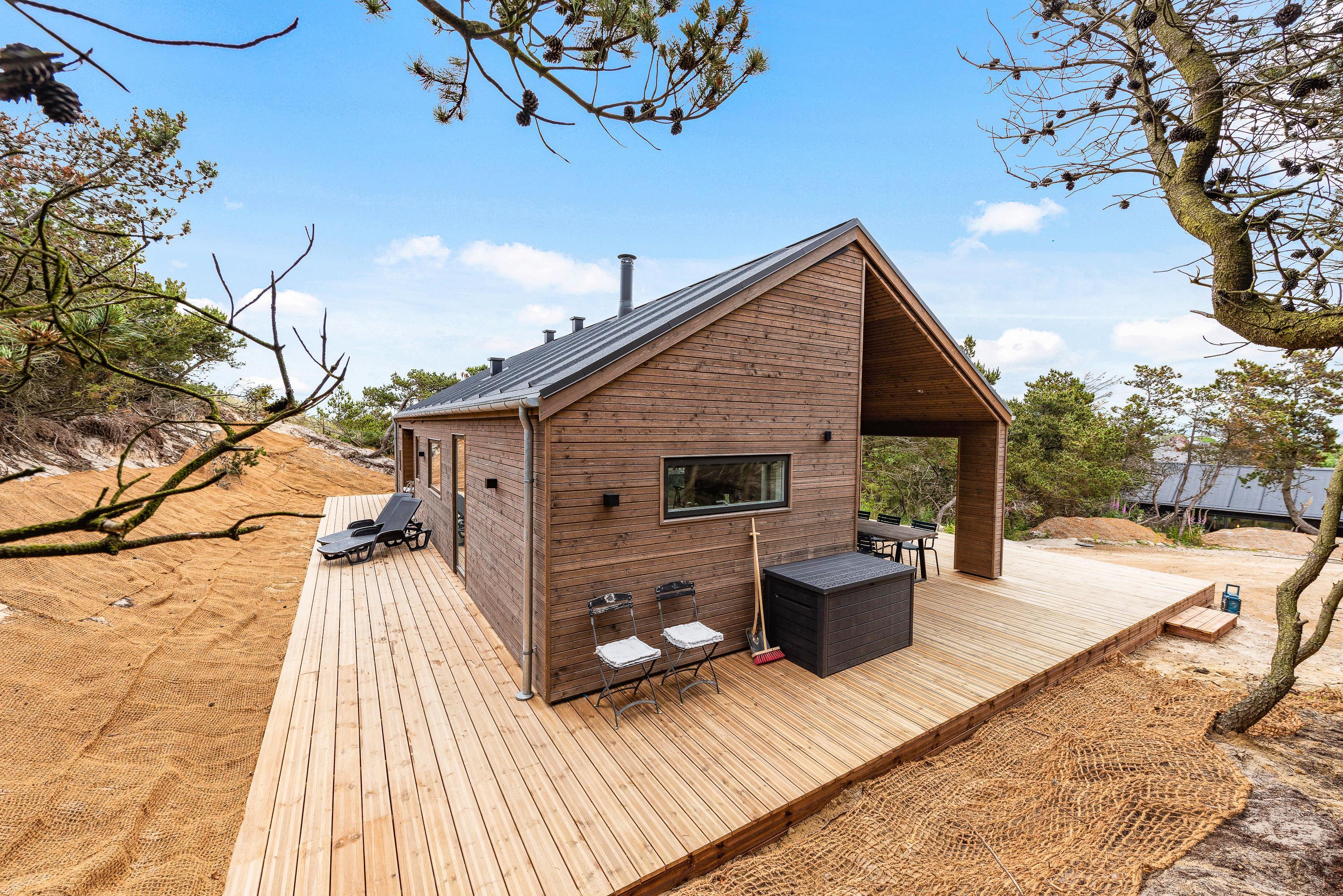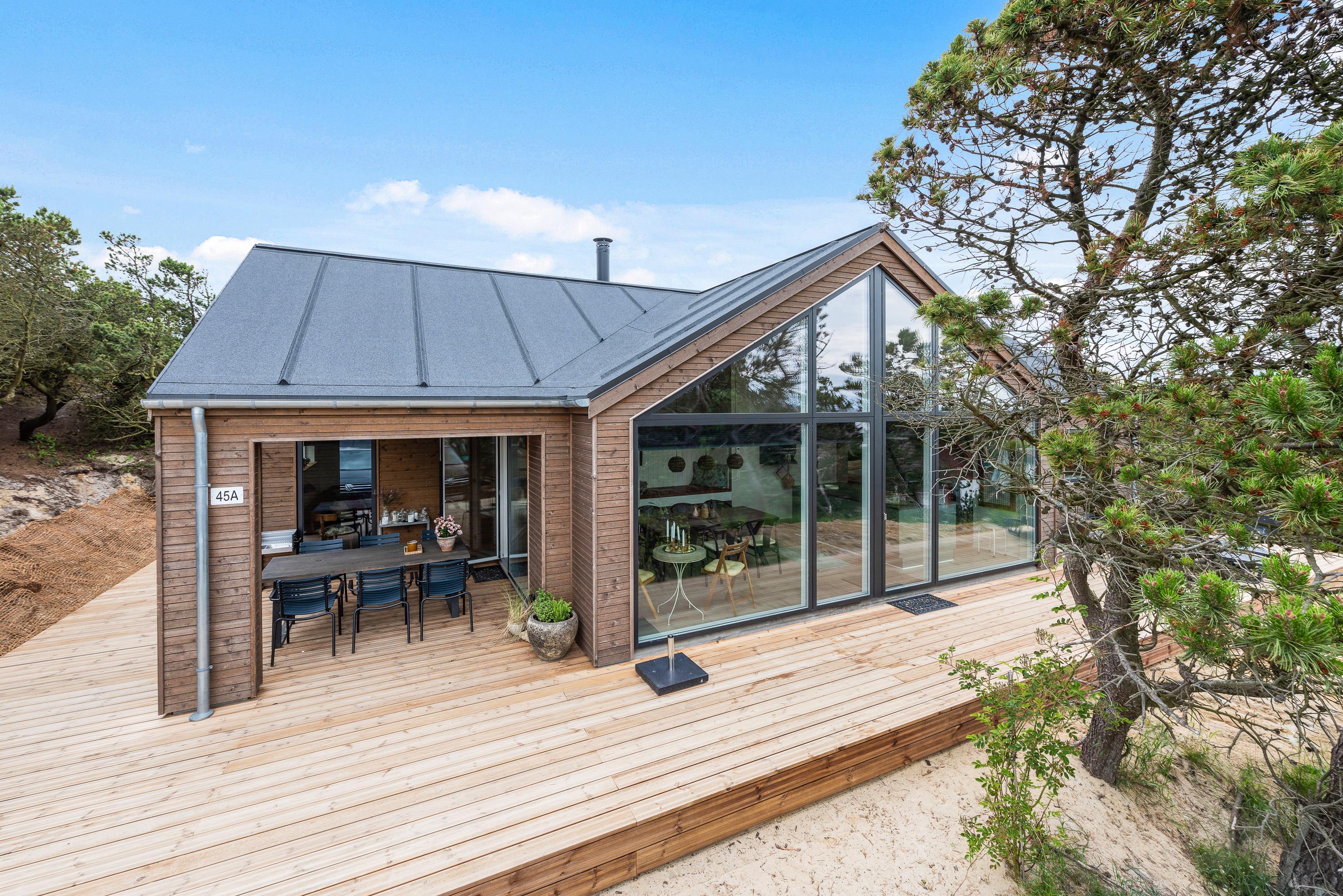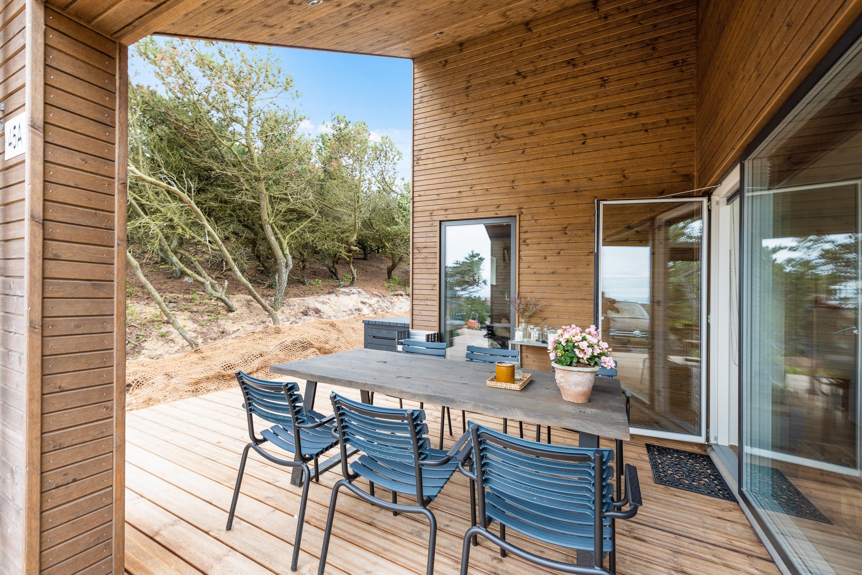 For enden af Dakotavej i Hvide Sande og højst oppe ligger Katrine og Josefines skønne sommerdrøm med fjordudsigt, kendt fra TV2’ serie ”Sommerdrømme”. Dette skønne træferiehus har plads til 6 personer.