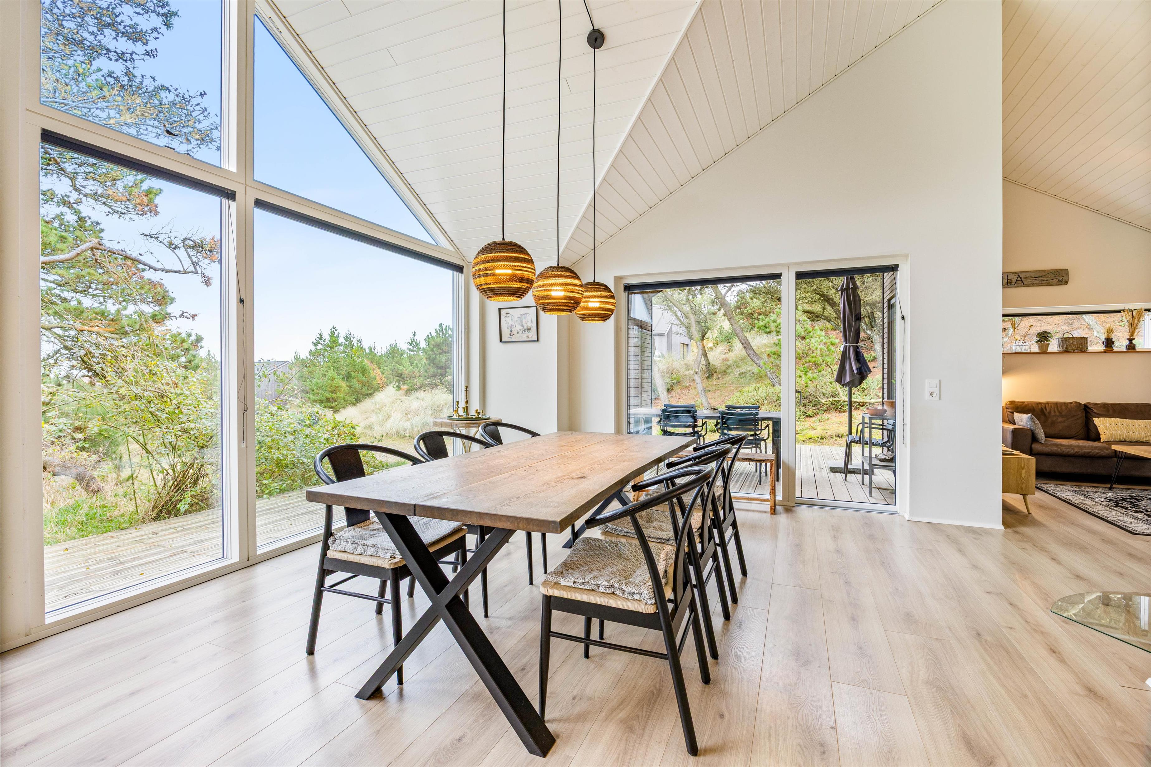 Denne skønne ”sommerdrøm” ved Vesterhavet har det hele. Nyd morgenkaffen til solopgangen over Ringkøbing Fjord fra den sydøstvendte terrasse – eller fra spisebordet – de store vinduer mod øst lukker den varme morgensol helt ind i huset.