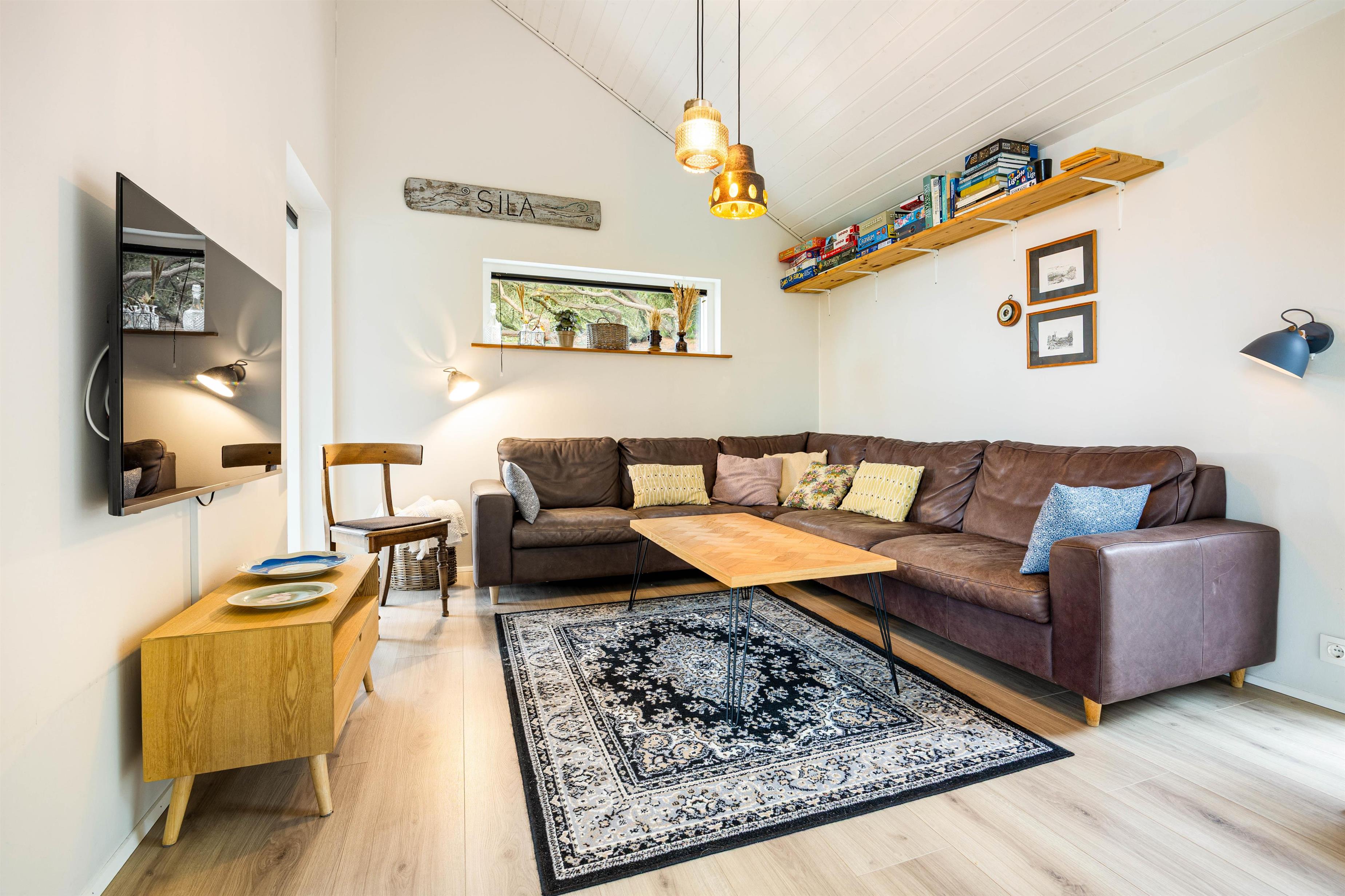 Sæt jer til rette i den bløde sofa og slap af i den stemningsfyldte stue, mens ilden knitrer i brændeovnen – rent velvære efter en lang dag ved stranden.