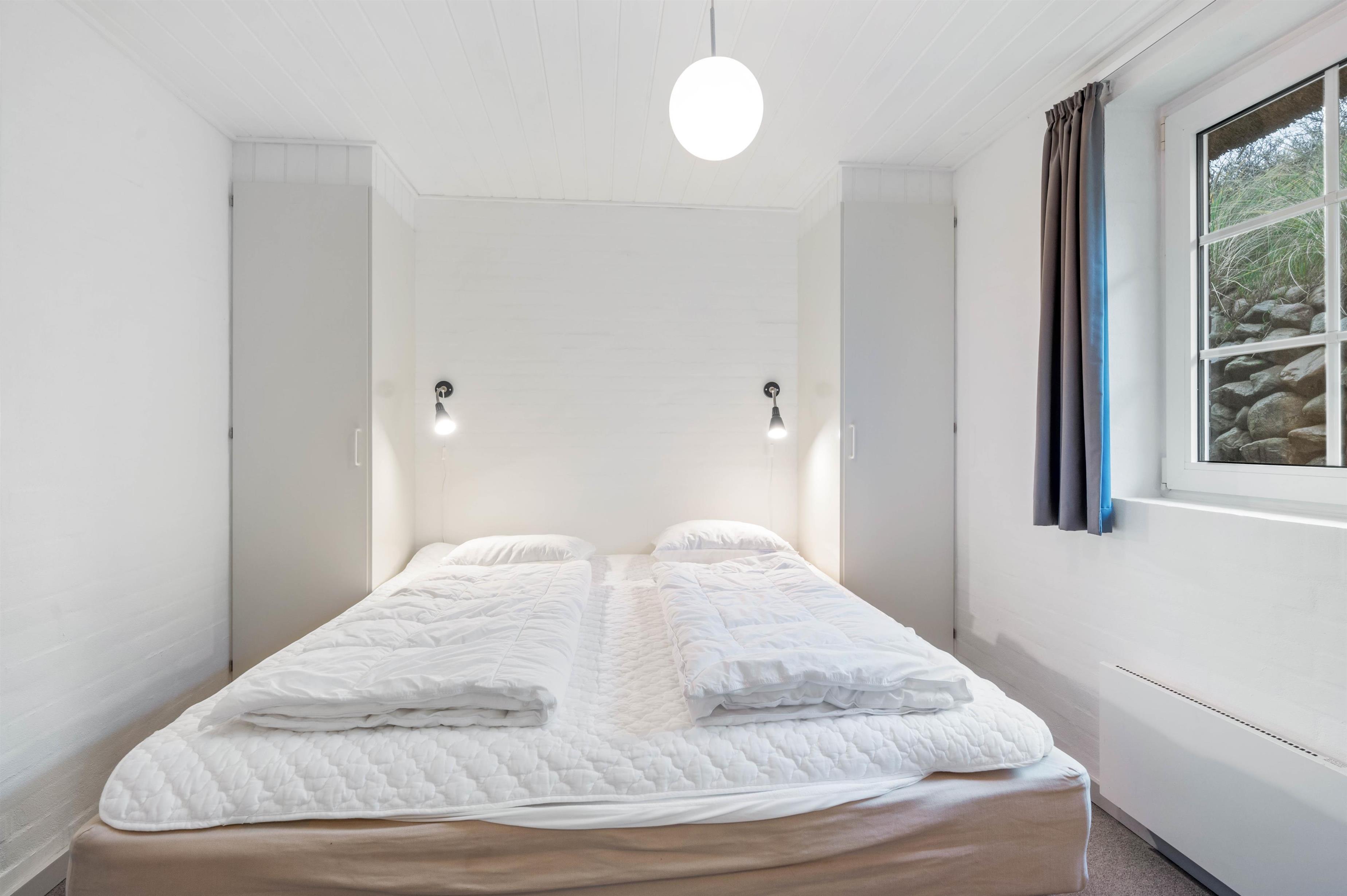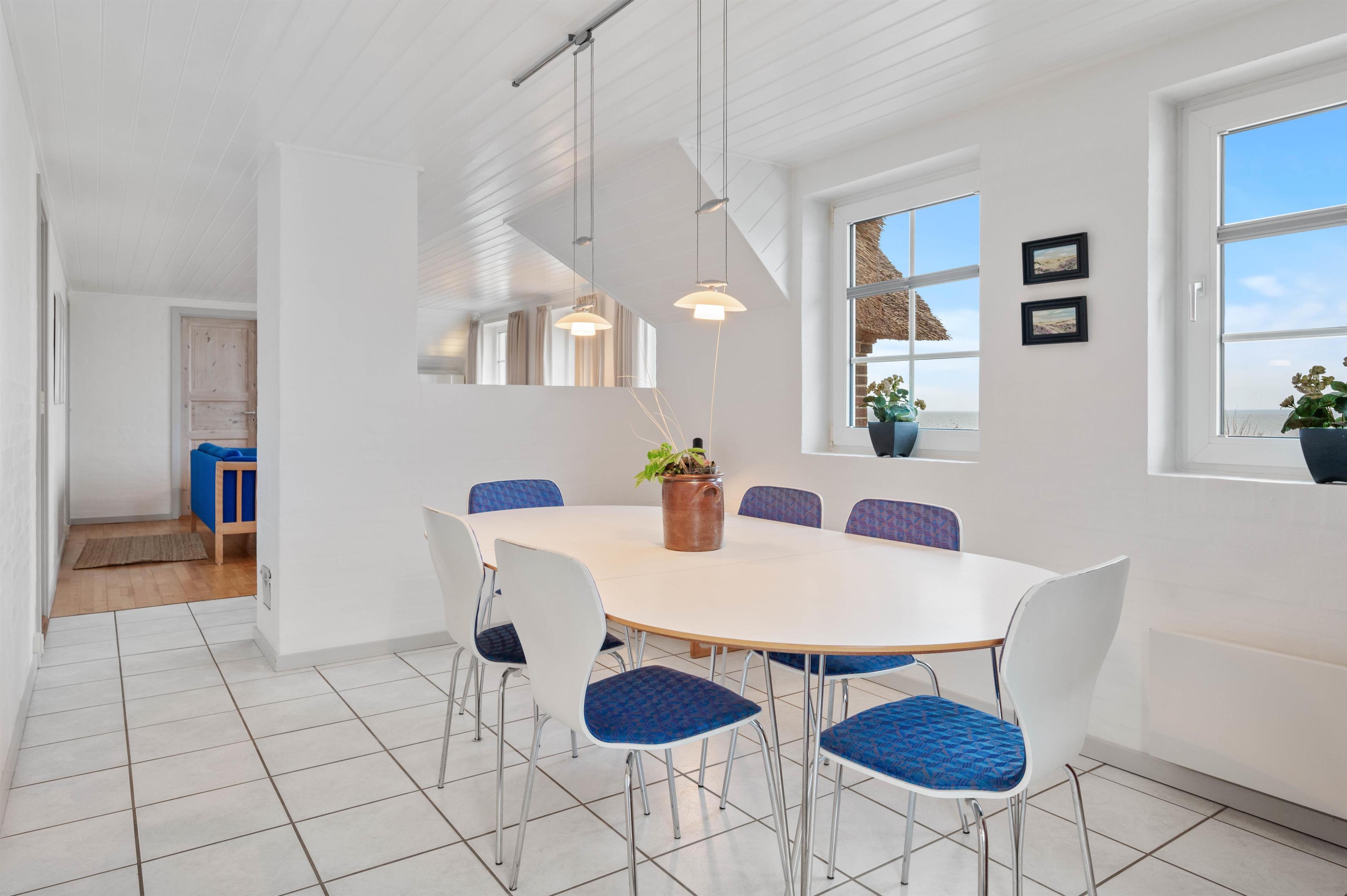 Et flot, lyst og velholdt feriehus i Hvide Sande med en helt unik beliggenhed. Her har man en unik udsigt, bor midt i den prægtige natur mellem Vesterhavet og Ringkøbing Fjord og så har man kun ca. 10 minutters gang til centrum i Hvide Sande. Der er 3 gode værelser, et stort badeværelse med standvandsspa og sauna. Stuen og køkkenet er malet hvidt, hvilket gør huset dejligt lyst.
