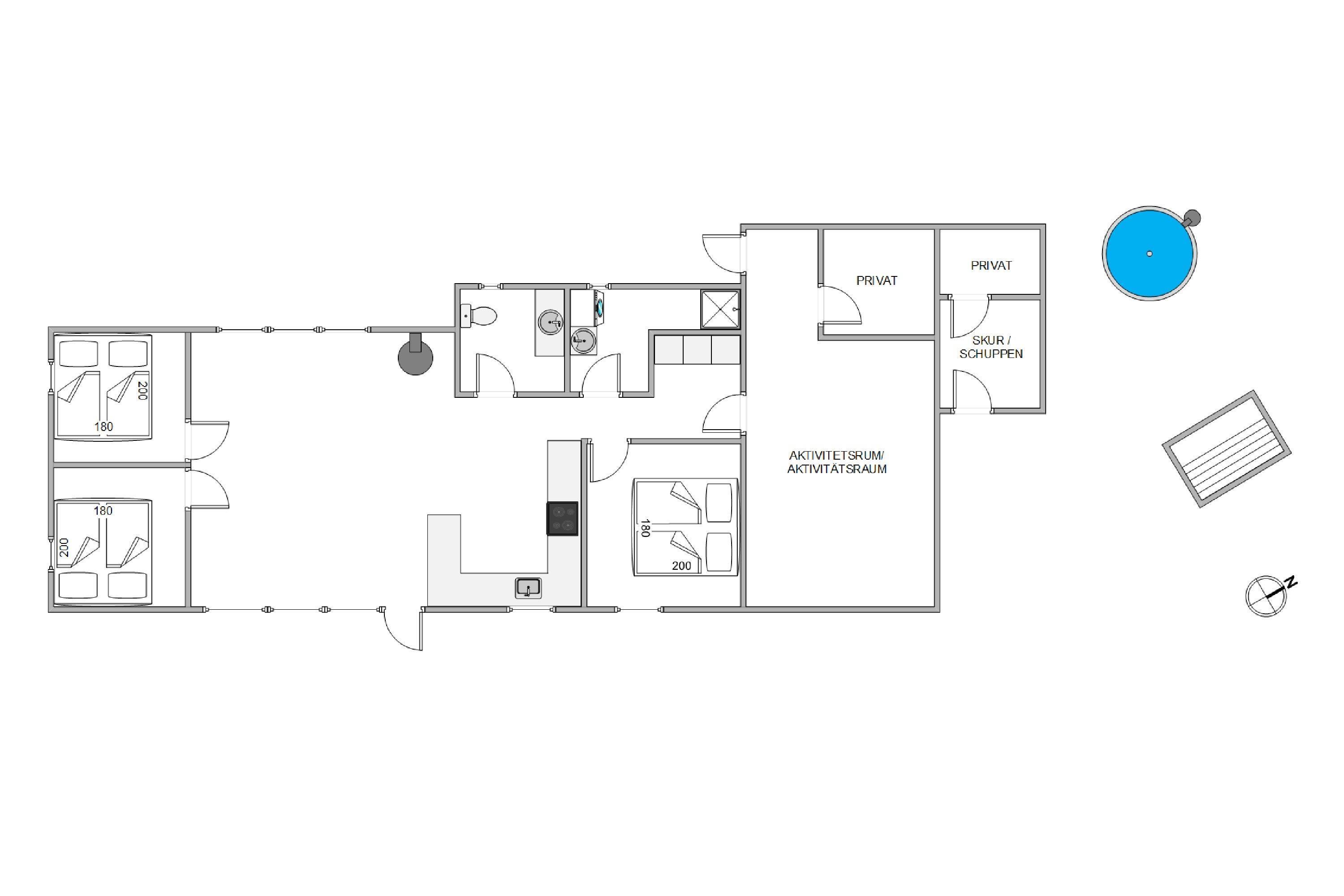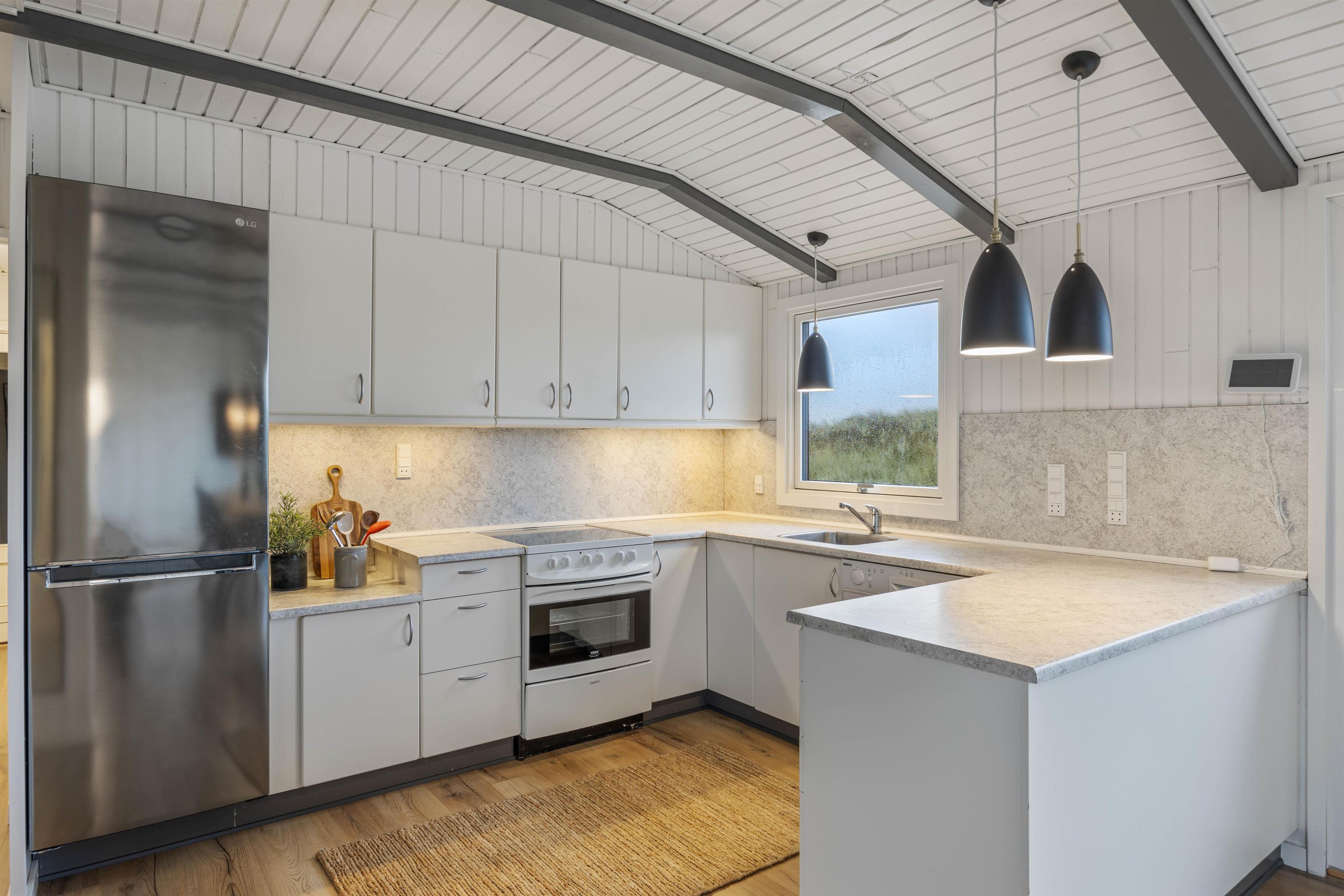 Med det samme I træder ind i sommerhuset møder I et lyst og dejligt køkken/alrum, hvor den knitrende brændeovn skaber en hyggelig atmosfære, perfekt til afslapning på de kølige aftener. Køkkenet er fuldt udstyret med alt, hvad I har brug for, herunder opvaskemaskine, så I kan bruge mindre tid på de praktiske opgaver og mere tid på at nyde ferien.