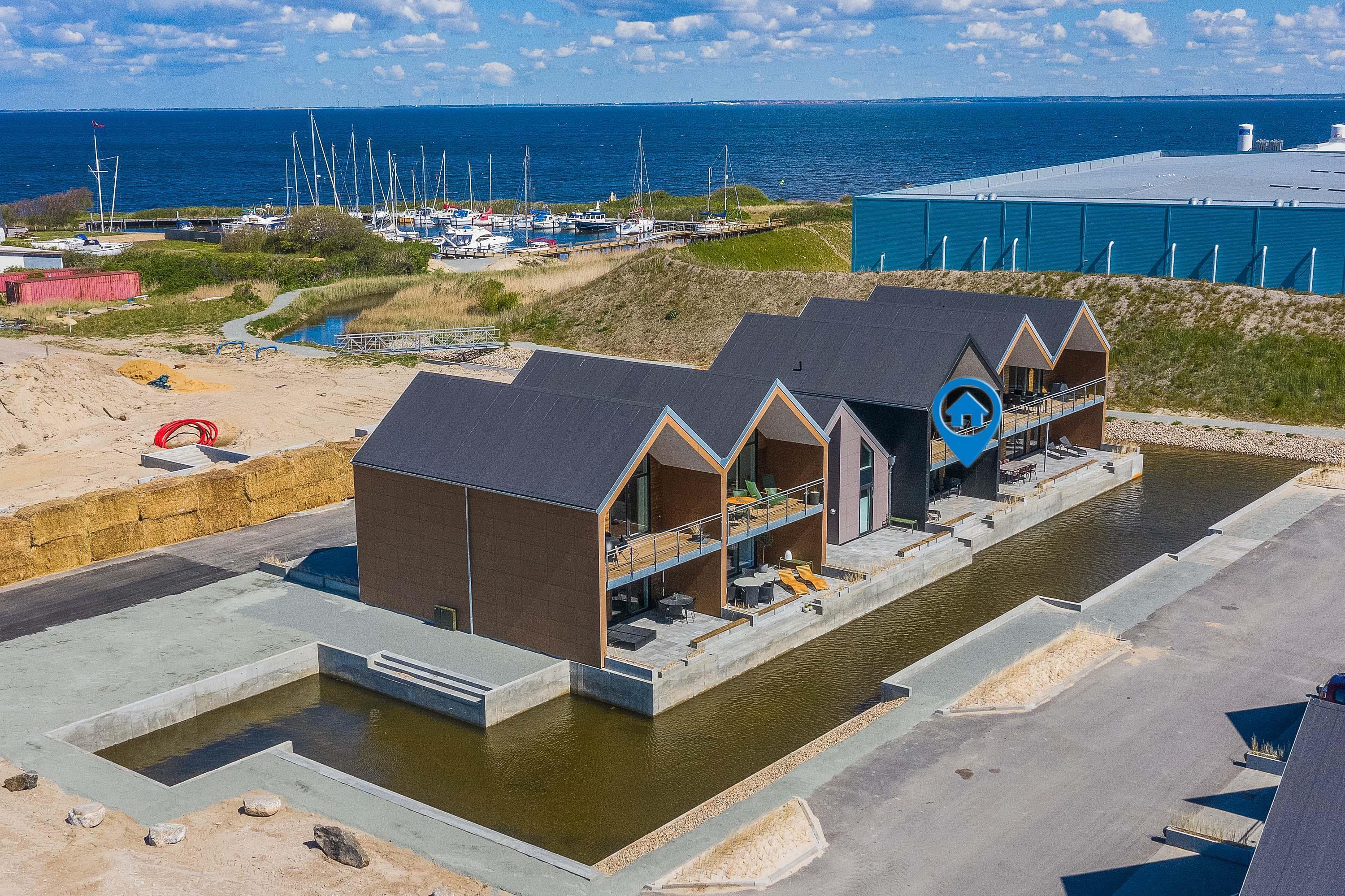 De store panoramavinduer mod sydøst giver et fantastisk lys – og man får nærmest solopgangen og marinamiljøet ”helt ind i stuen”.