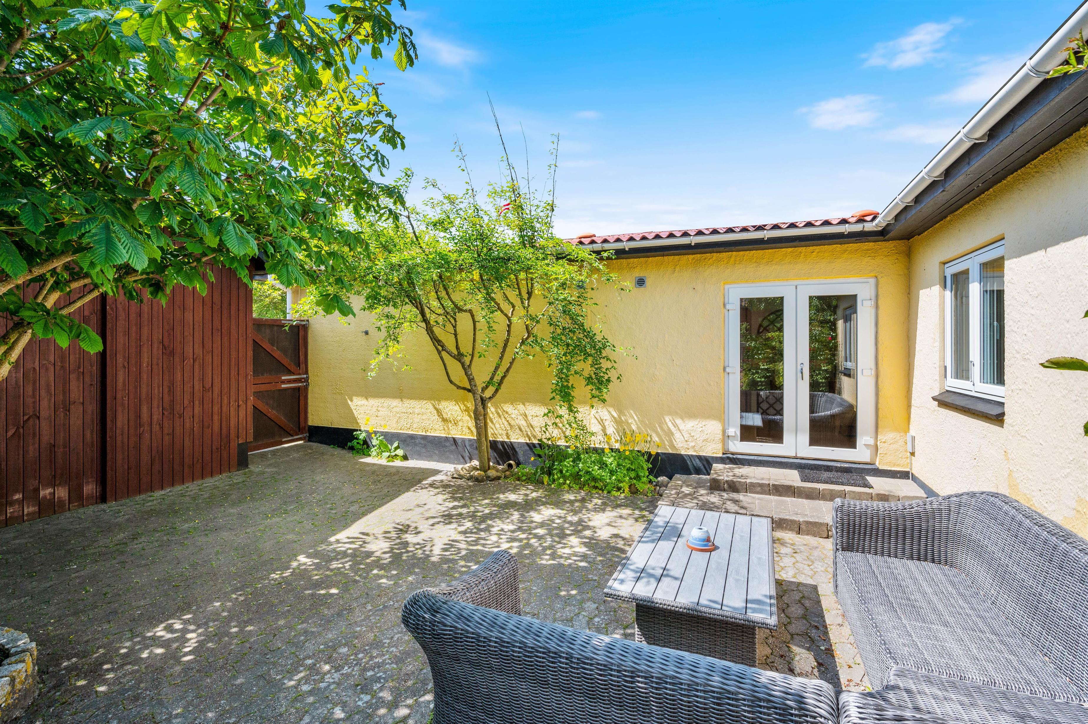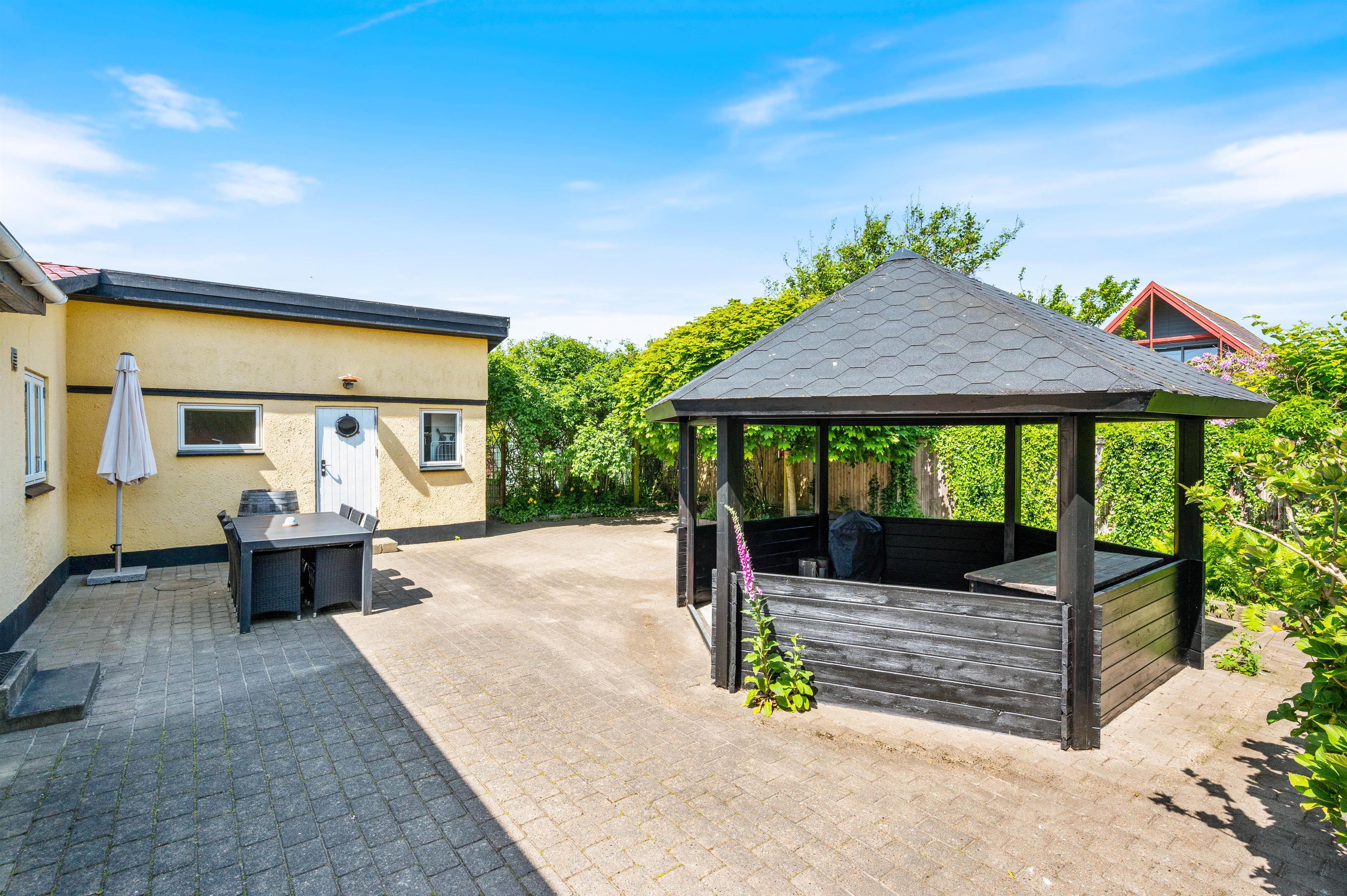 Dakotavej 14 ligger på en 600m² stor grund, der er helt indhegnet, så jeres firbenede ven eller jeres børn kan løbe frit rundt, og I skal ikke bekymre jer om, at de løber væk. Her kan de få mange timer til at gå med leg og boldspil. Den åbne terrasse har et hyggeligt opholdsområde med komfortable havemøbler og liggestole, her kan I tilbringe mange hyggelige timer sammen under åben himmel. En del af terrassen er også afskærmet, så I kan sidde i læ og nyde en kop kaffe. Efter en dejlig aktiv dag ved Vestkysten, kan I afslutte aftenen med en lækker middag lavet på husets grill. Dette er til stor glæde for både store og små.