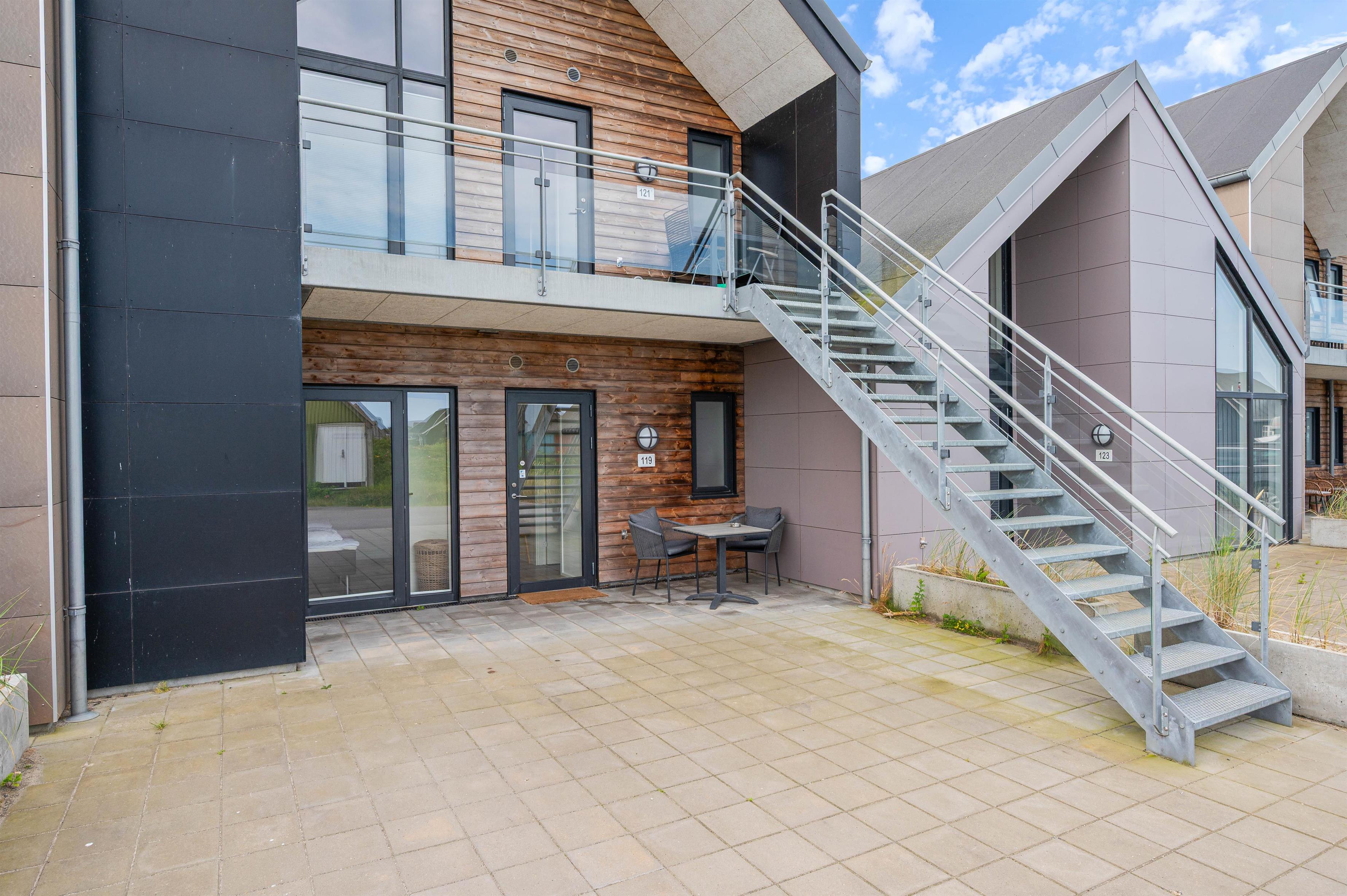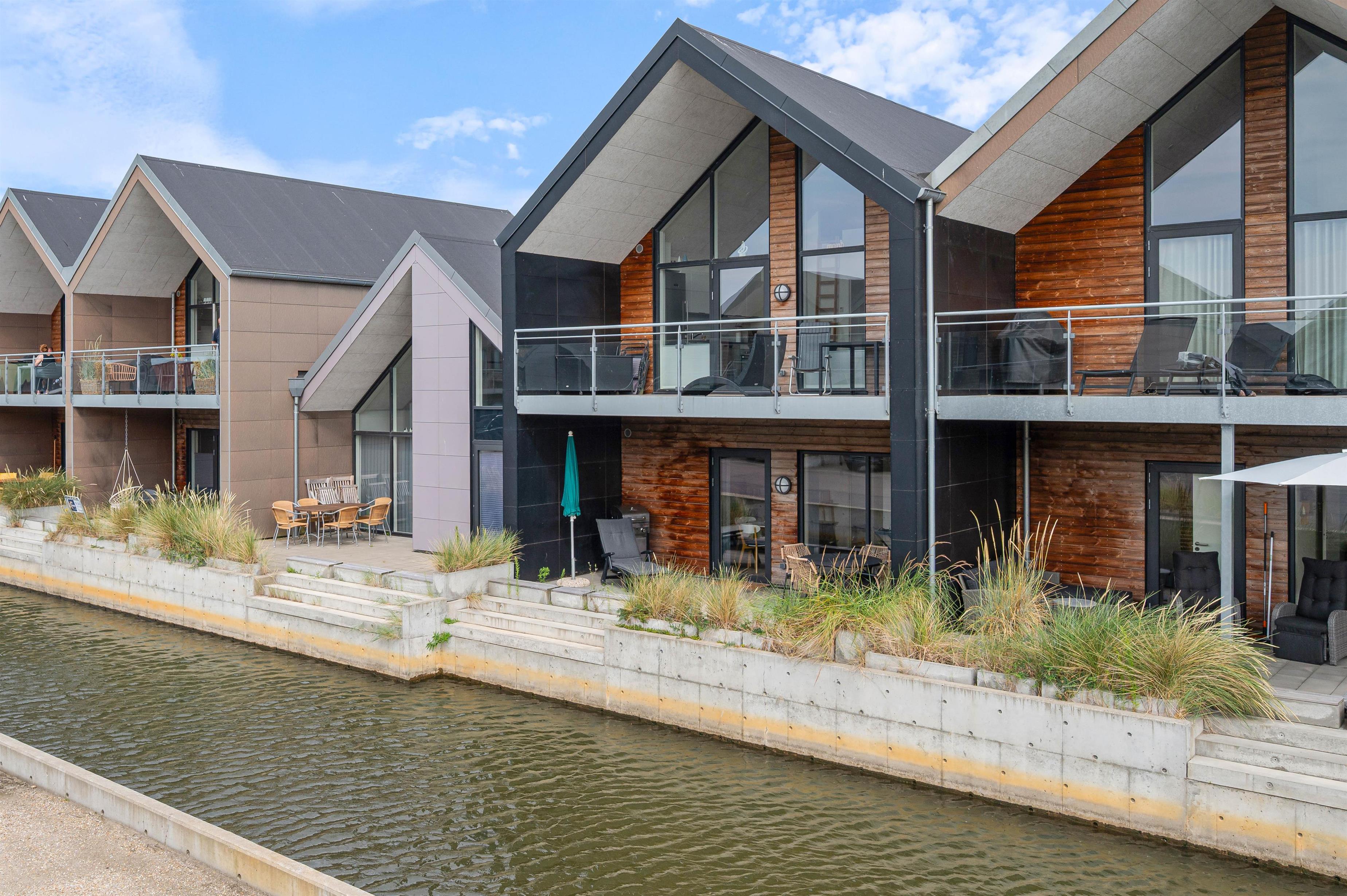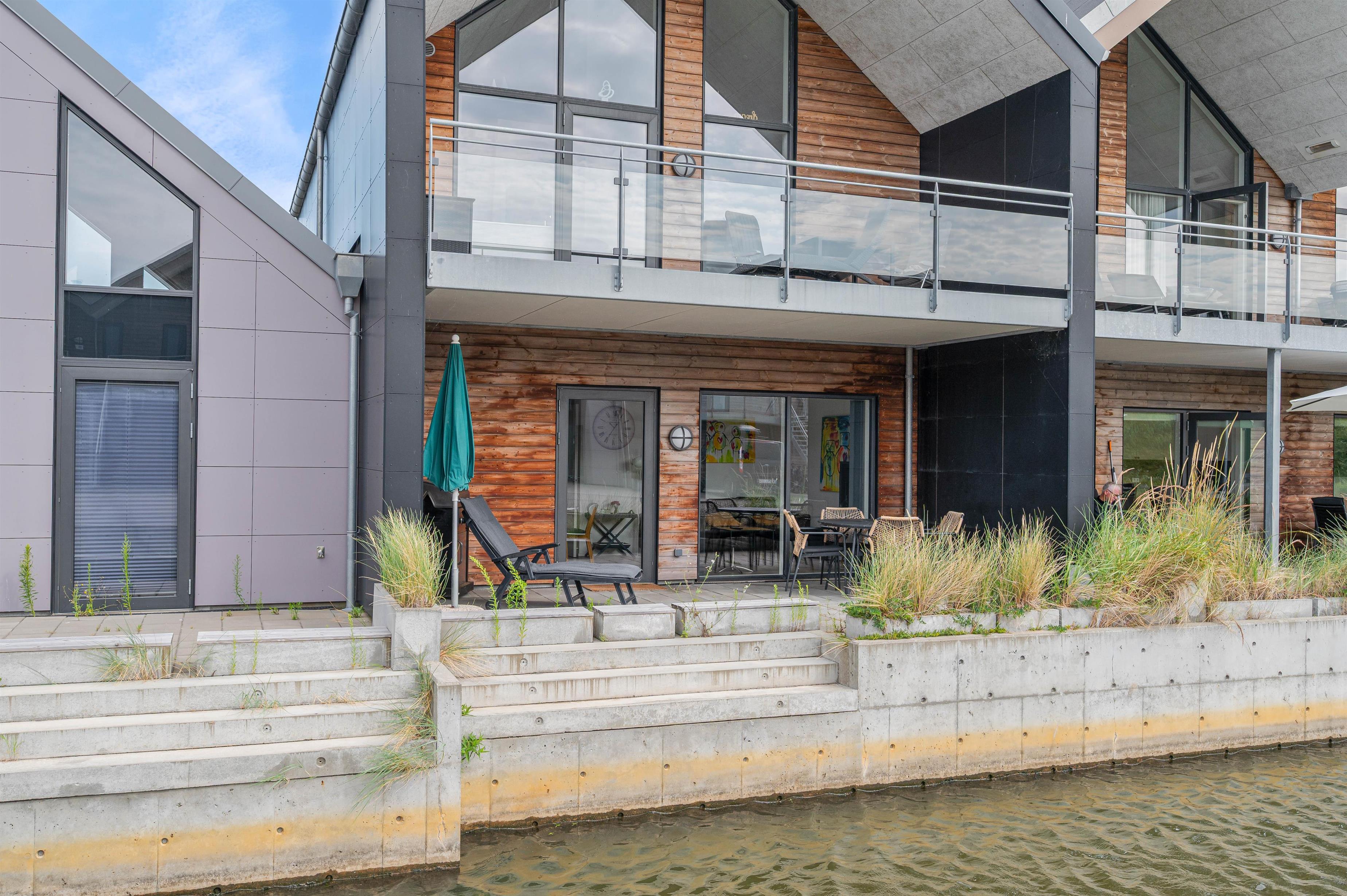 Tilhørende ferielejligheden har I en afskærmet, men åben, terrasse, der ligger lige ud til kanalen. Her kan I nyde solen i en liggestol eller spise et grillmåltid fra gasgrillen. Derudover er der tilhørende ladestik til el-bilen og redskabsrum til fri afbenyttelse.