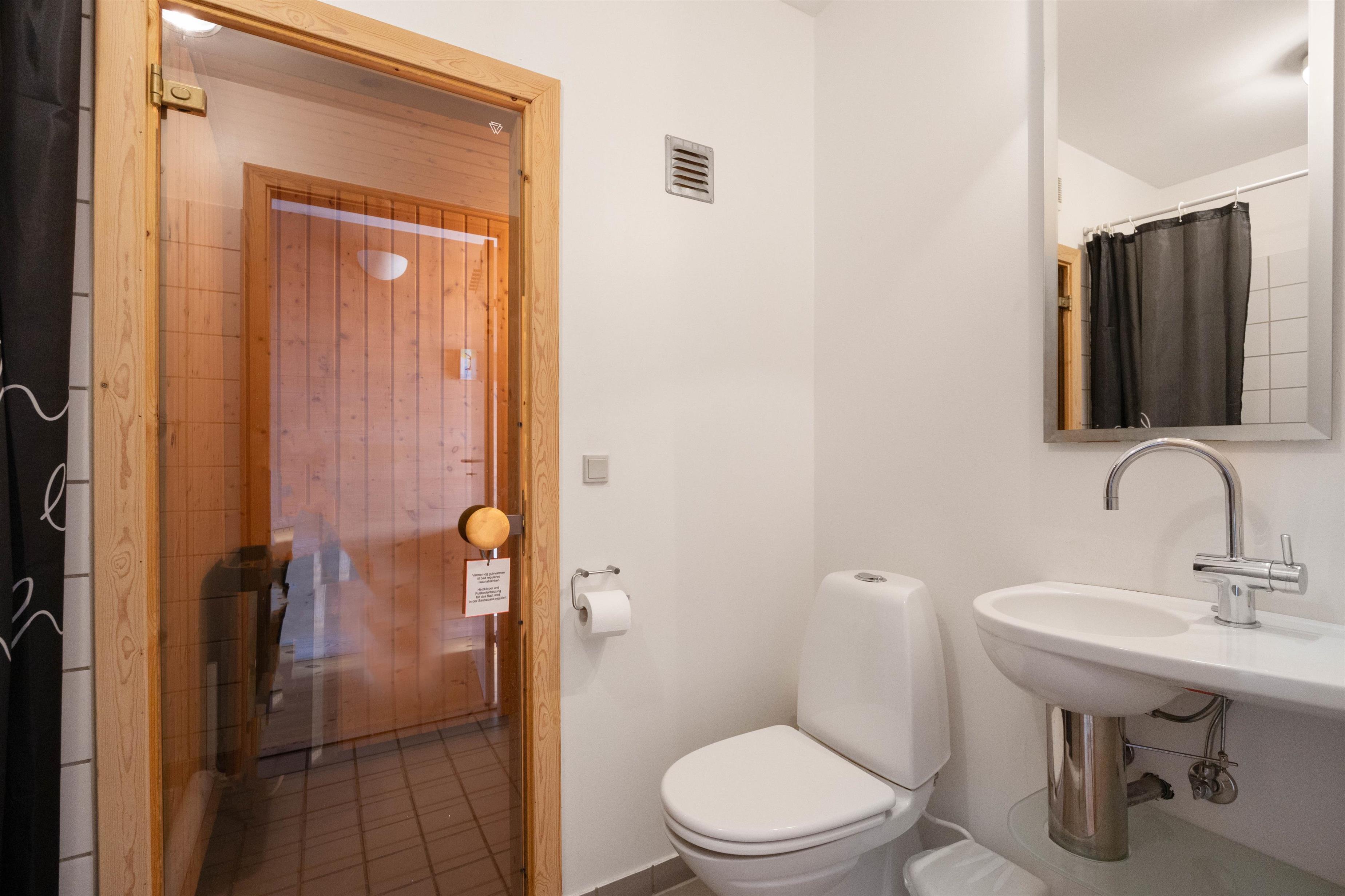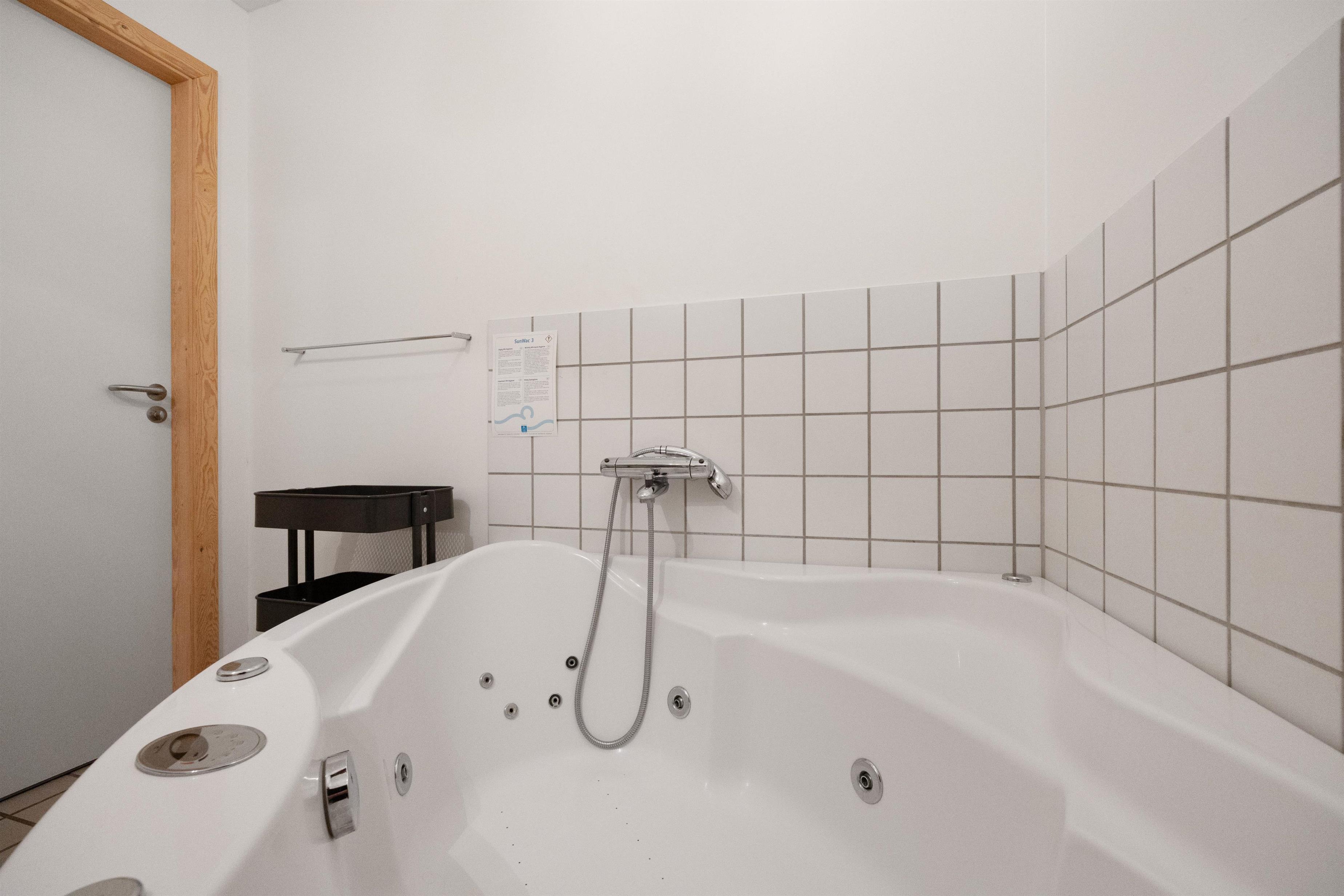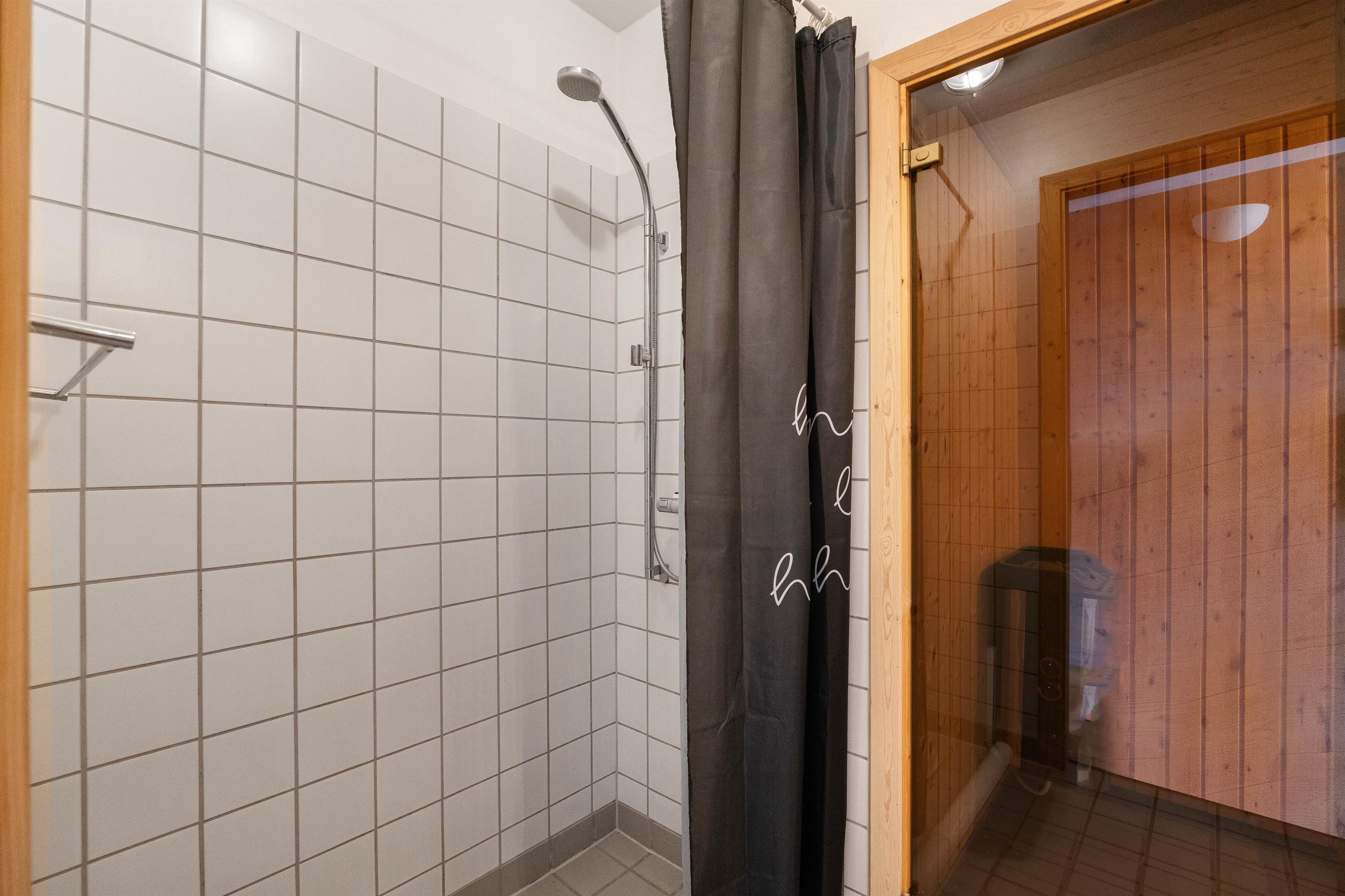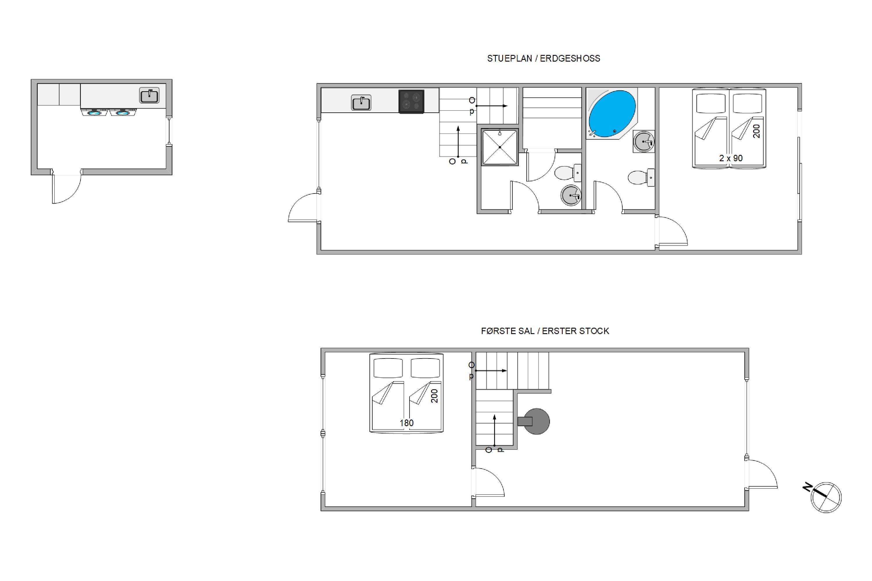 Ferielejlighedens 4 sovepladser er fordelt i to soverum på 2 etager. I det ene værelse er en dobbeltseng, og i det andet er der 2 enkeltsenge, der er slået sammen til en dobbeltseng. Hvis I ønsker at lukke af for trappen, er der gitter i ferieboligen til at sætte for trappen. Derudover er der 2 badeværelser, som har gulvvarme, så I ikke skal fryse tæerne. Her finder I også en sauna og en tømmespa, så I rigtigt kan slappe af på jeres ferie.