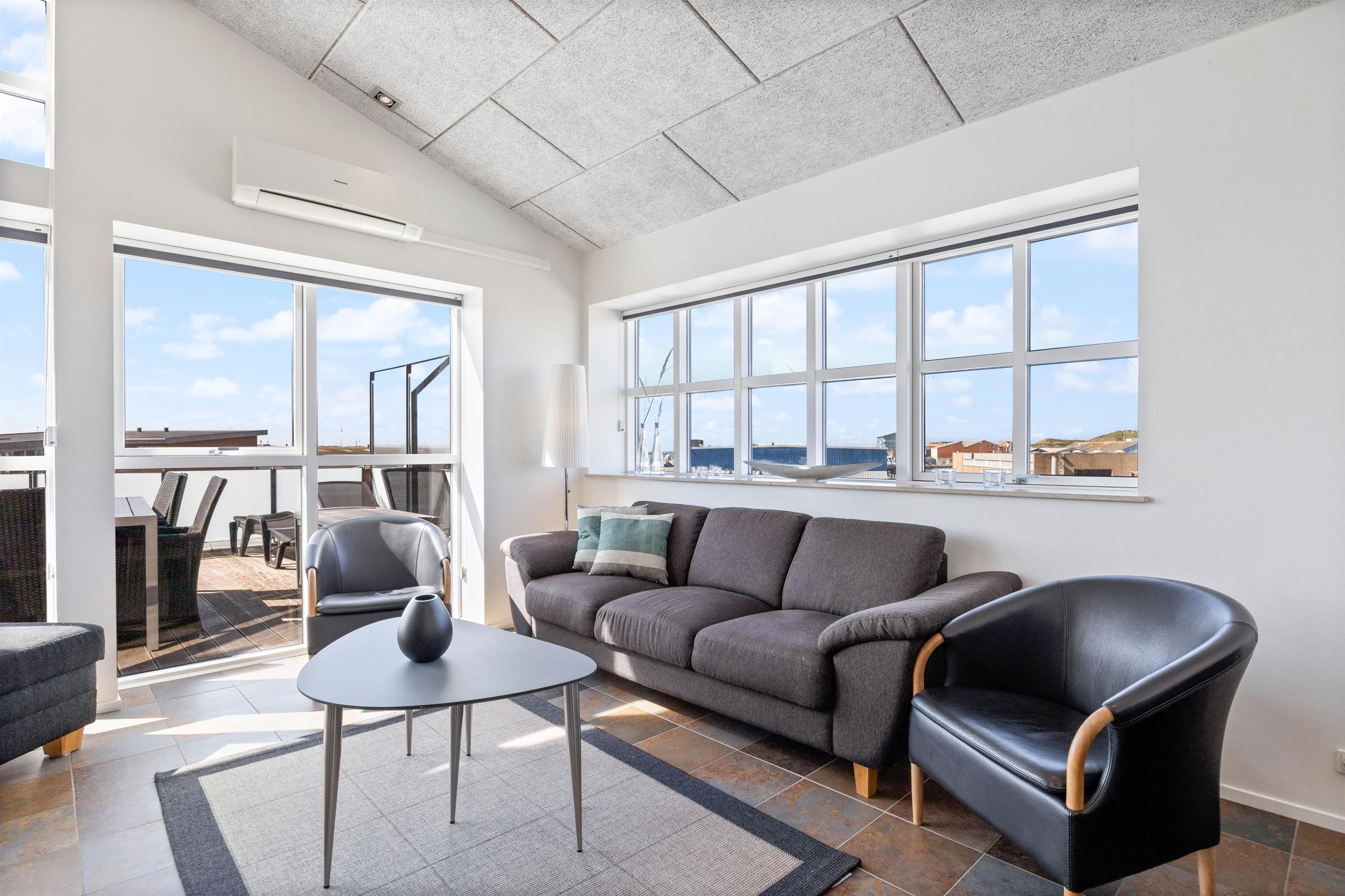 En virkelig lækker ferielejlighed beliggende centralt i Hvide Sande med en skøn udsigt til Hvide Sande Havn. Følg livet på den levende havn, eller slap af på terrassen, mens du betragter lystfiskerne, der hiver sild i land ved slusen.