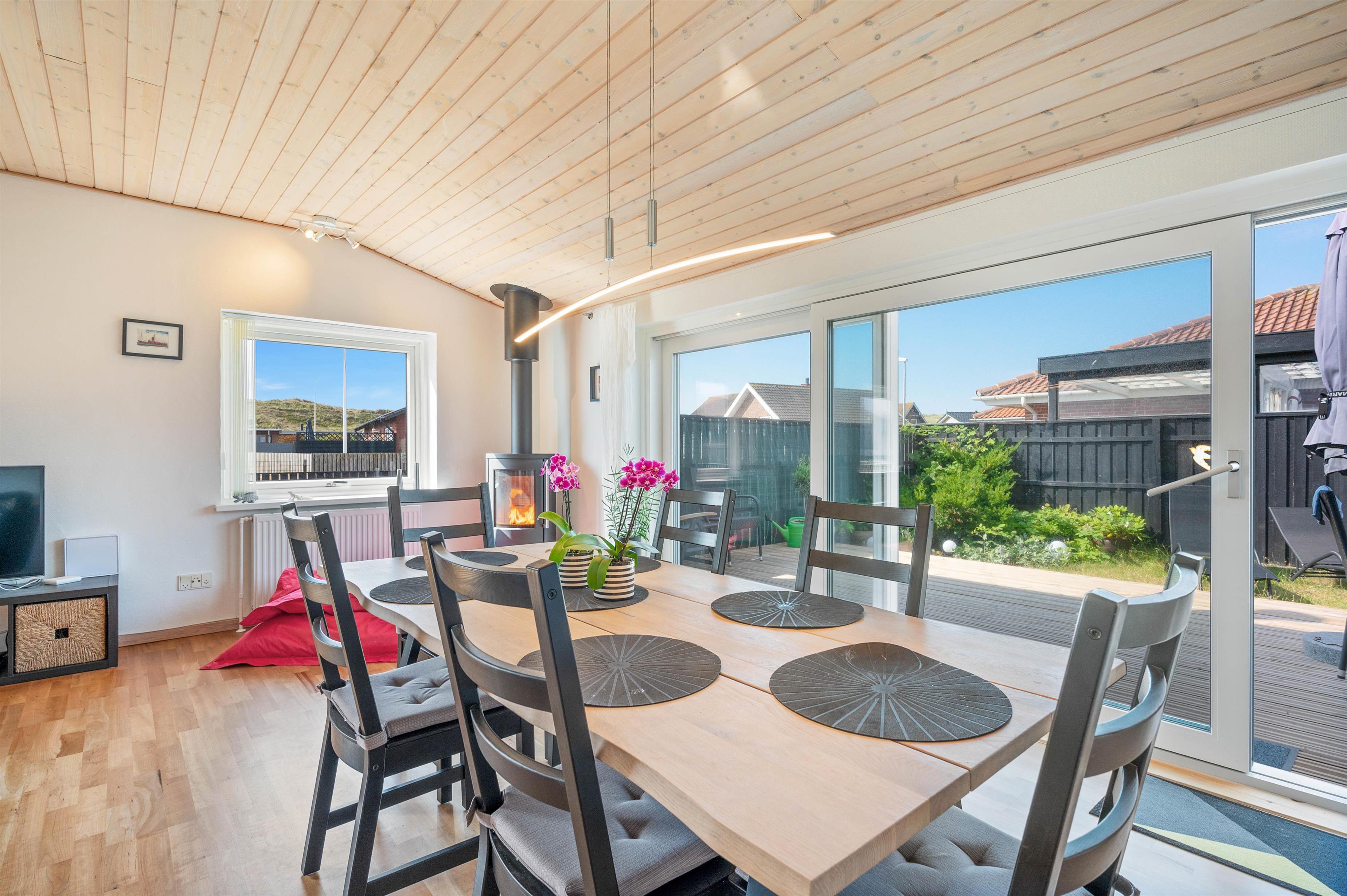 Feriehuset har en fin beliggenhed, hvor der hverken er langt til indkøb, restauranter eller Vesterhavet. Går I 250 meter mod vest ender I ved Vesterhavet og den fine sandstrand. Her er der både mulighed for skønne gåture eller leg med børnene. Derudover har I til aften mulighed for at se en smuk solnedgang til lyden af havets brusen.