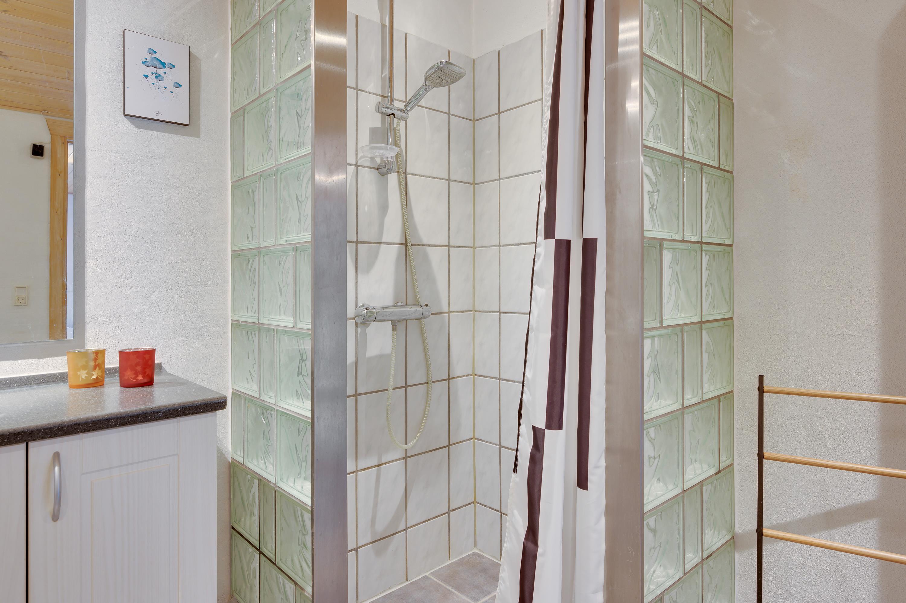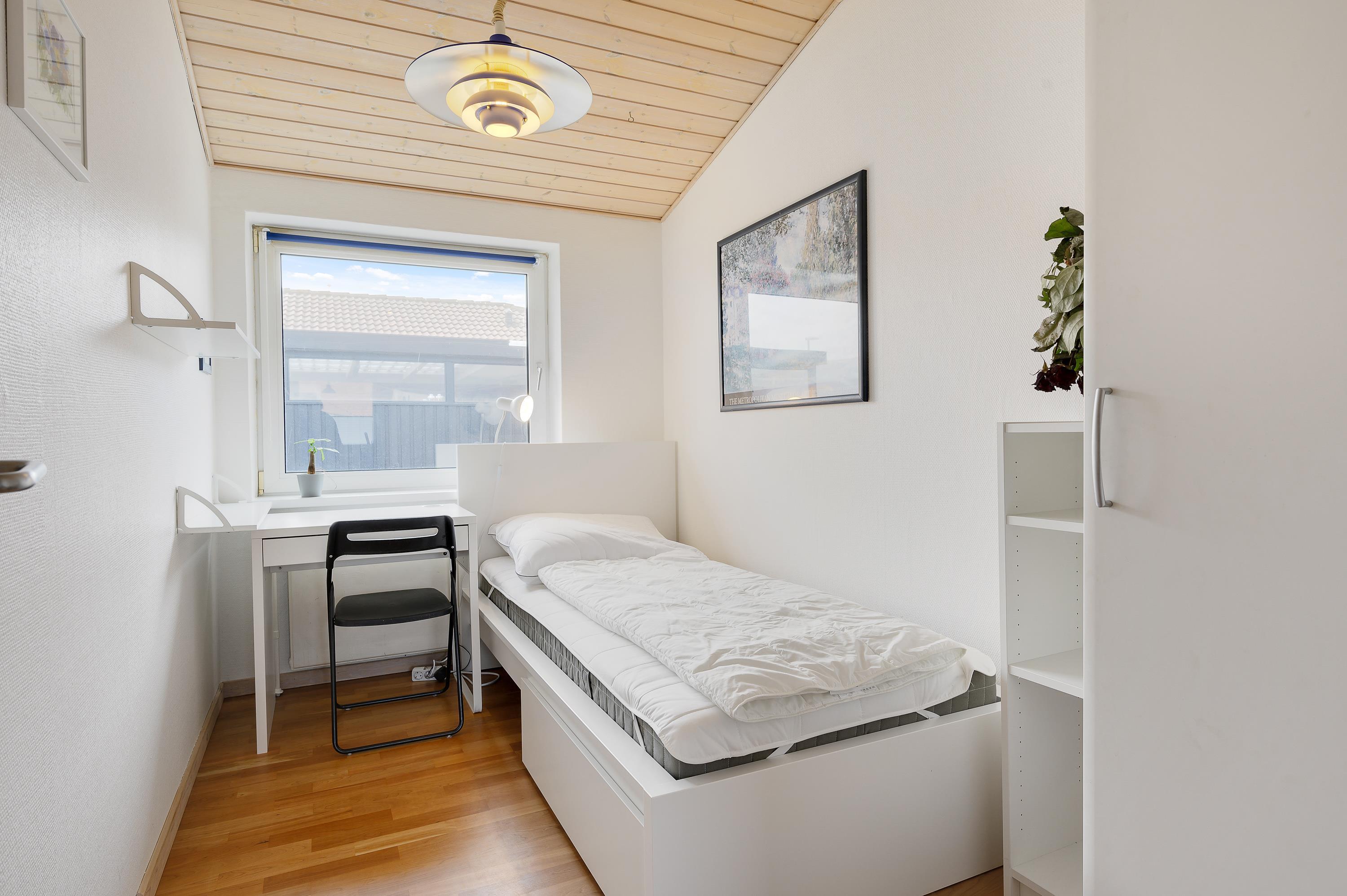 Feriehuset har i alt 5 soveværelser, hvor de 8 sovepladser fordeler sig på 2 dobbeltsenge, 2 enkeltsenge samt en sovesofa. Der er 2 badeværelser i sommerhuset – begge med gulvvarme. Desuden er der mulighed for at få vasket tøj under ferien, da der både er vaskemaskine og tørretumbler i sommerhuset.