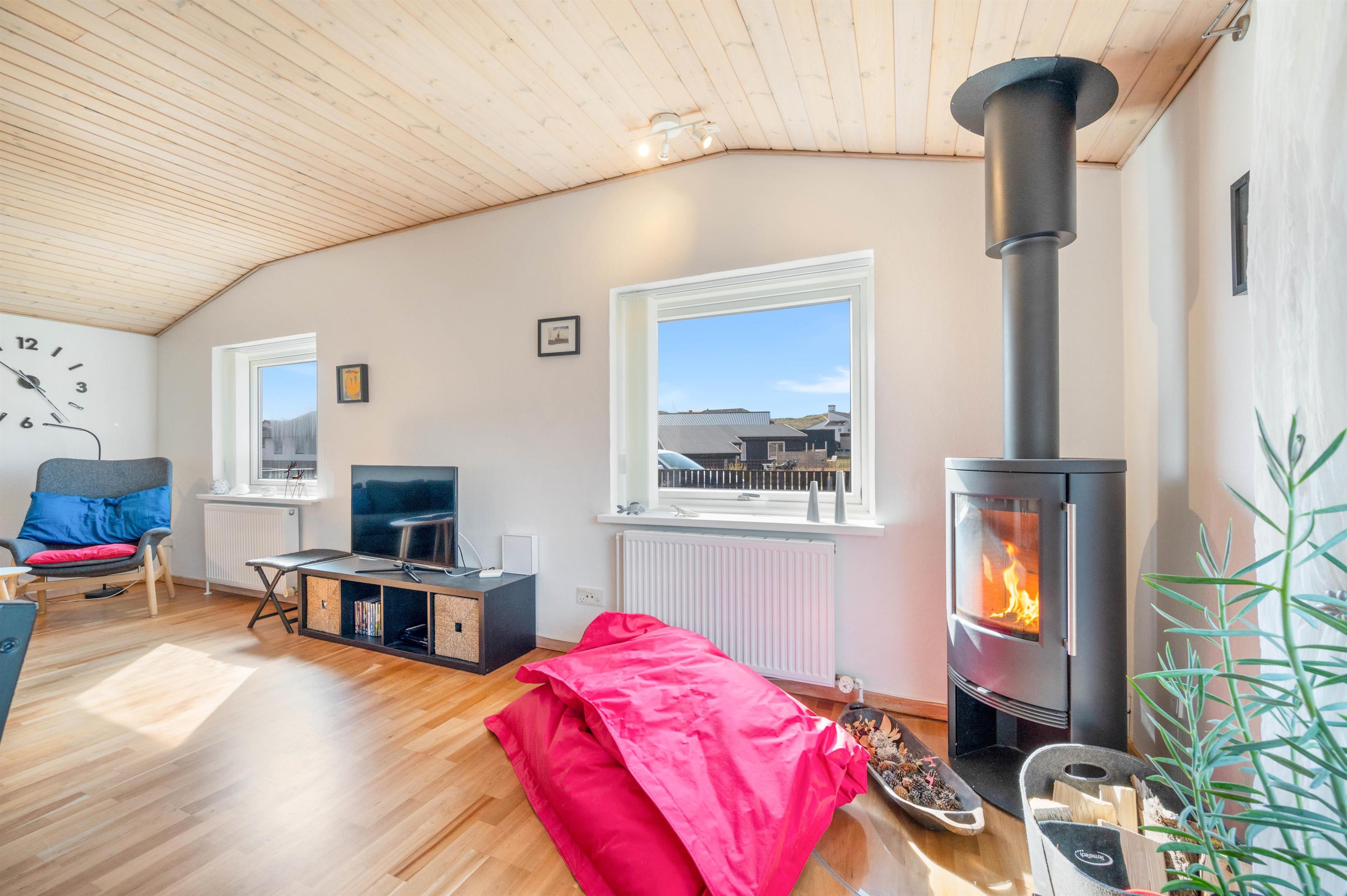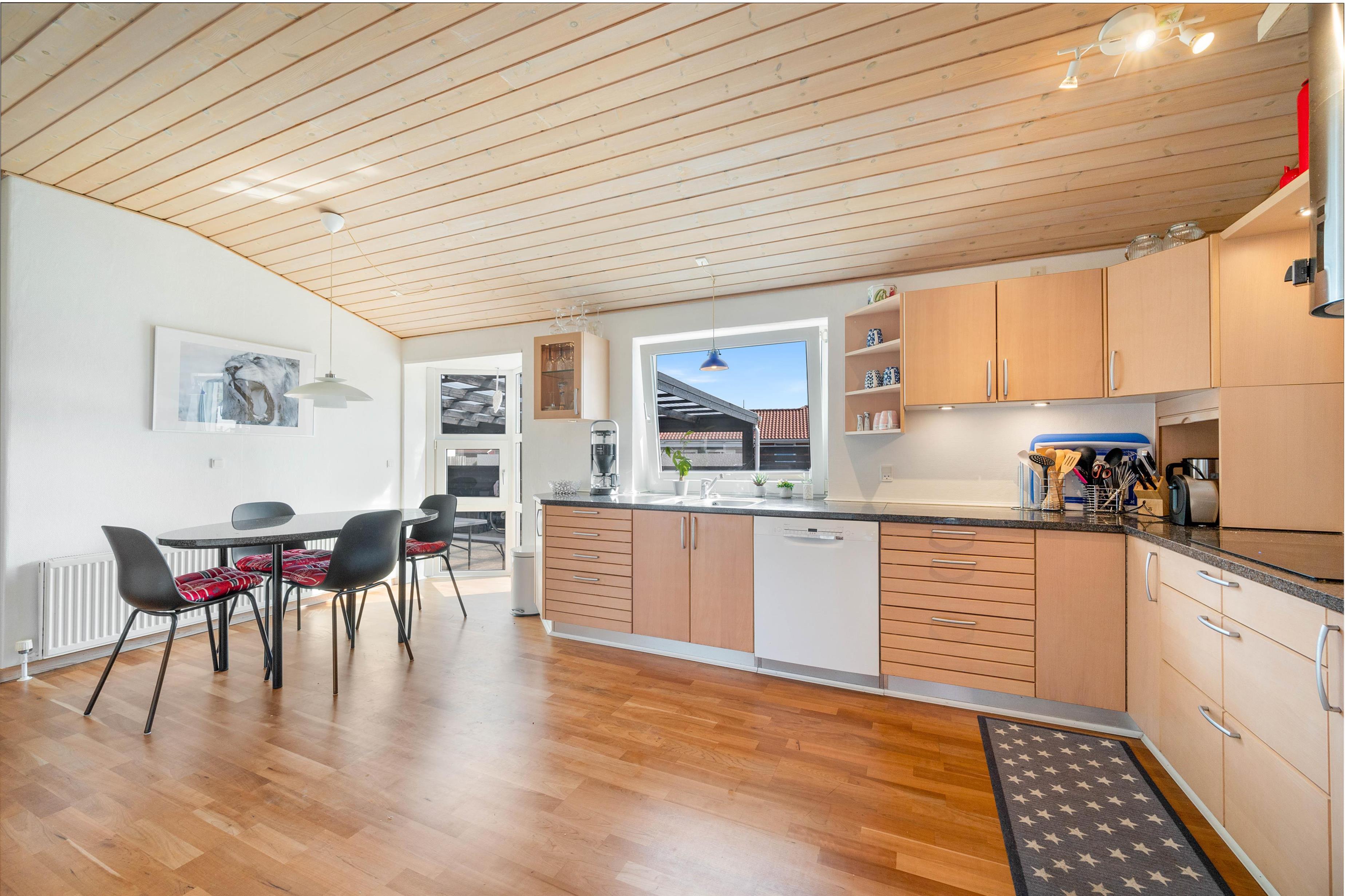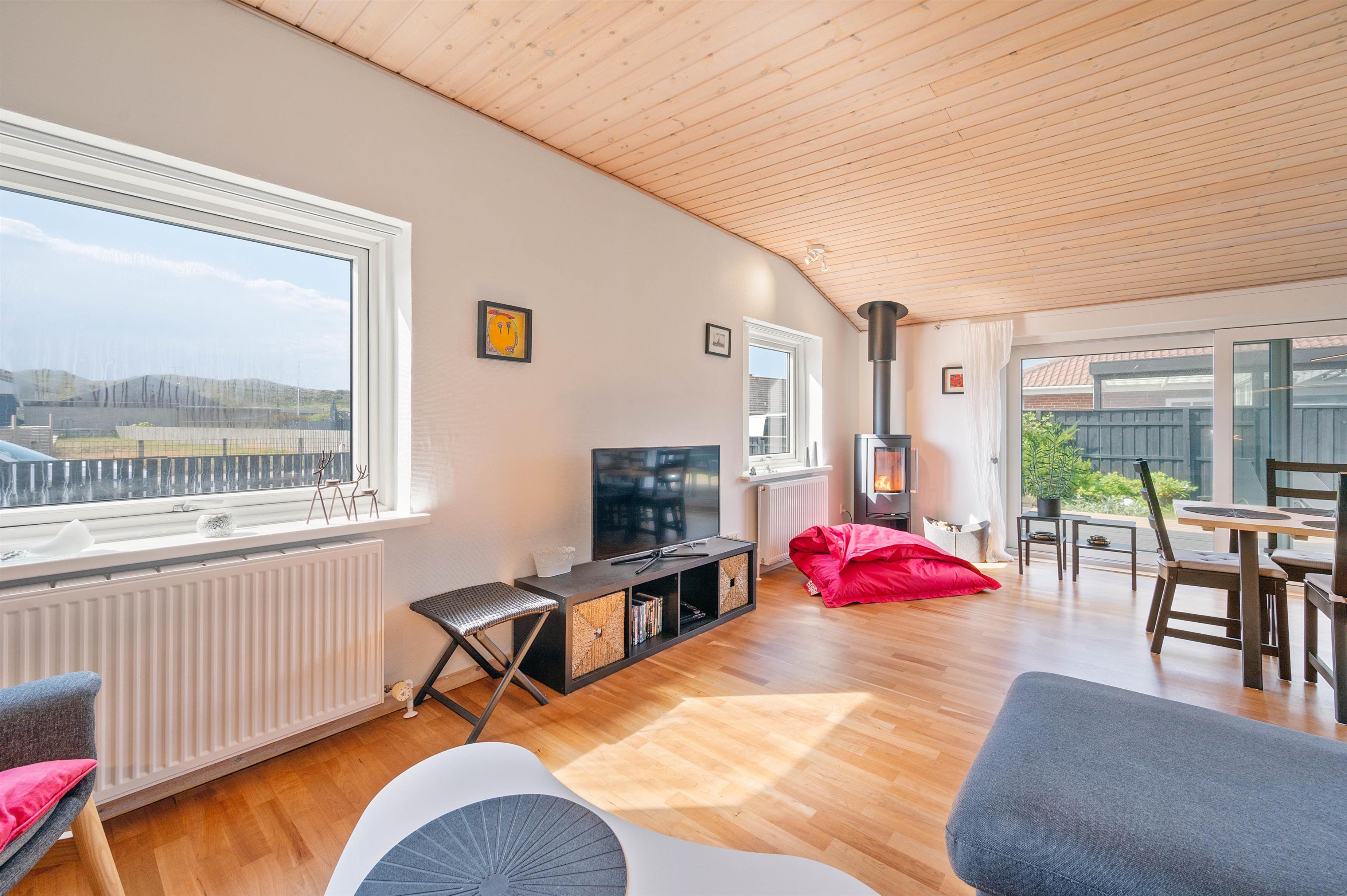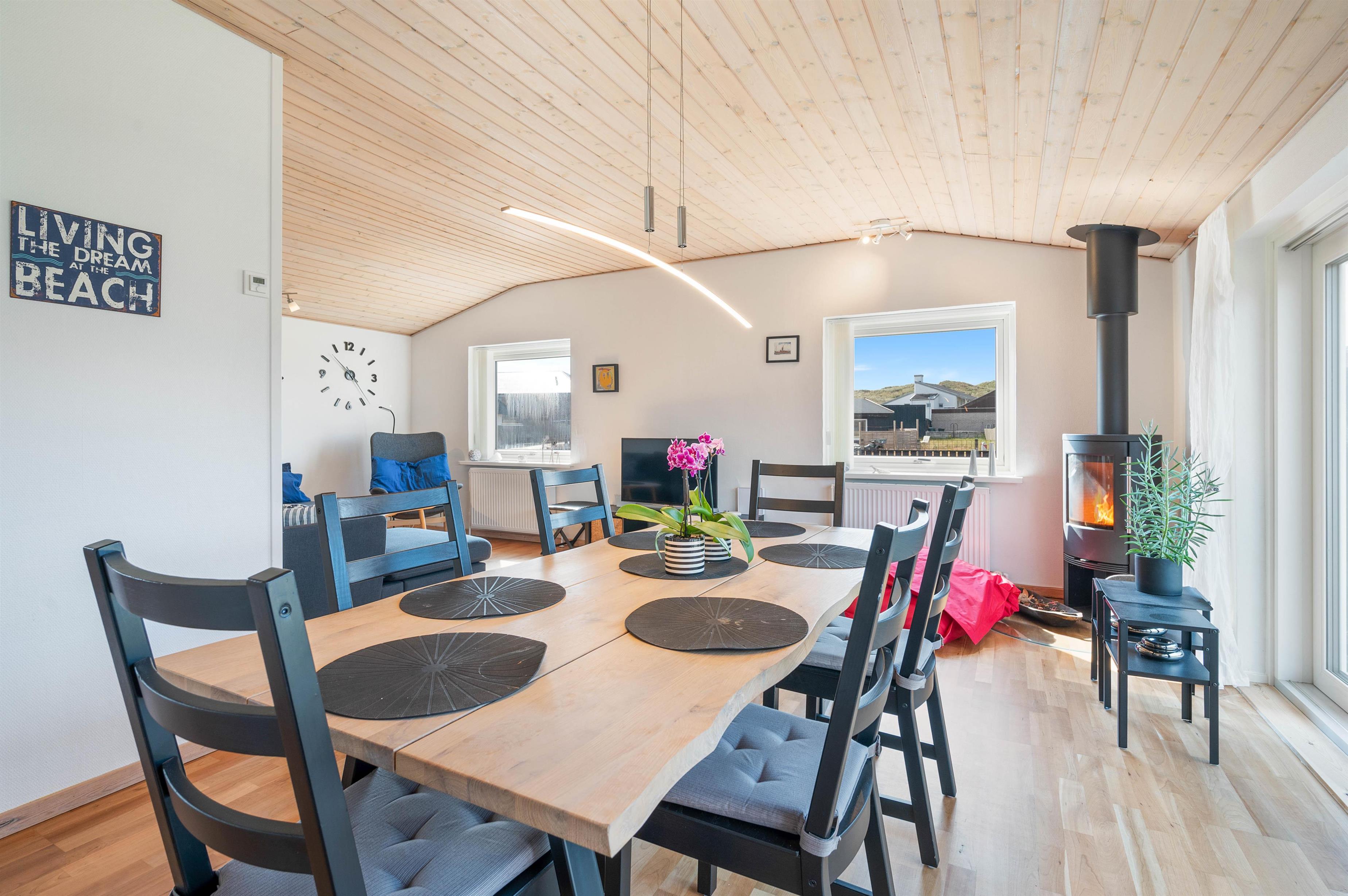 På Stormgade 55 i Hvide Sande ligger dette fine 8-personers feriehus på 155 m2, som er blevet renoveret i 2020. I sommerhuset finder du et veludstyret køkken med god plads til madlavningen efter en oplevelsesrig dag i Hvide Sande. I opholdsstuen er der lagt op til hygge på sofaen eller spil ved spisebordet, imens I får varmen fra brændeovnen. Fra opholdsstuen er der også udgang til den lukkede terrasse, hvor man kan nyde et lækkert grillmåltid eller spille kort i ly for vinden.