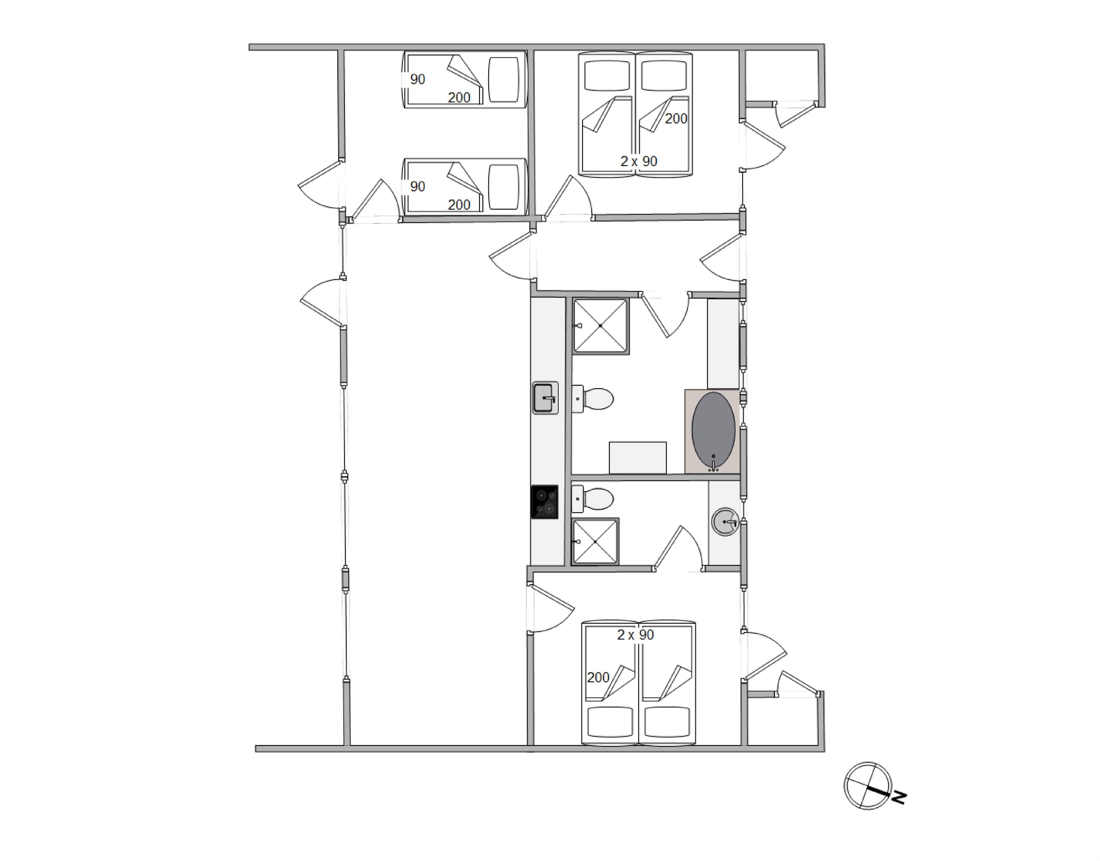 Lejligheden er flot og smagfuldt indrettet i skandinavisk stil. Her er plads til 6 personer og familiens hund, - fordelt på 3 lyse soverum, heraf 2 med hver en dobbeltseng og et værelse er med 2 enkeltsenge.
