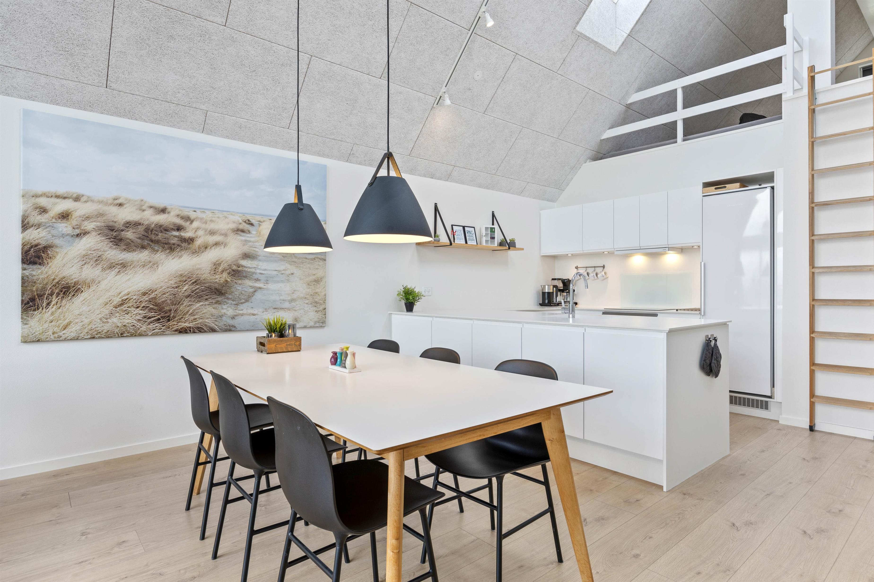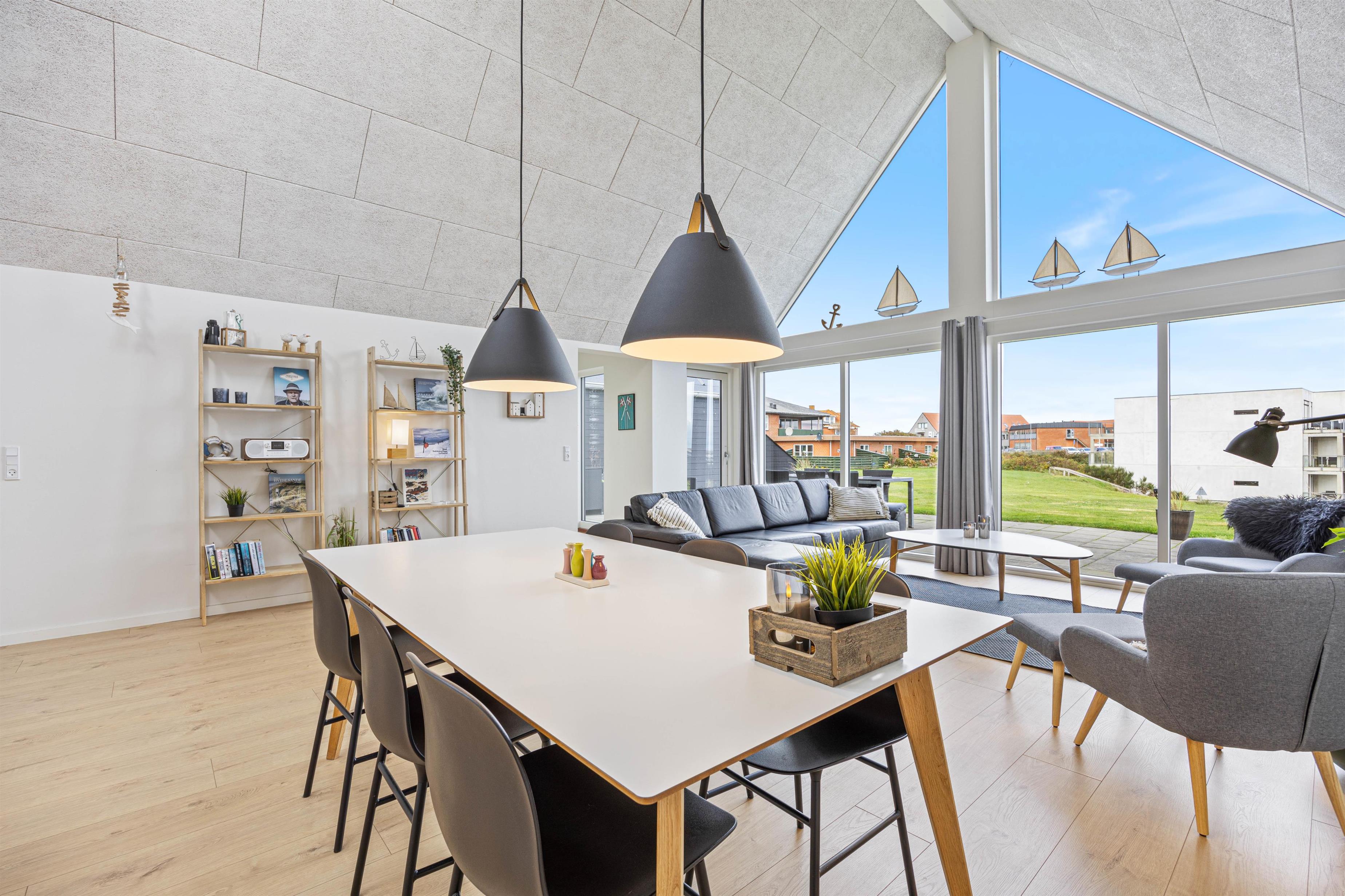 Midt i Hvide Sande på Kirkevej 3C finder I dette lækre og topmoderne byhus, færdigbygget i 2020. Herfra er der udsigt over den oprindelige havn og slusen. Med sine 120 kvadratmeter er der rigtig god plads til 5 personer og måske familiens firbenede ven. Feriehuset er flot og lyst indrettet med loft til kip og store vinduespartier mod nord, som giver et fantastisk lys.