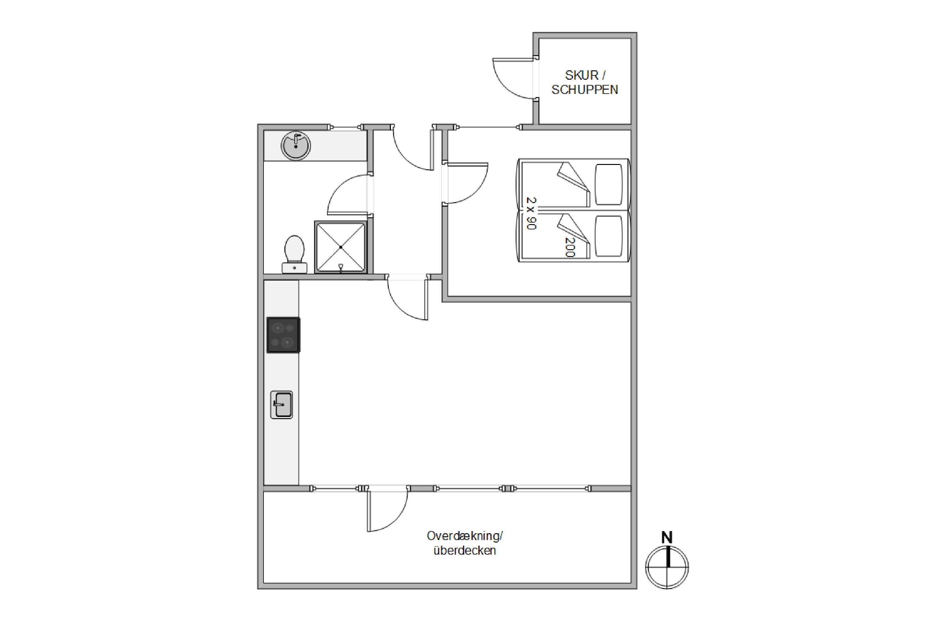 I ferielejligheden, som er på 50 kvm, er der et lækkert badeværelse med gulvvarme, put de våde håndklæder fra dagens strandtur i vaskemaskinen, så er der rene håndklæder til næste dag. Soveværelset har 180 cm brede dobbeltsenge. Derudover er der et stort opholdsrum kombineret med køkkenet. Her er der rig mulighed for at tilberede aftensmaden i fællesskab og nyde et dejligt glas vin, mens maden simrer på induktionskogepladen.