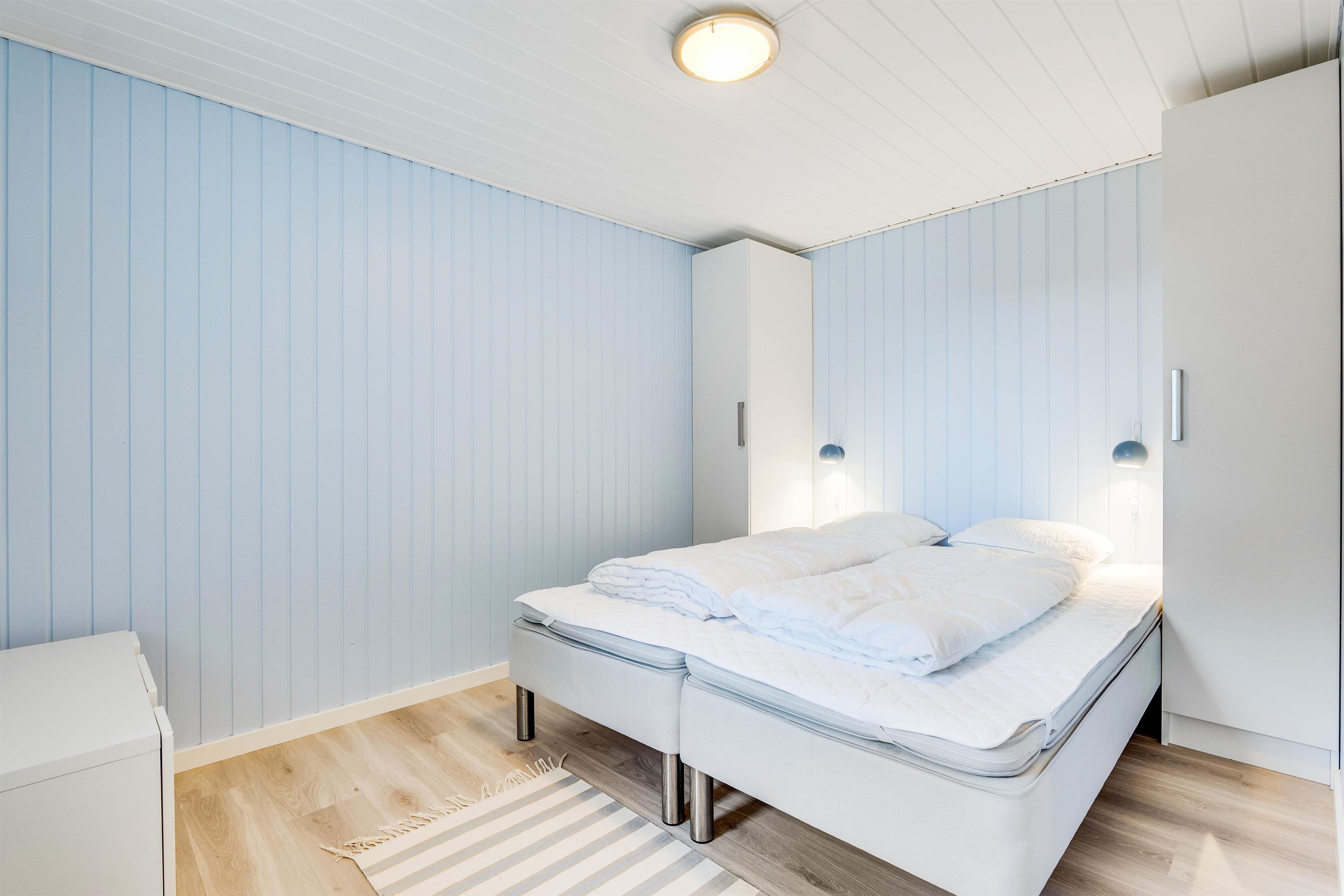 Dette charmerende og hyggelige sommerhus har plads til 6 personer i 3 soveværelser. Her er 3 soveværelser med komfortable dobbeltsenge. Fint badeværelse med bruseniche og gulvvarme, vaskemaskine og tumbler.