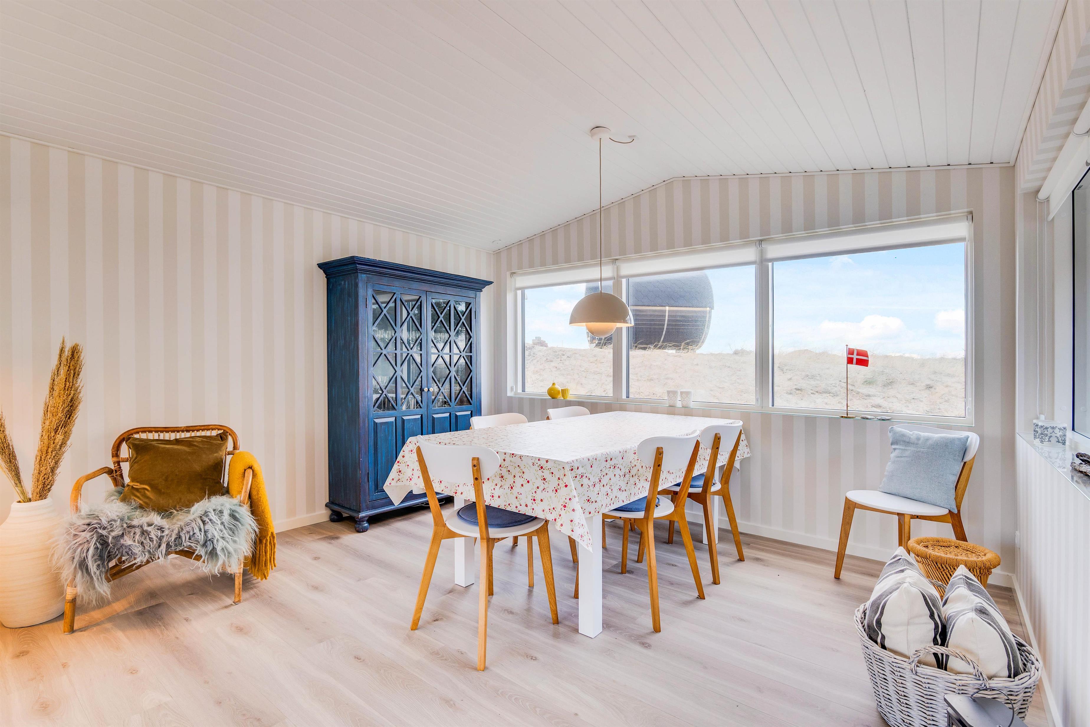 Kunne du godt tænke dig at være i gå-afstand fra både hav og by, så skulle du måske leje dette hyggelige sommerhus. Feriehuset ligger ved indgangen til den hyggelige fiskerby Hvide Sande. Her er gode indkøbsmuligheder, mange små specialbutikker, hyggeligt havnemiljø og gode restauranter. Køb din friske fisk ved kajen eller i en af de velassorterede fiskeforretninger i byen. Fra sommerhuset er der kun et par minutters gang til Ringkøbing Fjord og til Vesterhavet.