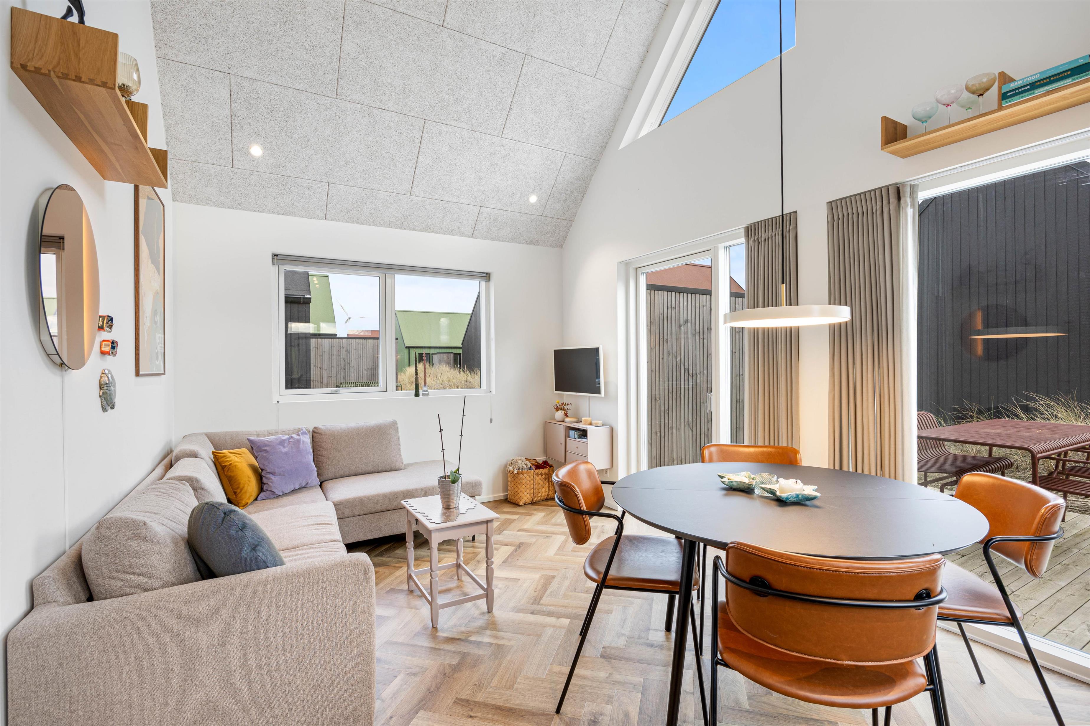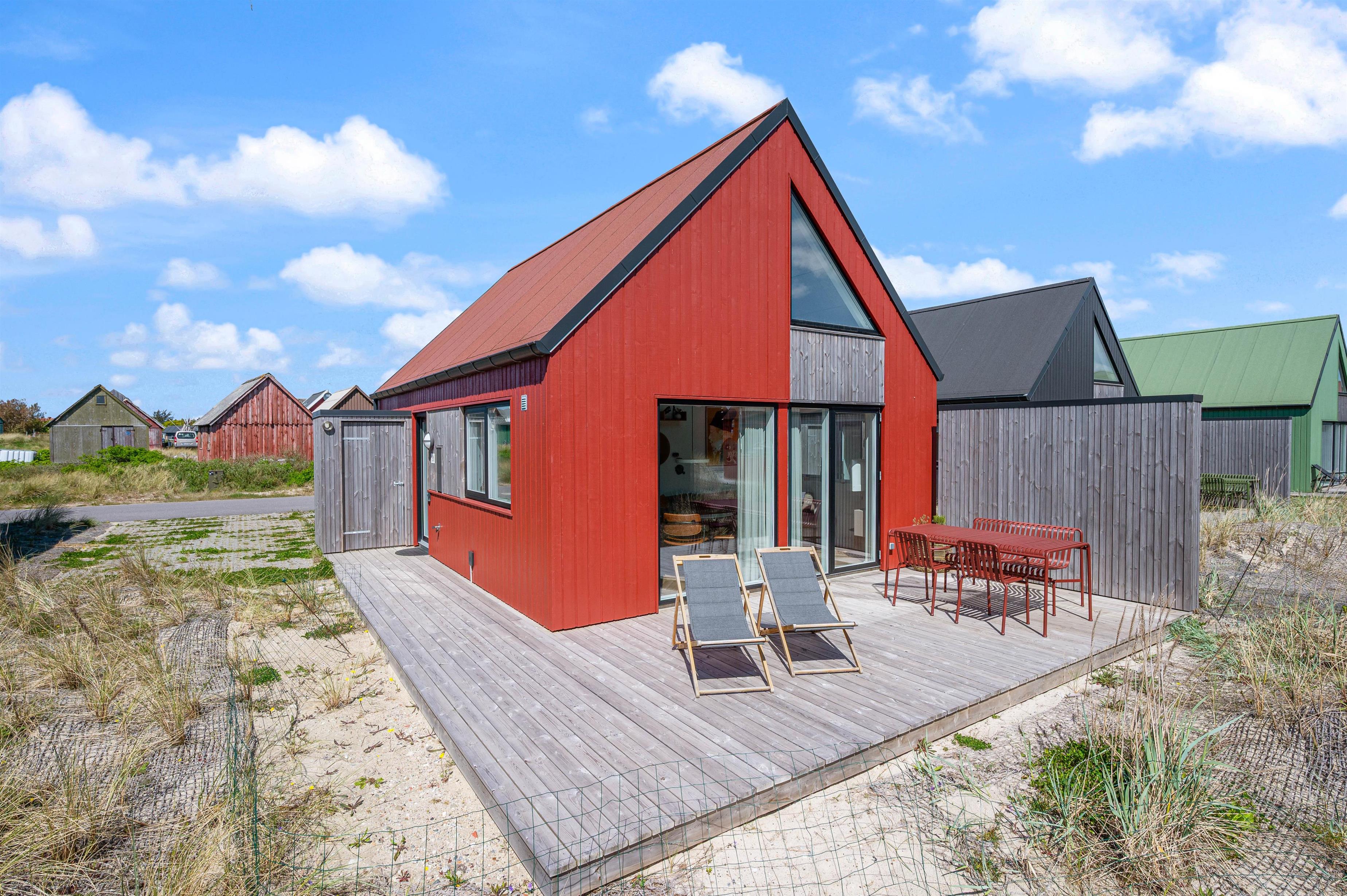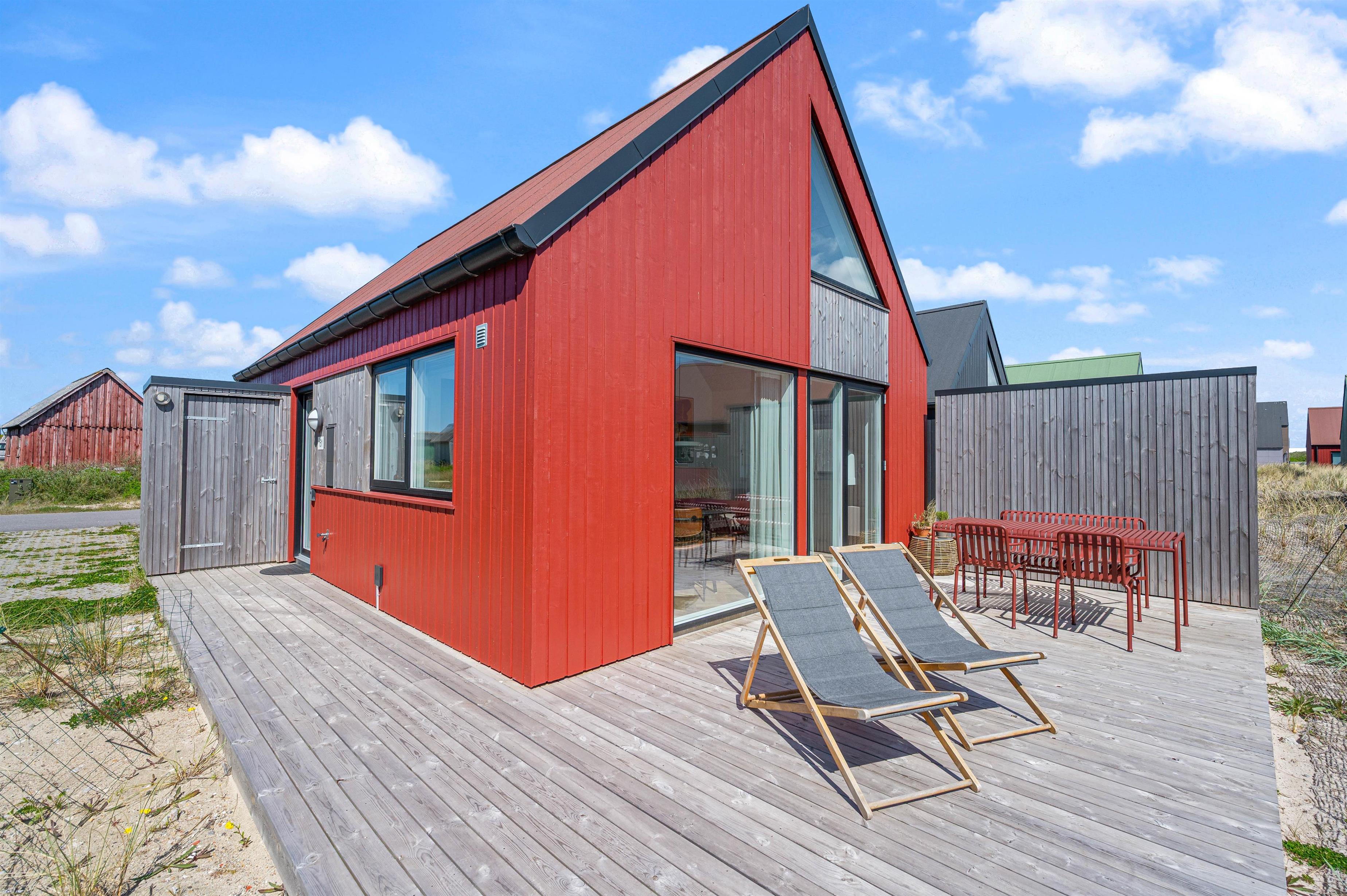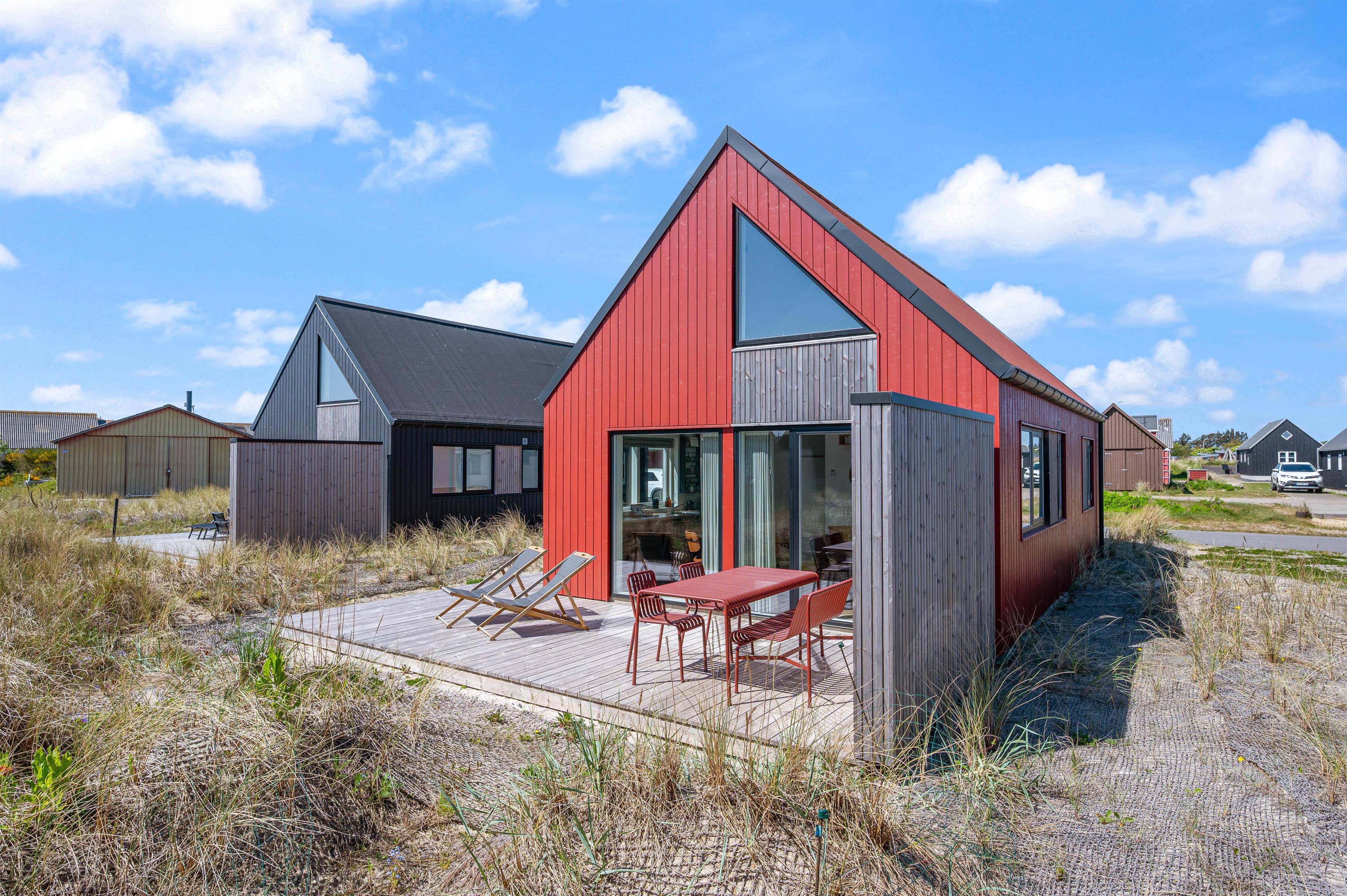 Feriehuset har en skøn, åben terrasse, hvor I kan nyde den friske luft og solens stråler. Her står havemøbler klar, så I kan dække op til hyggelige udendørs middage eller nyde et glas vin i aftensolen.