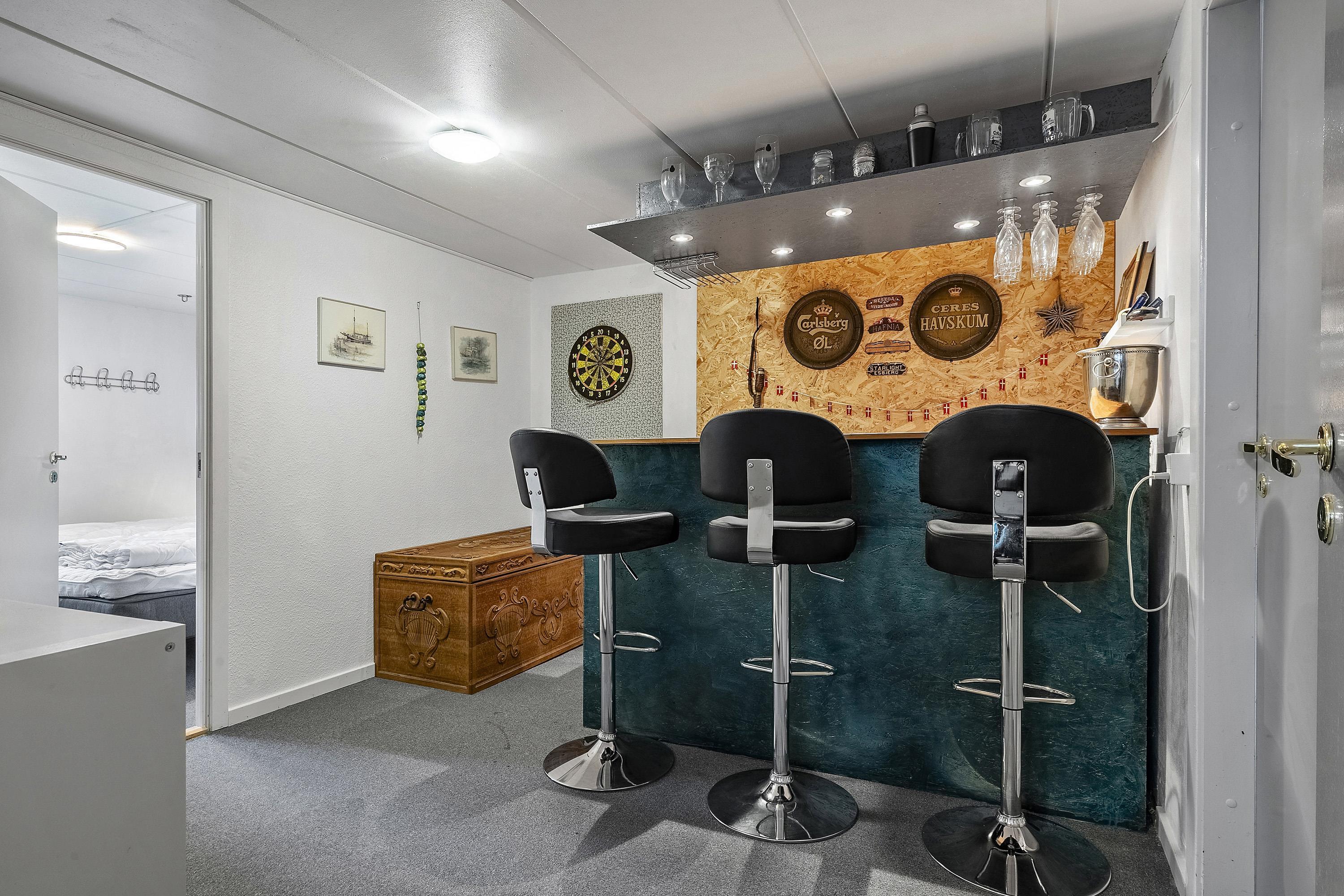 I den åbne stue kan I samles omkring brændeovnen, der spreder varme og hygge på kølige aftener eller læne jer tilbage i sofaen og sætte en god film på tv'et. Lige nedenfor stuen finder I spisepladsen og køkkenet, hvor opvaskemaskinen sørger for, at oprydningen klares hurtigt.