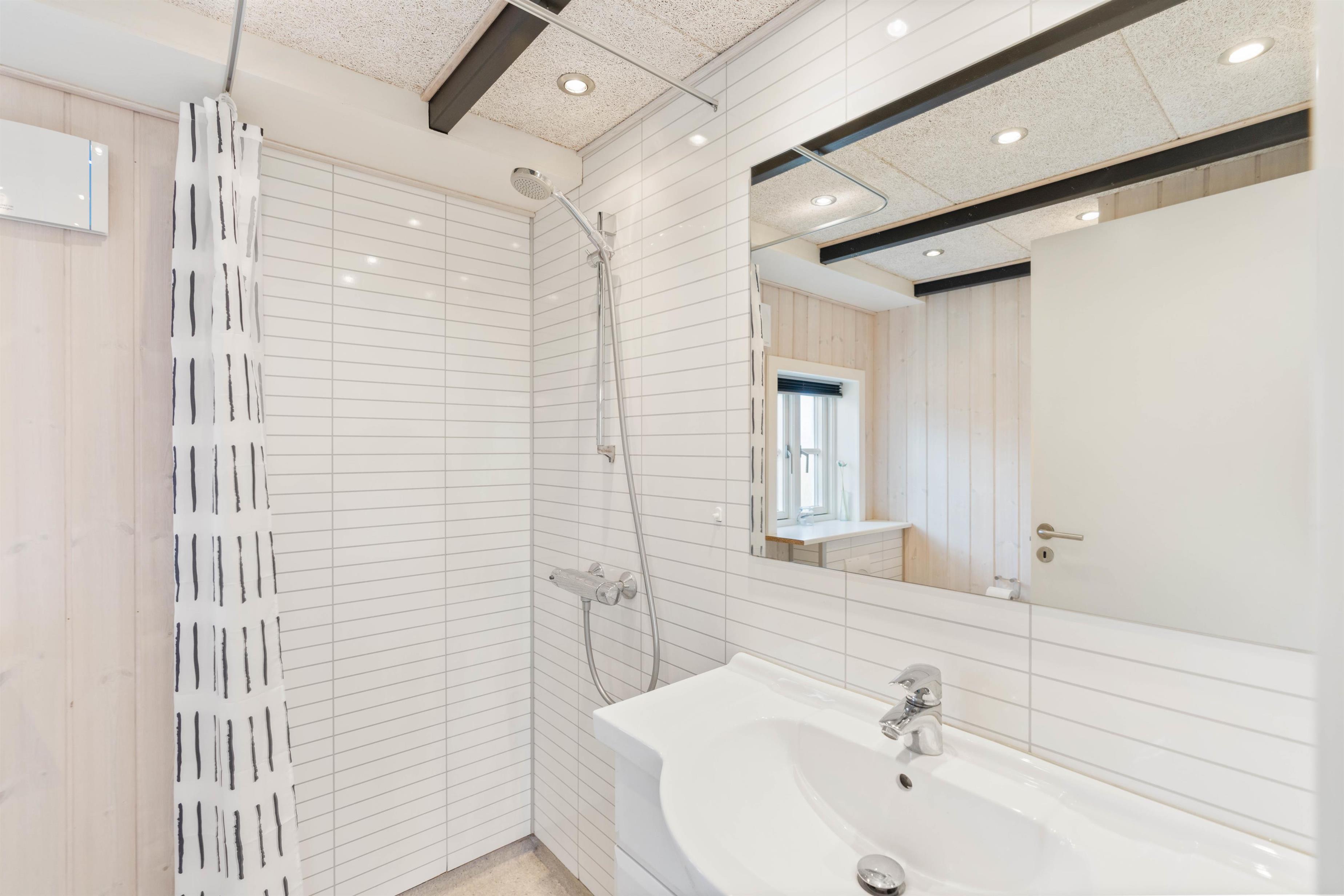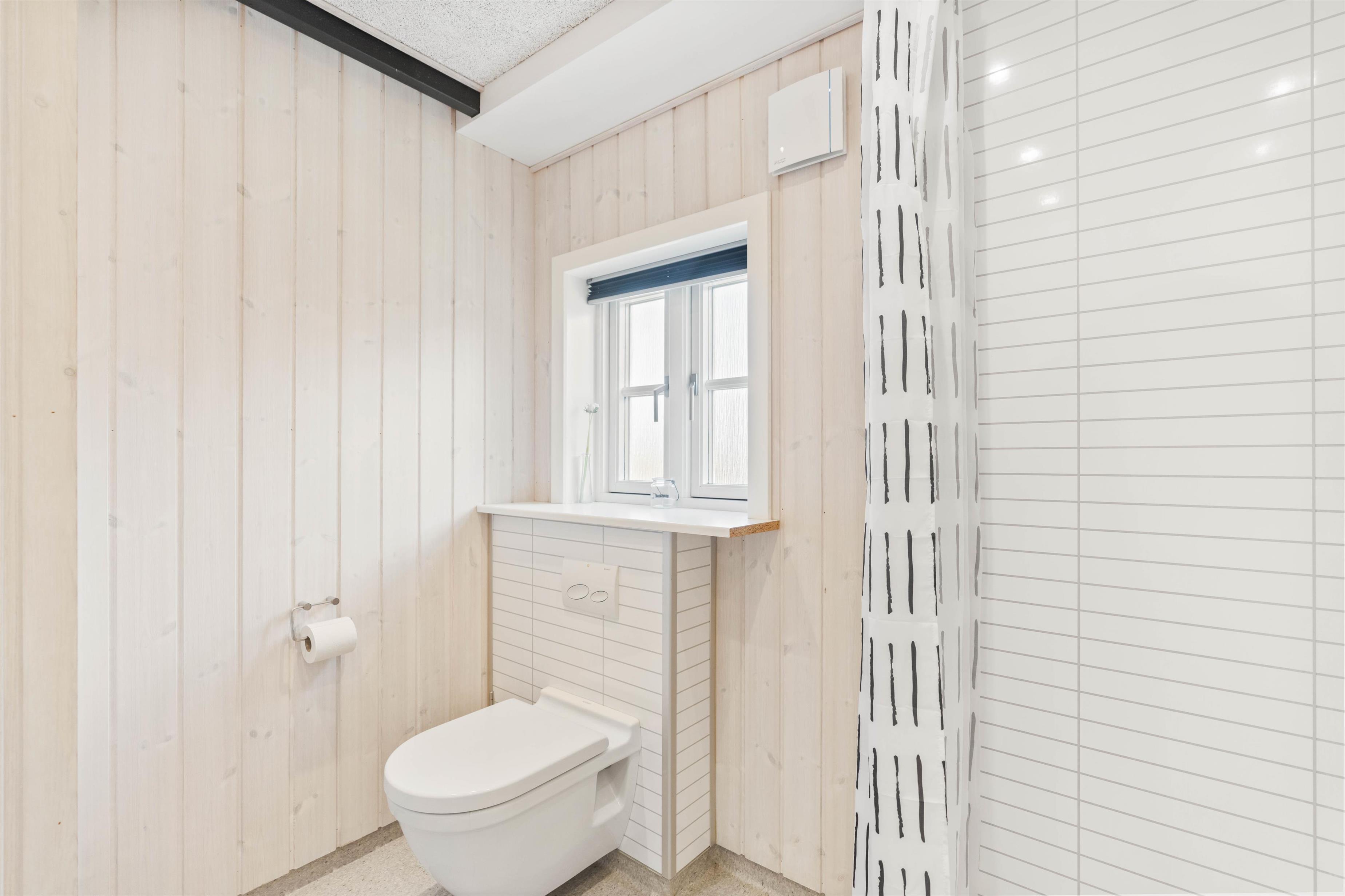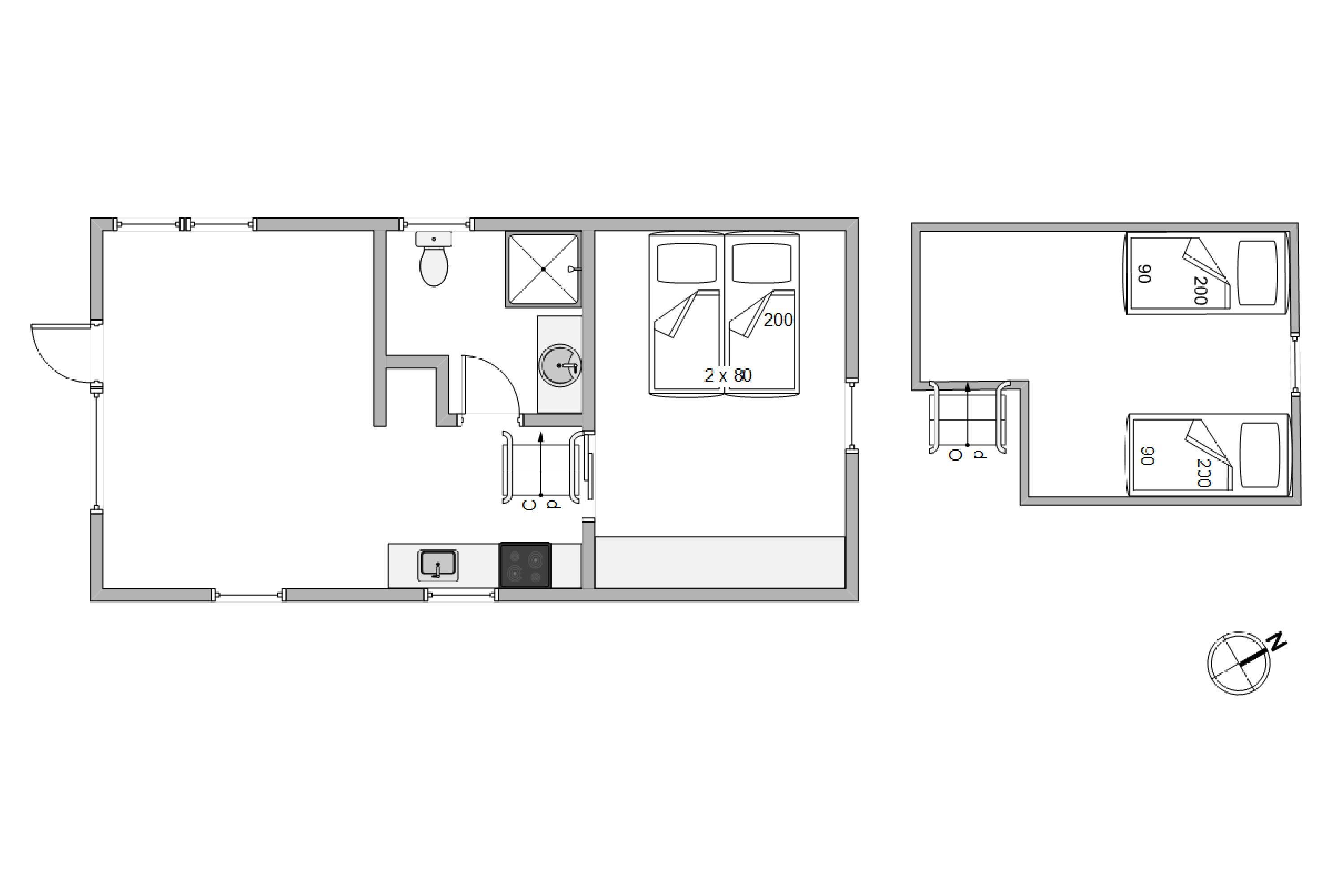 Den hyggelige og moderne hytte er indrettet med et godt soveværelse med dobbeltseng samt 2 sovepladser på hemsen. Hytten har også et pænt og funktionelt badeværelse med bruser. Praktisk indrettet køkken med opvaskemaskine i åben forbindelse med stuen. Stuen er indrettet med gode møbler og fladskærm. Fra køkkenalrummet er der udgang til den hyggeliste lille terrasse, hvor I kan nyde solen og eventuelt de friskfangede fisk, efter de har været en tur på grillen.