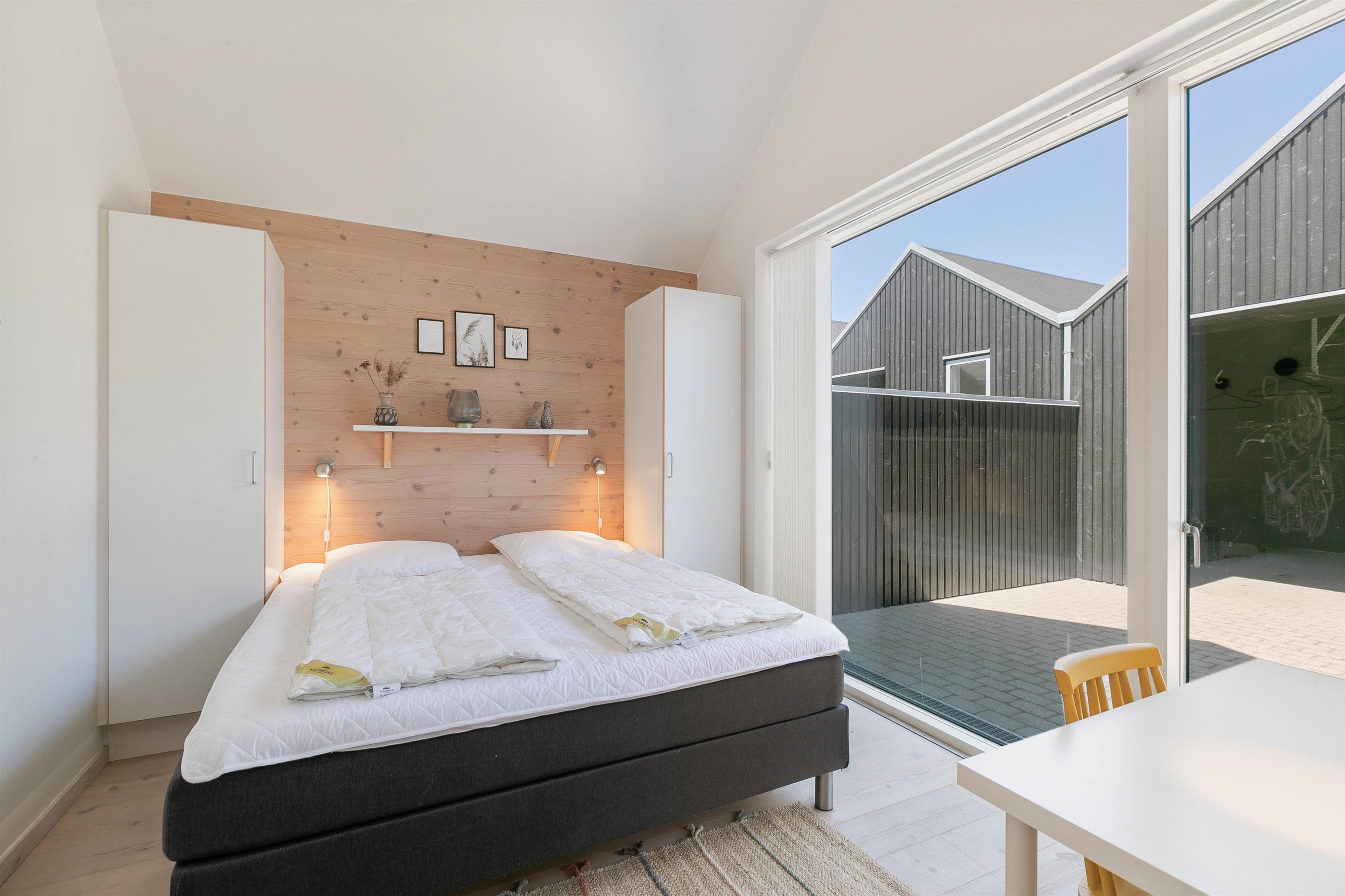 Vågn op i jeres hyggelige feriehus og nyd den skønne udsigt over fjorden gennem de store panoramavinduer, fra det ene soveværelse, behøver I end ikke stå ud af sengen. Køkken og stue er i forlængelse af hinanden og har både udgang til udsigtsterrassen og den hyggelige gårdhave, hvor der er dejlig læ og privatliv til terrassehygge og grillaftener. Ved gårdhaven har I også et lille udhus med både vaskemaskine og tørretumbler.