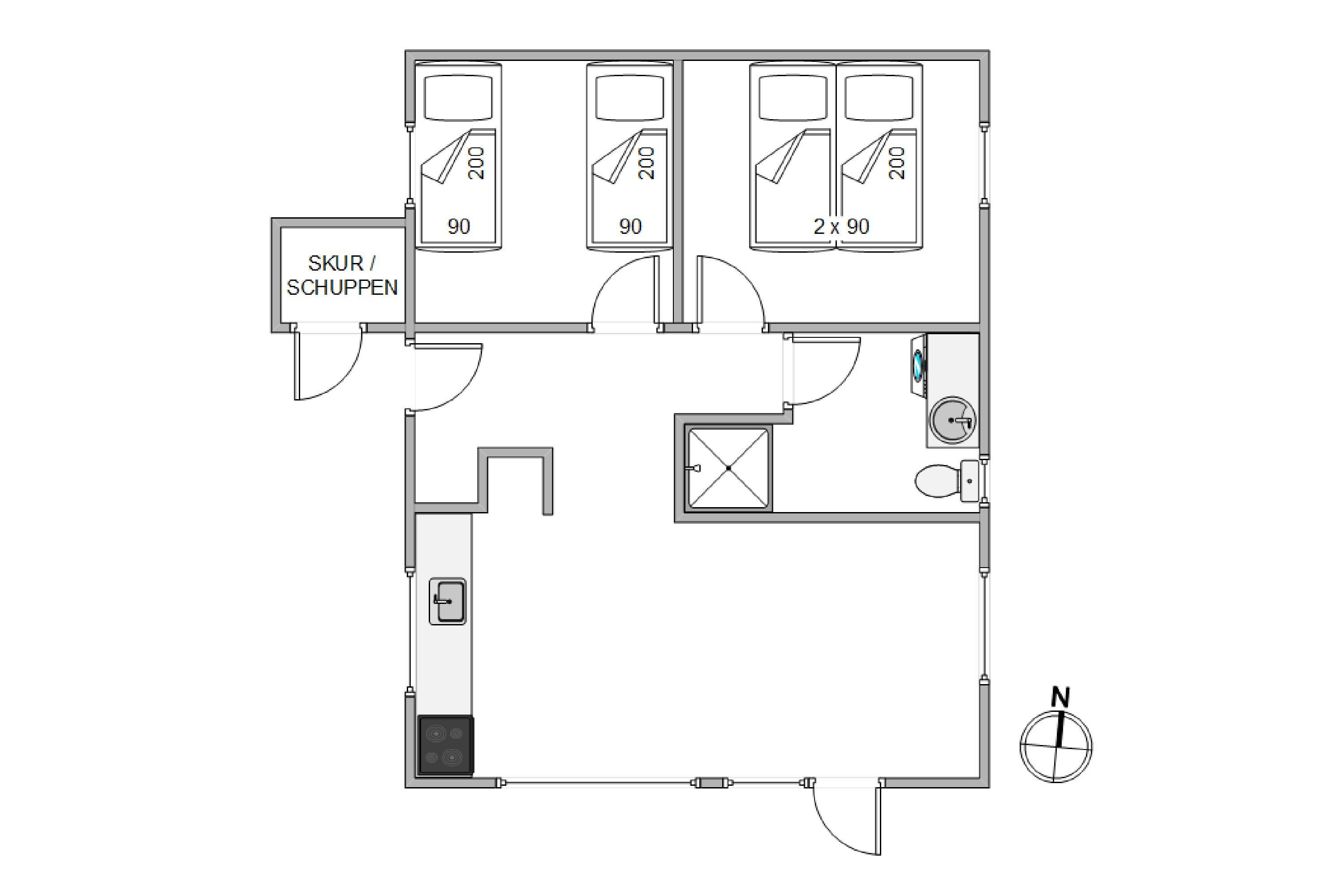 Sommerhuset har 2 soveværelser, så I kan vågne veludhvilede op til endnu en skøn feriedag. Badeværelset er moderne med gulvvarme, så I aldrig fryser tæerne om morgenen - her finder I også både vaskemaskine og tørretumbler.