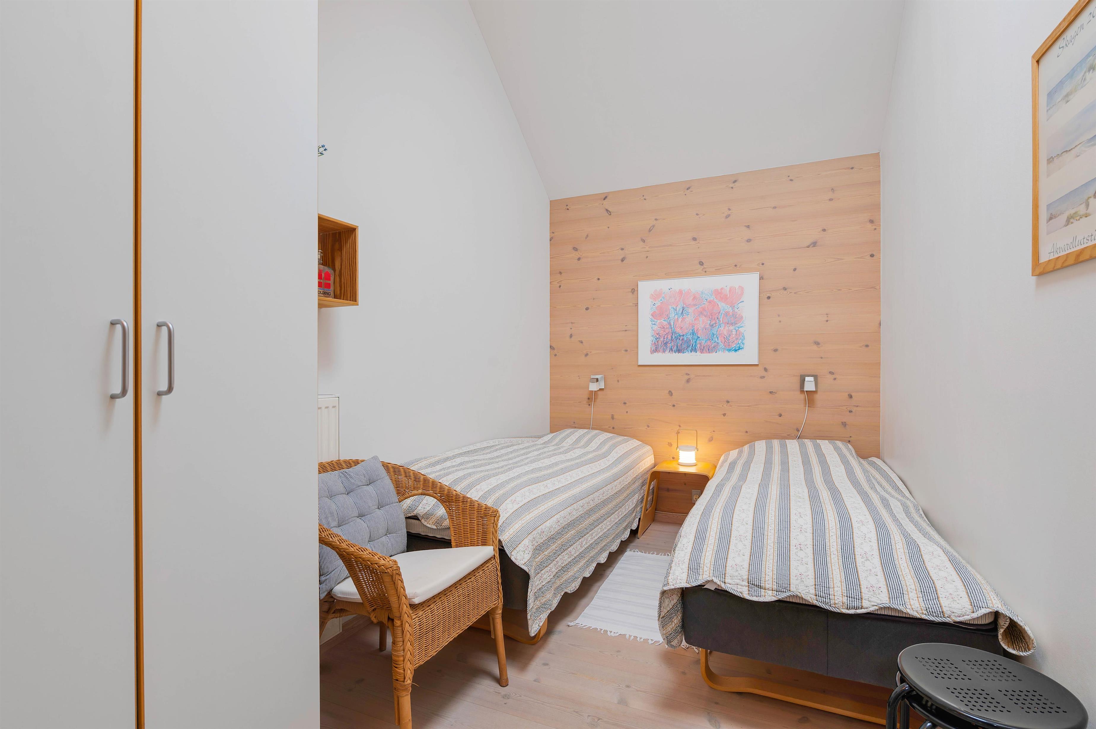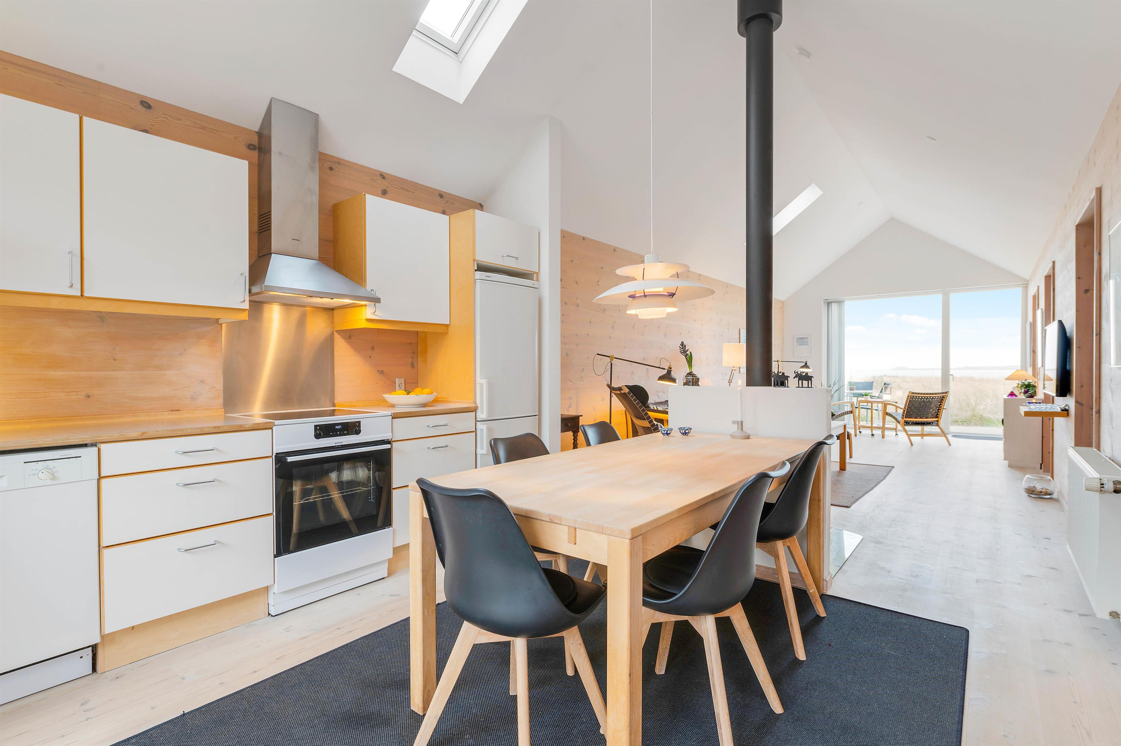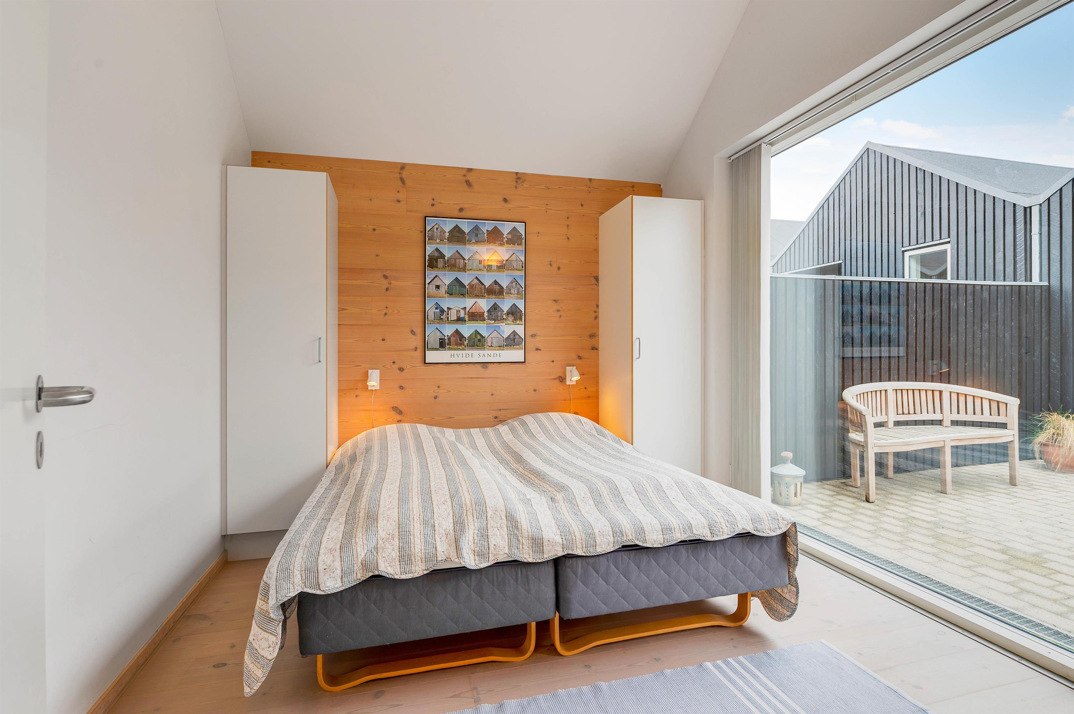 Sommerhuset har en lys og moderne indretning med plads til 6 personer. Sovepladserne er fordelt på 3 gode værelser, hvoraf der er 2 værelser med en dobbeltseng hver. På det sidste værelse finder I 2 komfortable enkeltsenge. Fra det ene værelse er der en skøn udsigt til Ringkøbing Fjord.