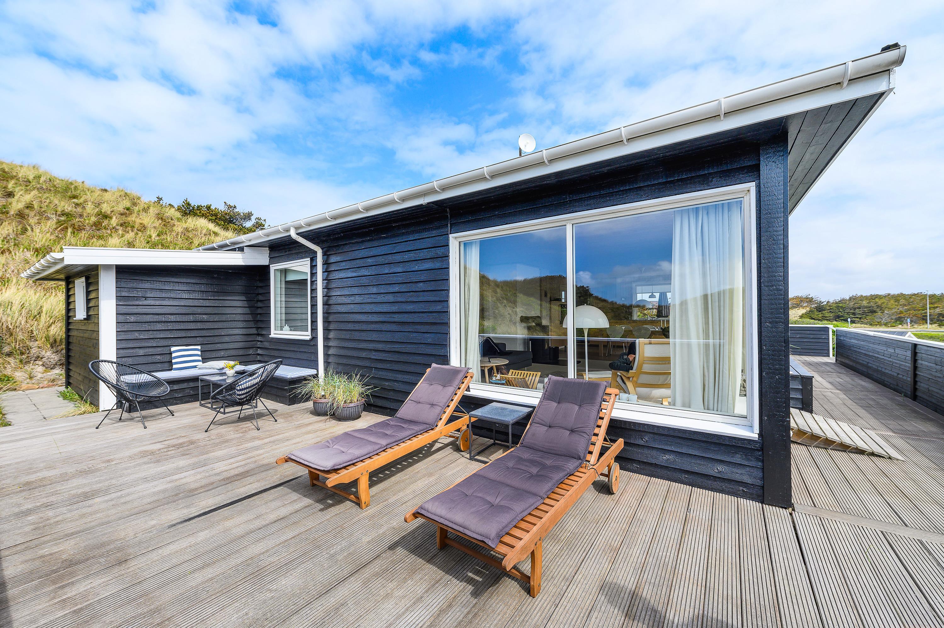 Rundt om sommerhuset løber en dejlig afskærmet terrasse, og I kan hele dagen følge med solen rundt og slænge jer i husets liggestole i fred og ro. Den fantastiske udsigt til Ringkøbing Fjord kan nydes dagen lang, og er I rigtig morgenfriske, kan I stå op til de smukkeste solopgange.