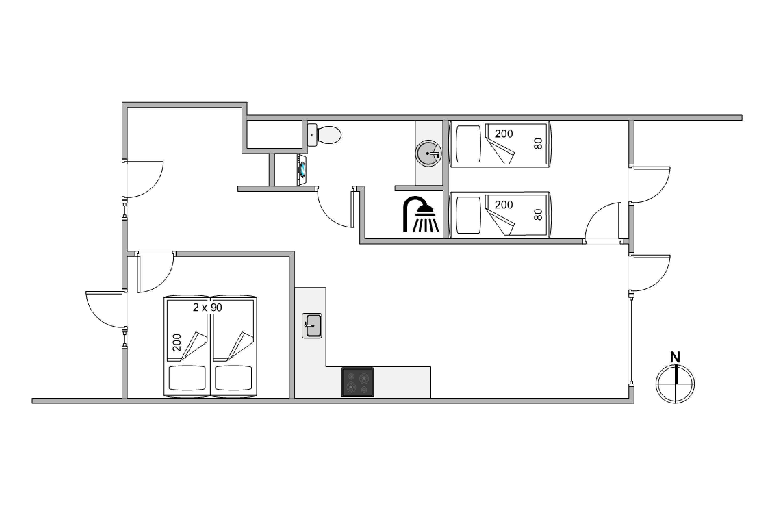 Ferielejligheden fra 2017 byder på to lyse og venlige værelser, det ene med dobbeltseng og det andet med to enkeltsenge. Ferielejligheden er hyggelig og med god plads til 4 personer.