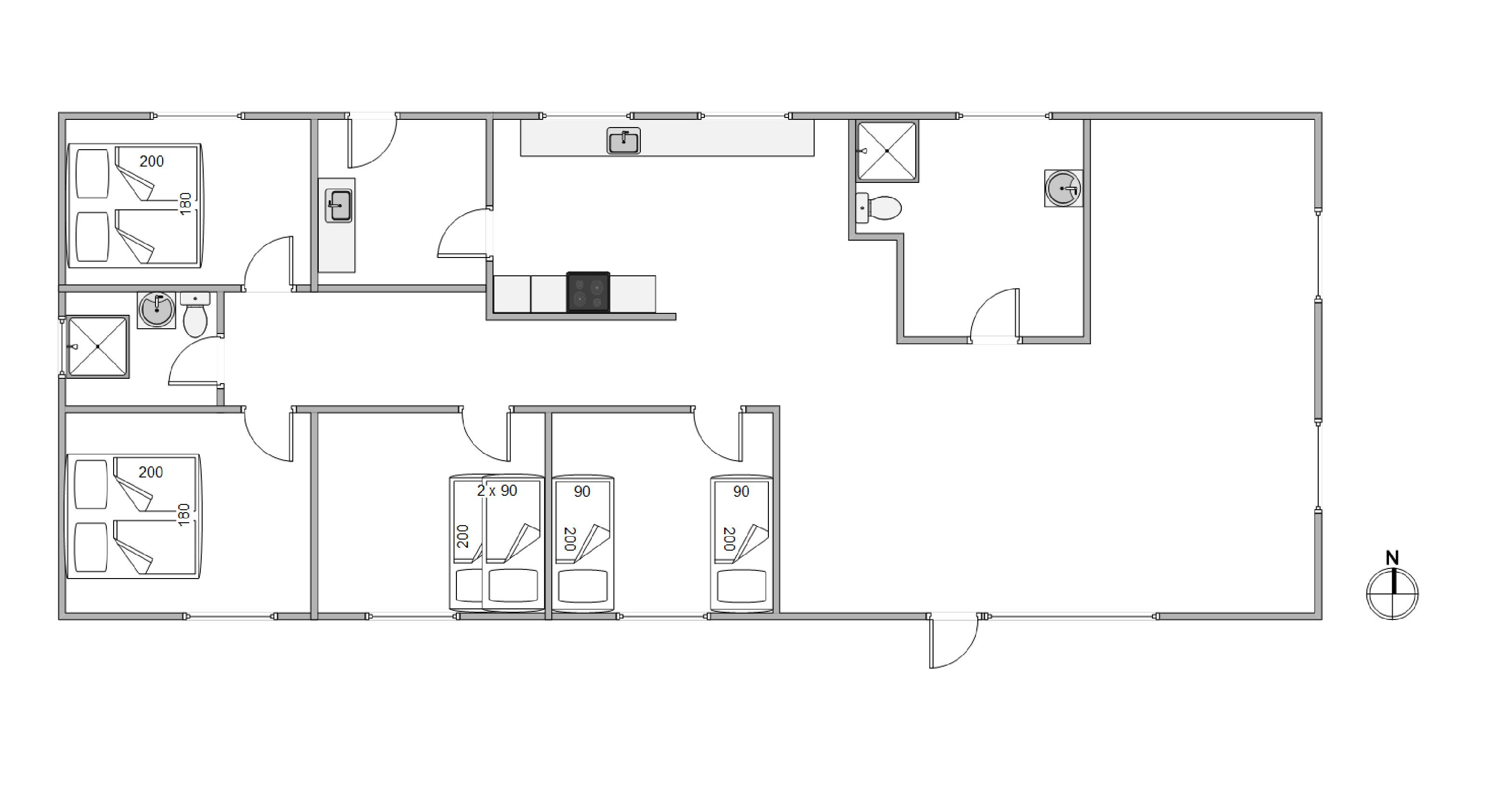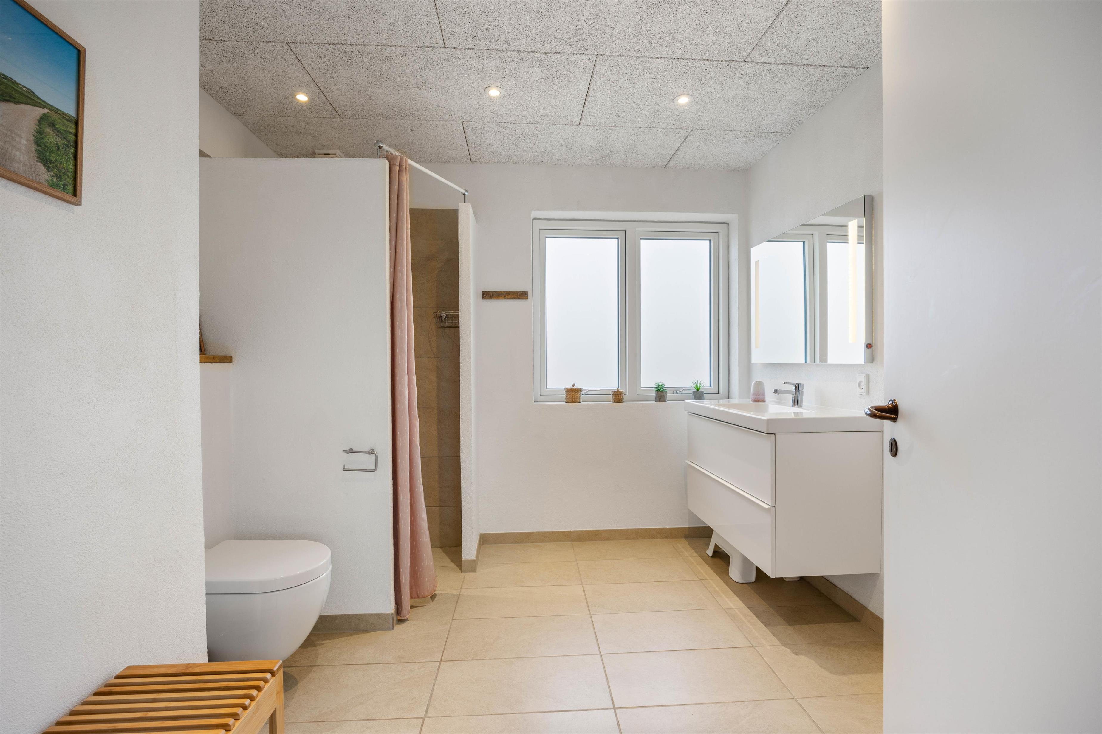 I feriehuset er der 2 gode badeværelser – begge med gulvvarme – så der er ingen grund til kødannelse hverken morgen eller aften. Derudover er sommerhuset indrettet med 4 soveværelser, hvor feriens gæster kan få sig en god nats søvn.