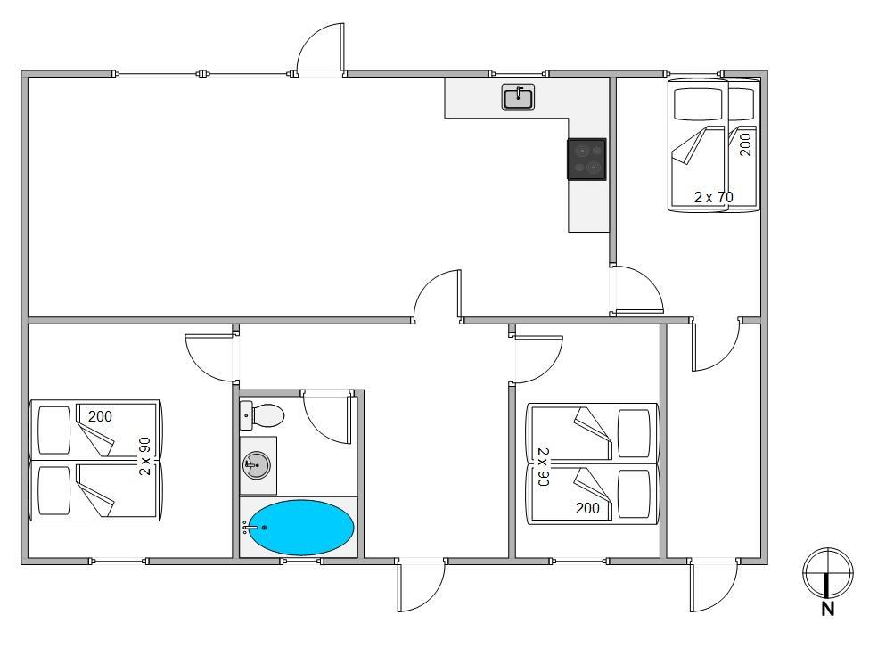 De to soveværelser er indrettet med dobbeltsenge samt et ekstra værelse med køjesenge, og egner sig godt til både den lille familie eller to vennepar. Den praktiske indretning med både opvaskemaskine, vaskemaskine og tørretumbler gør også, at I ikke behøver bekymre jer for meget om de huslige pligter.