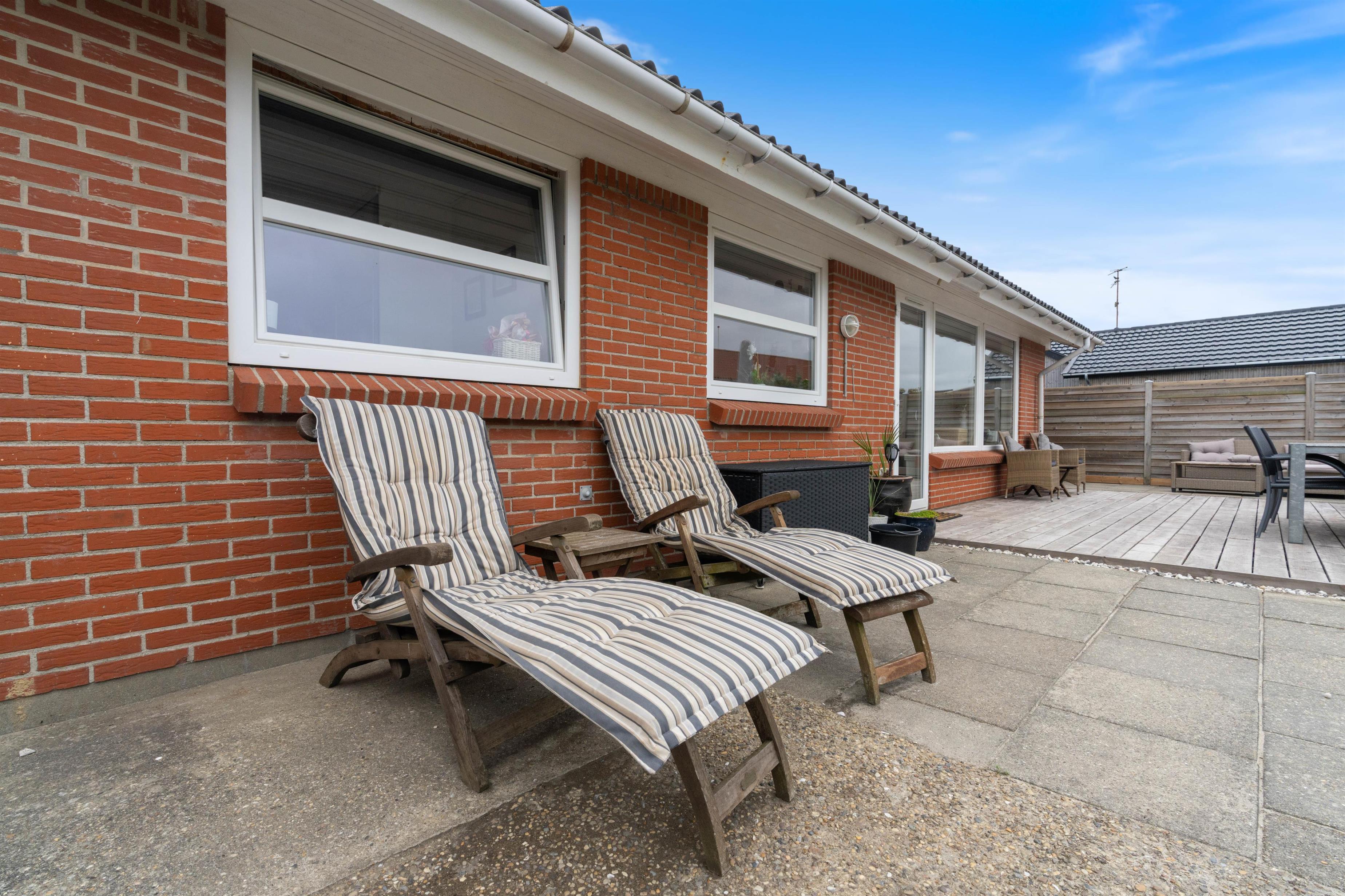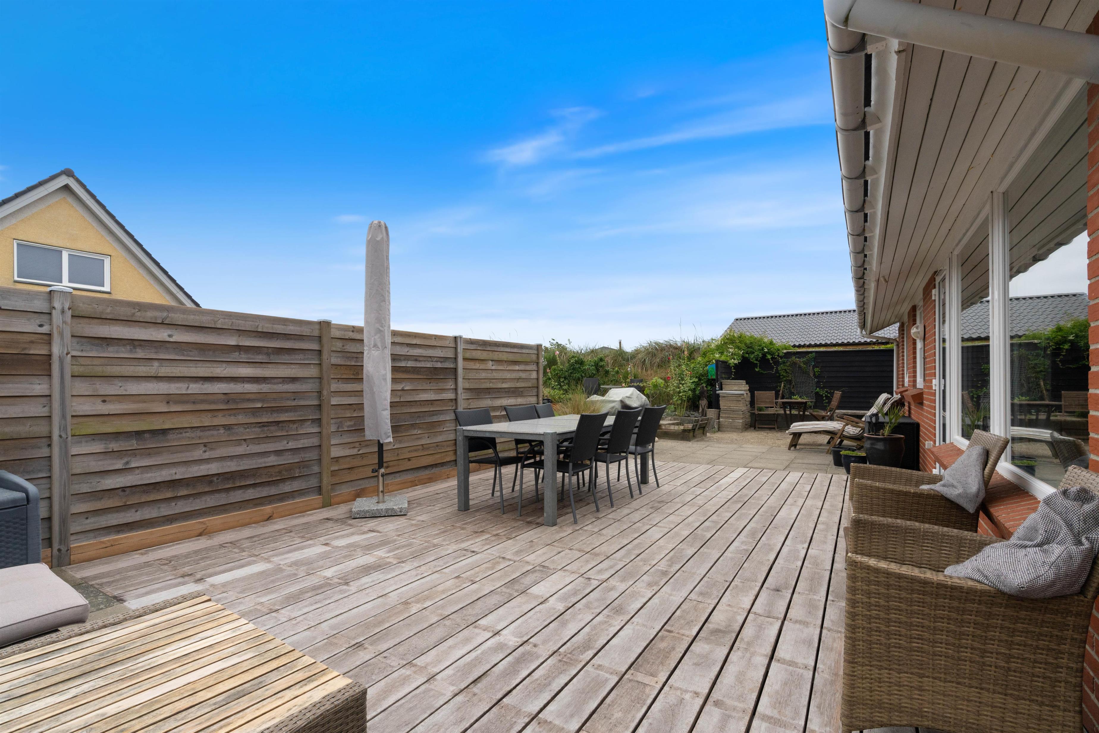 På Vesterhavsvej 9 ligger dette fine stenhus og venter på jer. Her kan I holde ferie tæt på både centrum og den skønne sandstrand, og med en indrammet have med flere små hyggekroge og et gyngestativ til de mindste feriegæster, er huset perfekt til den lille familie eller kæresteparret, der gerne vil holde en afslappende ferie langt væk fra hverdagen.