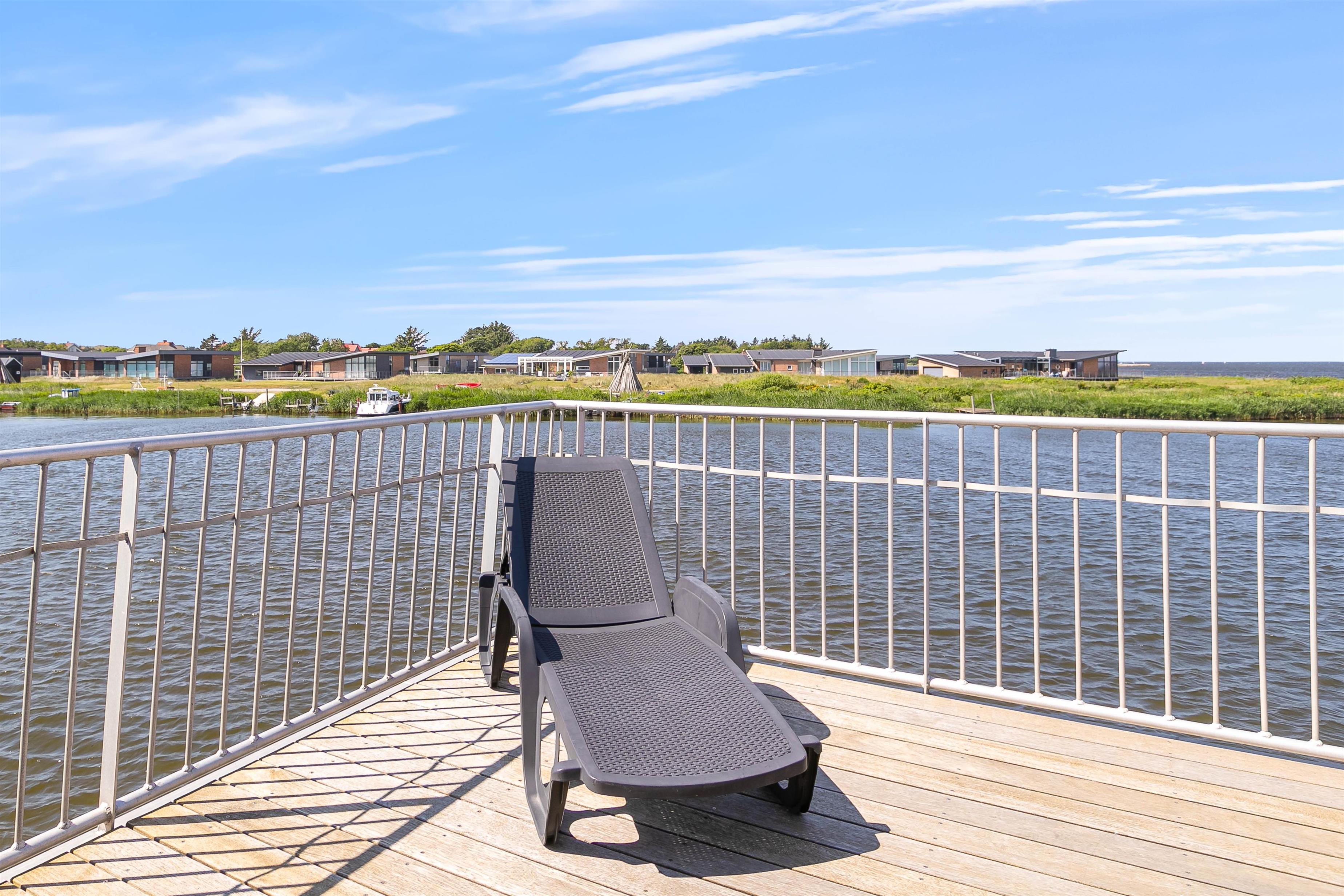 Der er 2 skønne terrasser på husbåden. En sydvendt i forbindelse med indgangspartiet, og en lukket terrasse på 1. sal med enestående panoramaudsigt over byen, havnen og Ringkøbing Fjord. Slå jer ned i havemøblerne eller på en solvogn og nyd denne udsigt med en god kop kaffe.